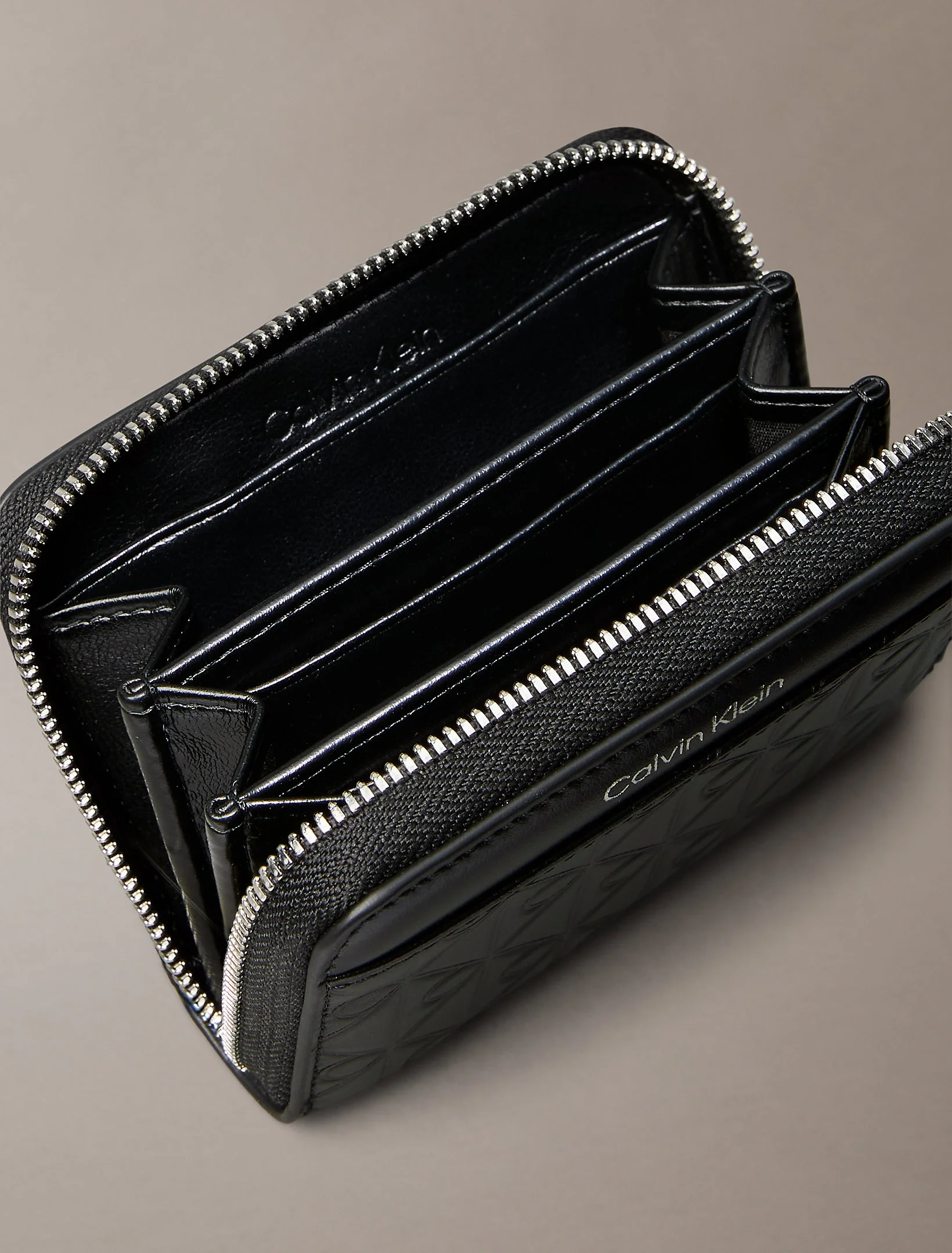 Calvin Klein Amblemli Tamamı Baskılı Kabartmalı Fermuarlı Kadın Siyah Cüzdan LV04F1081G-UB1