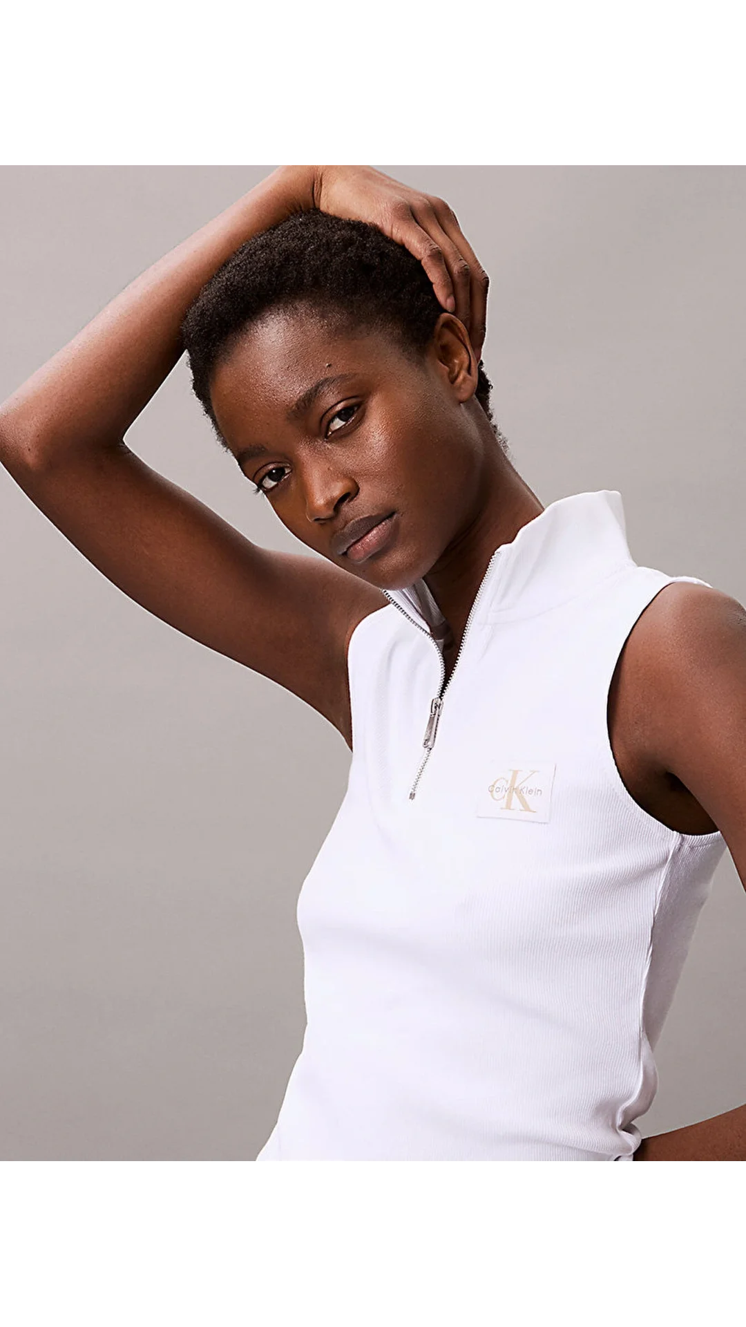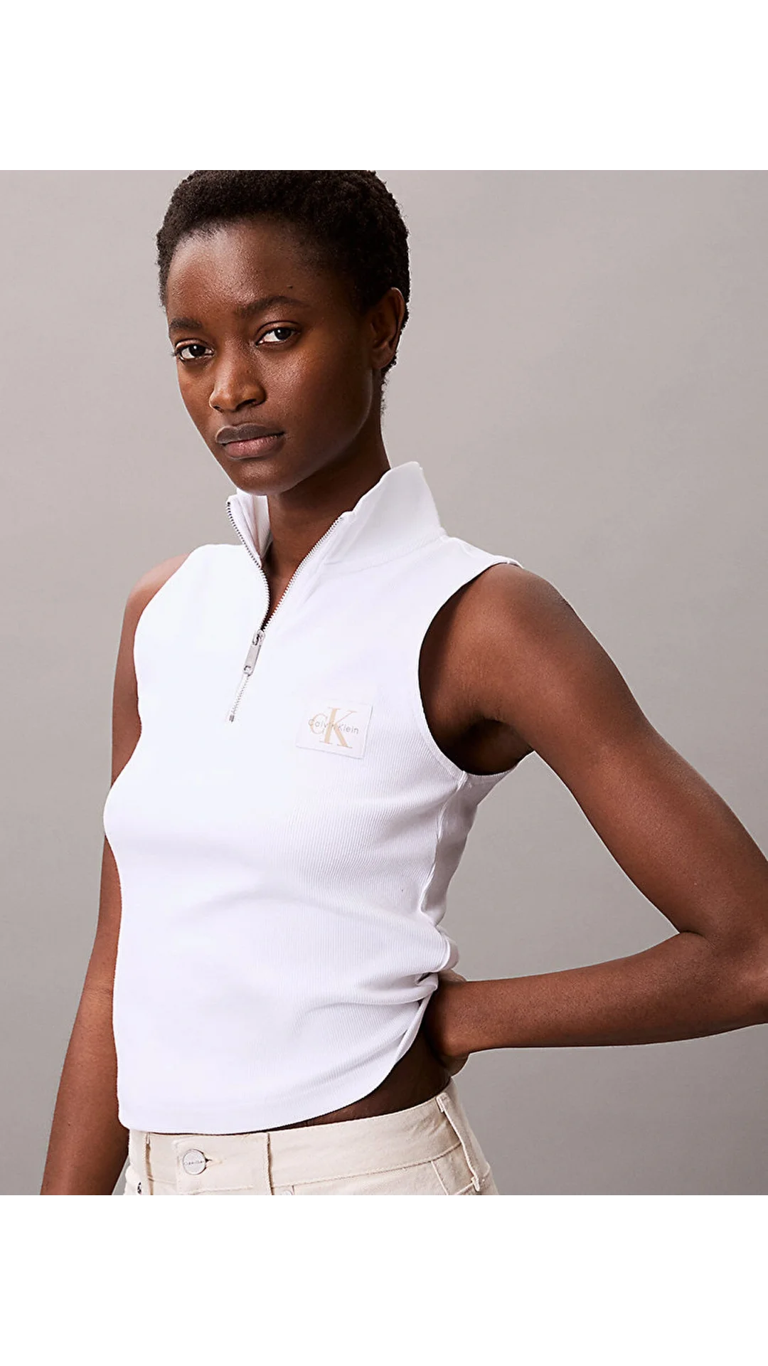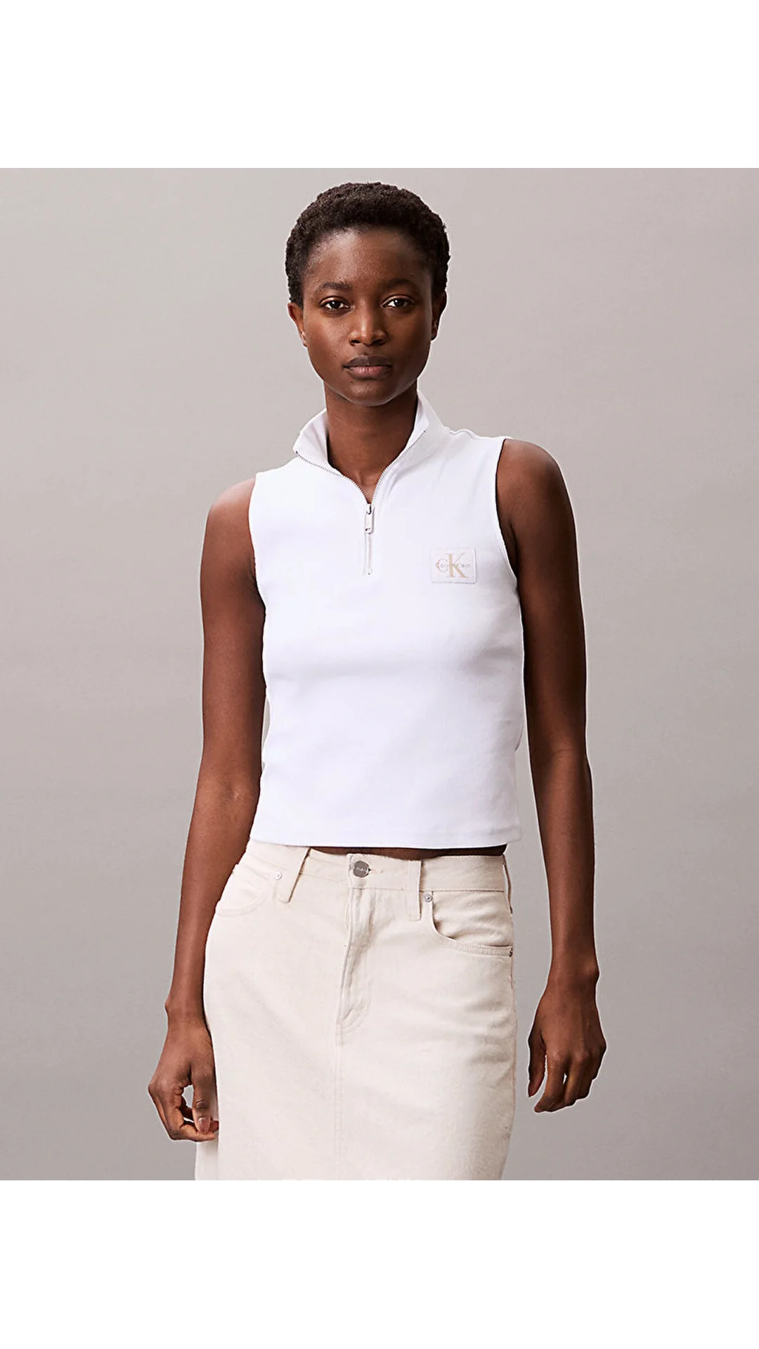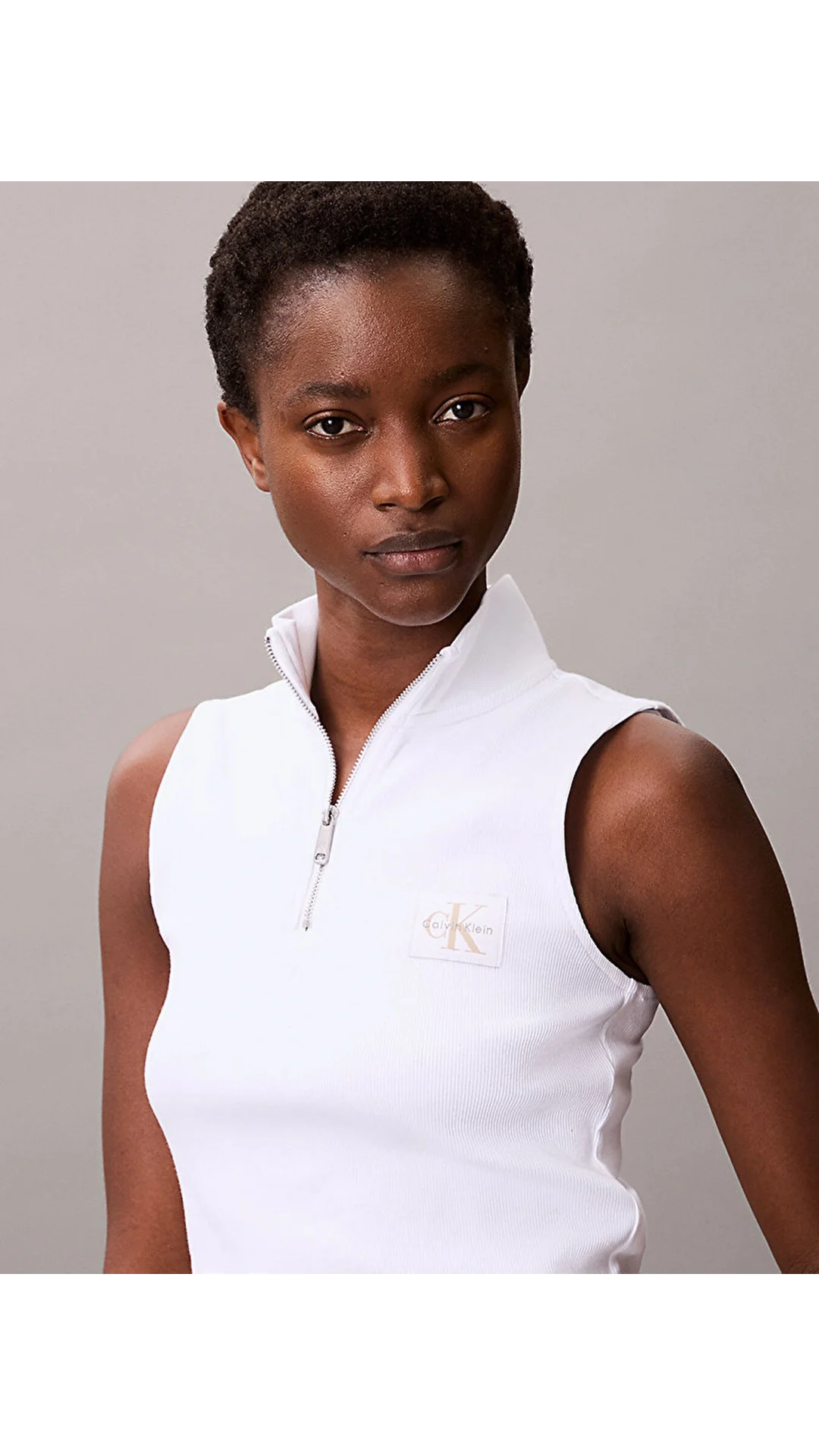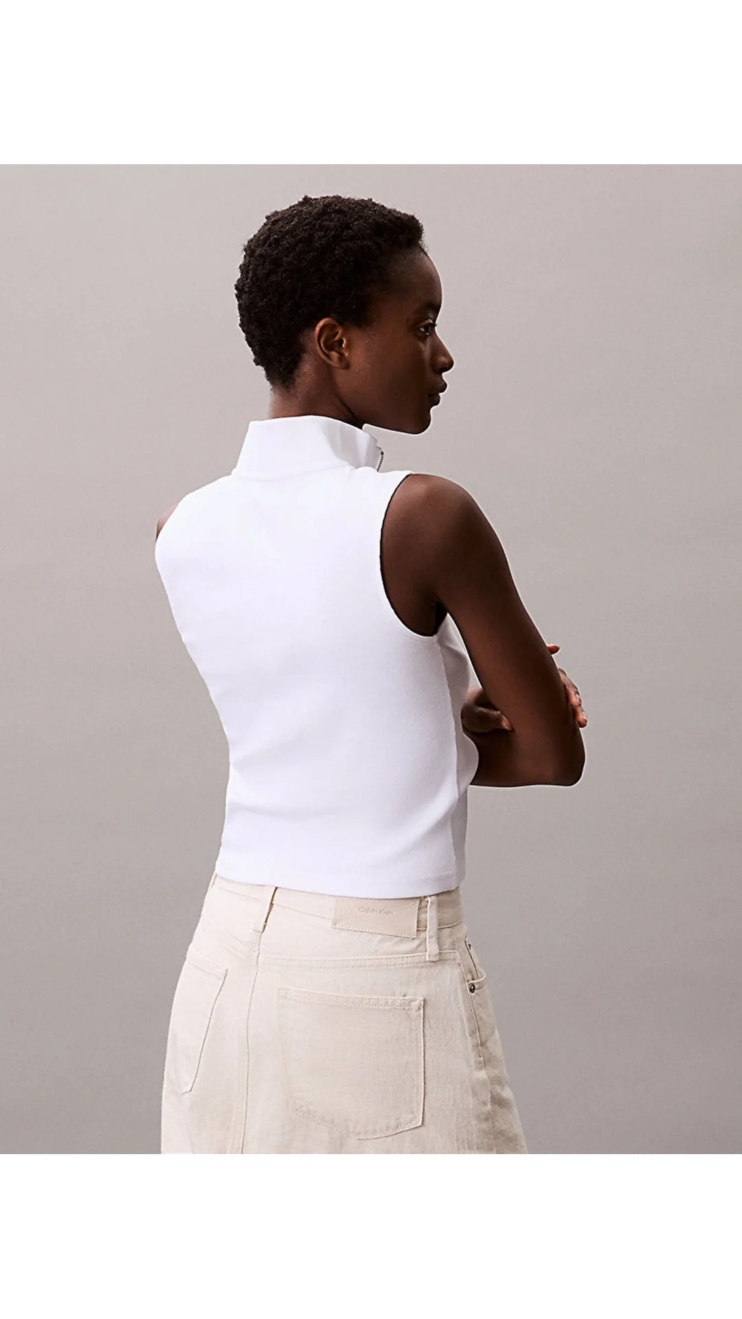 Calvin Klein Kadın Etiketli Kolsuz Yarım Fermuarlı Beyaz Bluz LV047C909G-YAA