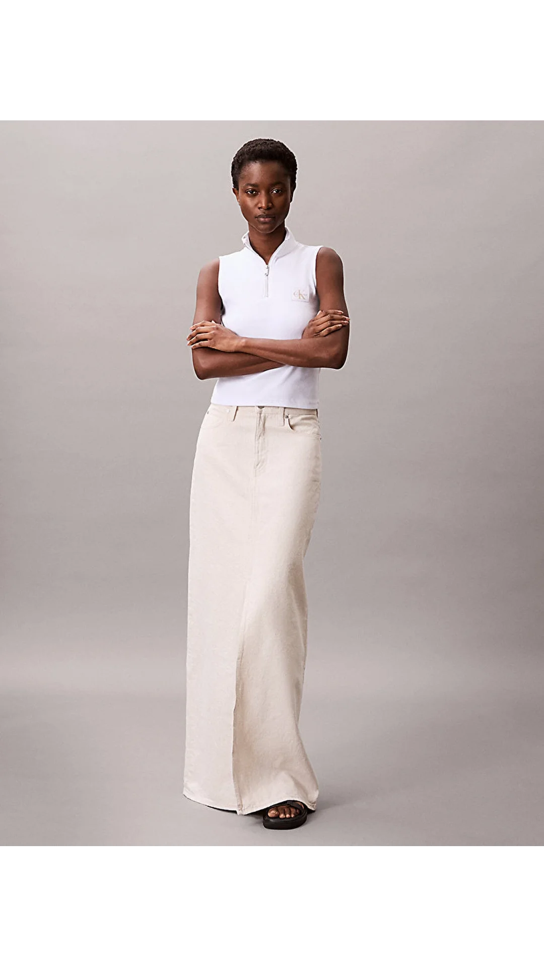 Bu beyaz kolsuz bluz, hafif ve nefes alabilir kumaşı ile yaz aylarında konfor sağlar. Yarım fermuarlı tasarımı ile modern ve spor bir stil sunar.