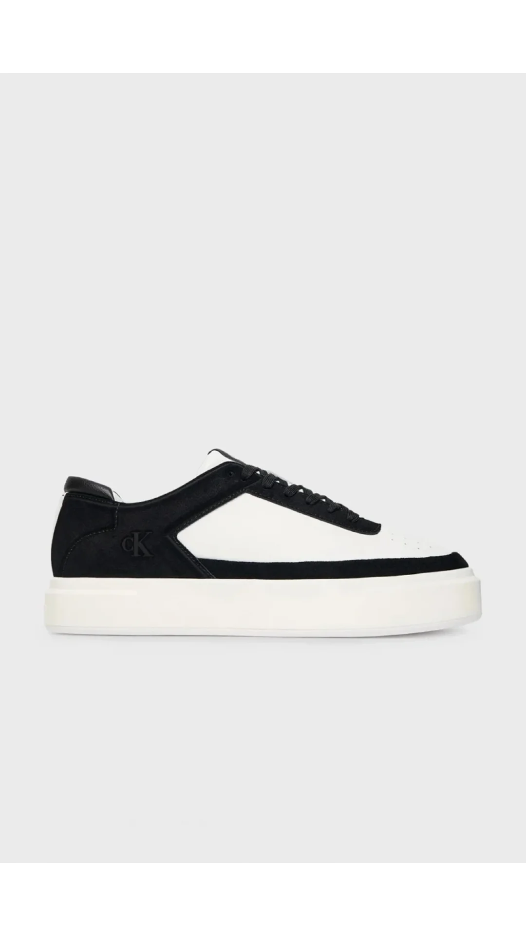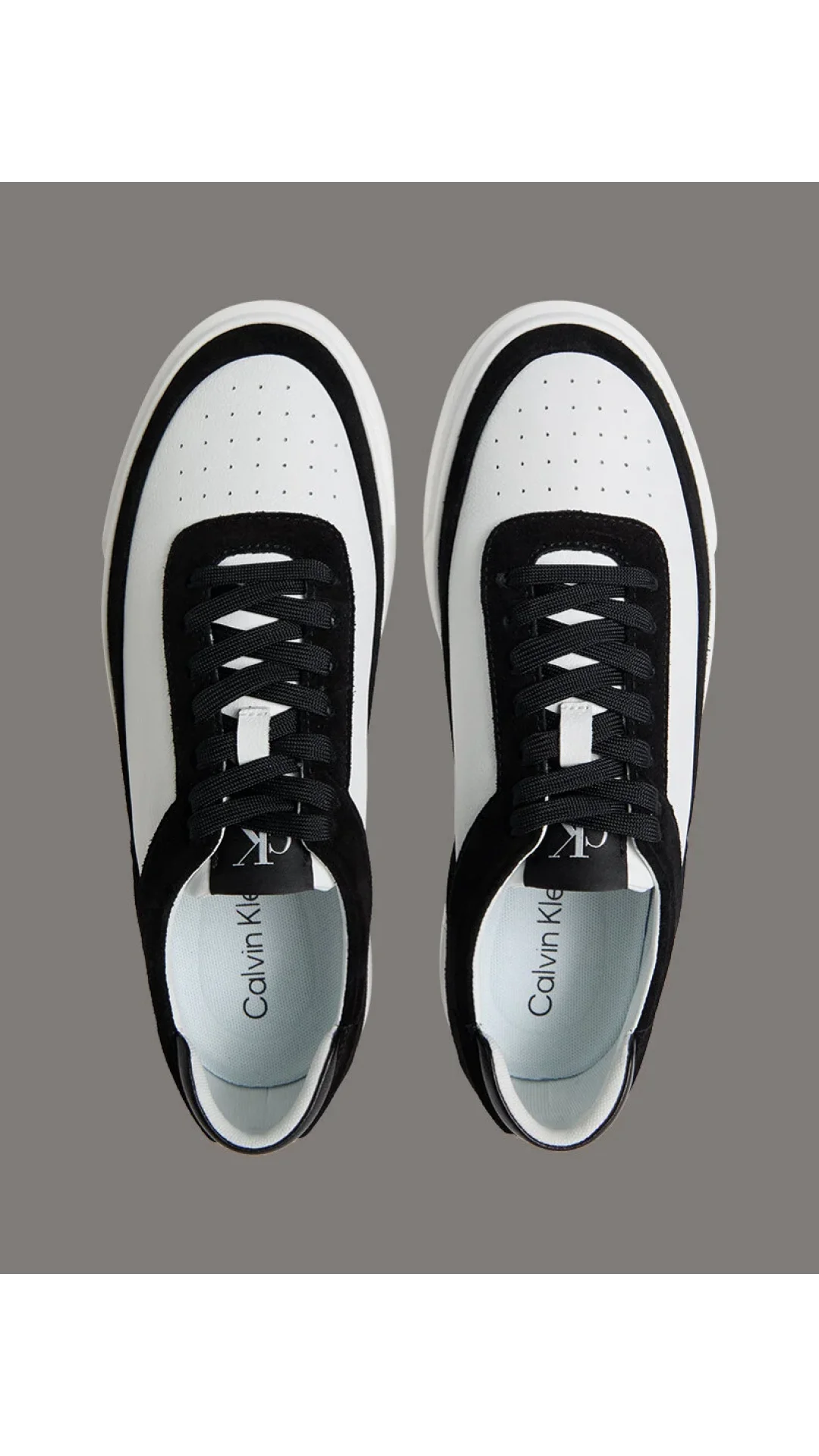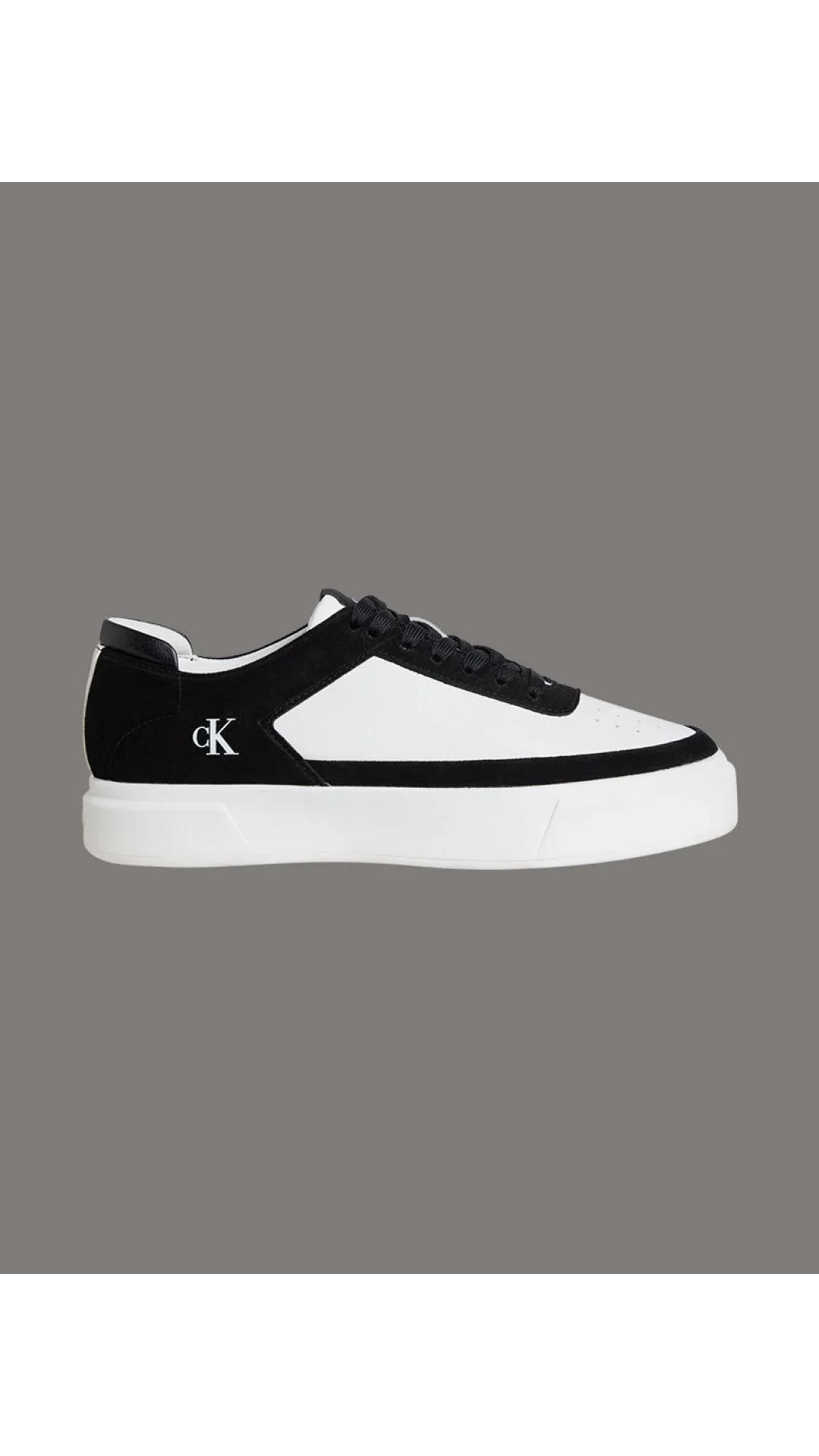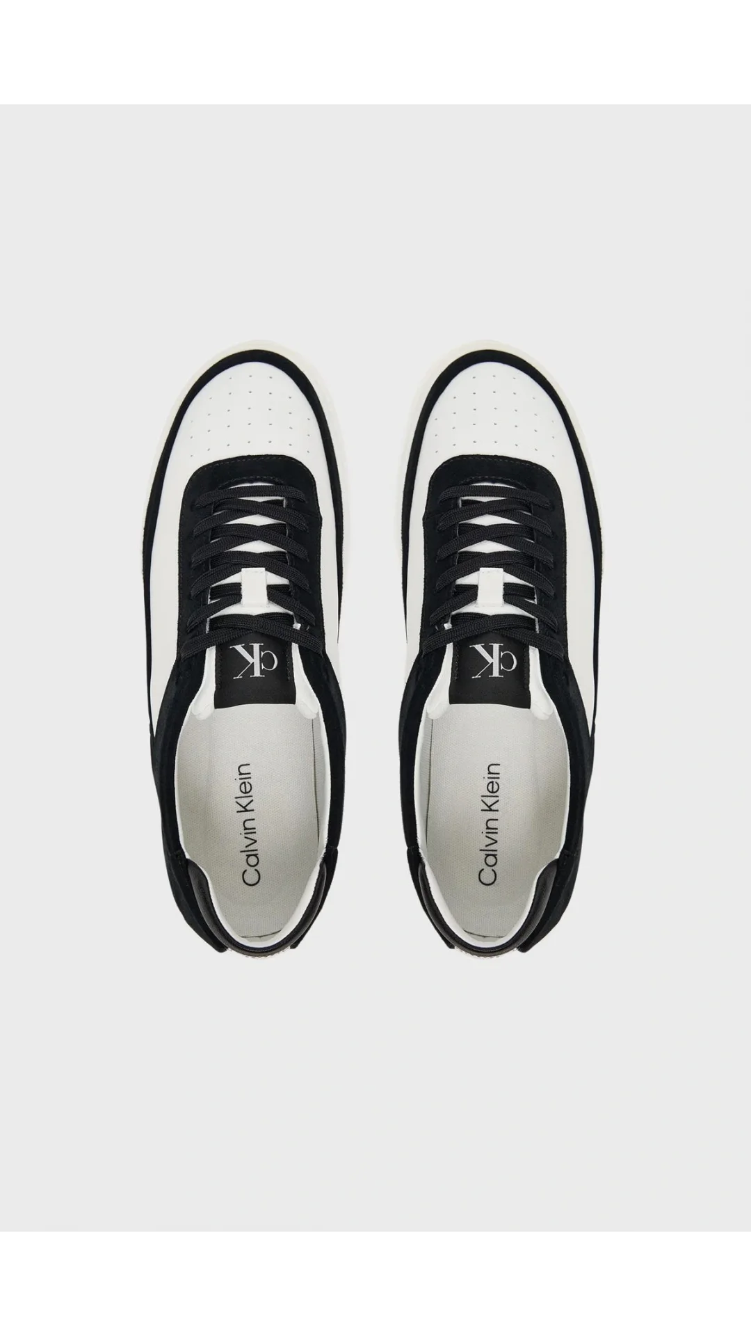 Calvin Klein imzalı bu siyah sneaker, deri ve süet kombinasyonu ile modern bir görünüm sunar. Basketbol stilinden esinlenen tasarımı ve düz tabanı sayesinde gün boyu konfor sağlar. Bağcıklı yapısı spor-şık tarzınızı tamamlar.