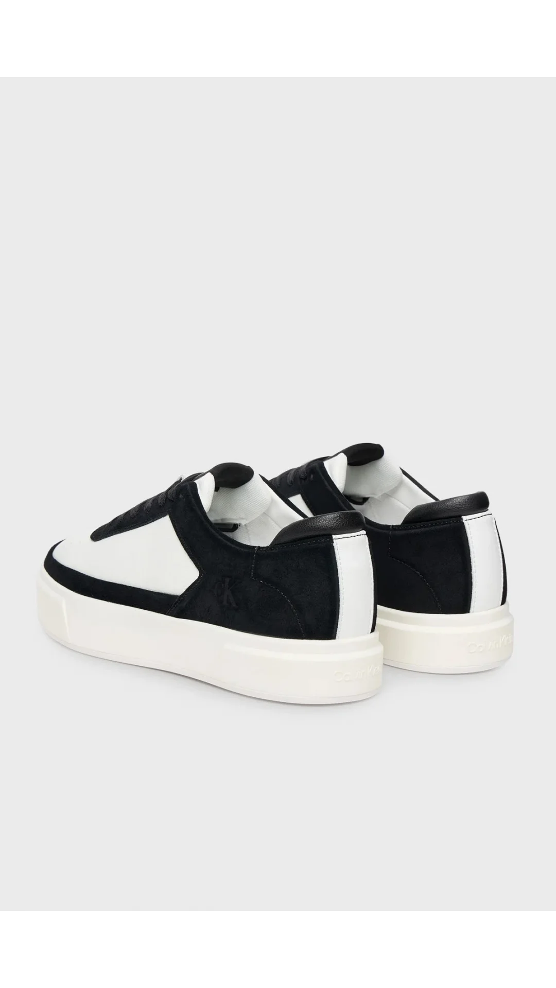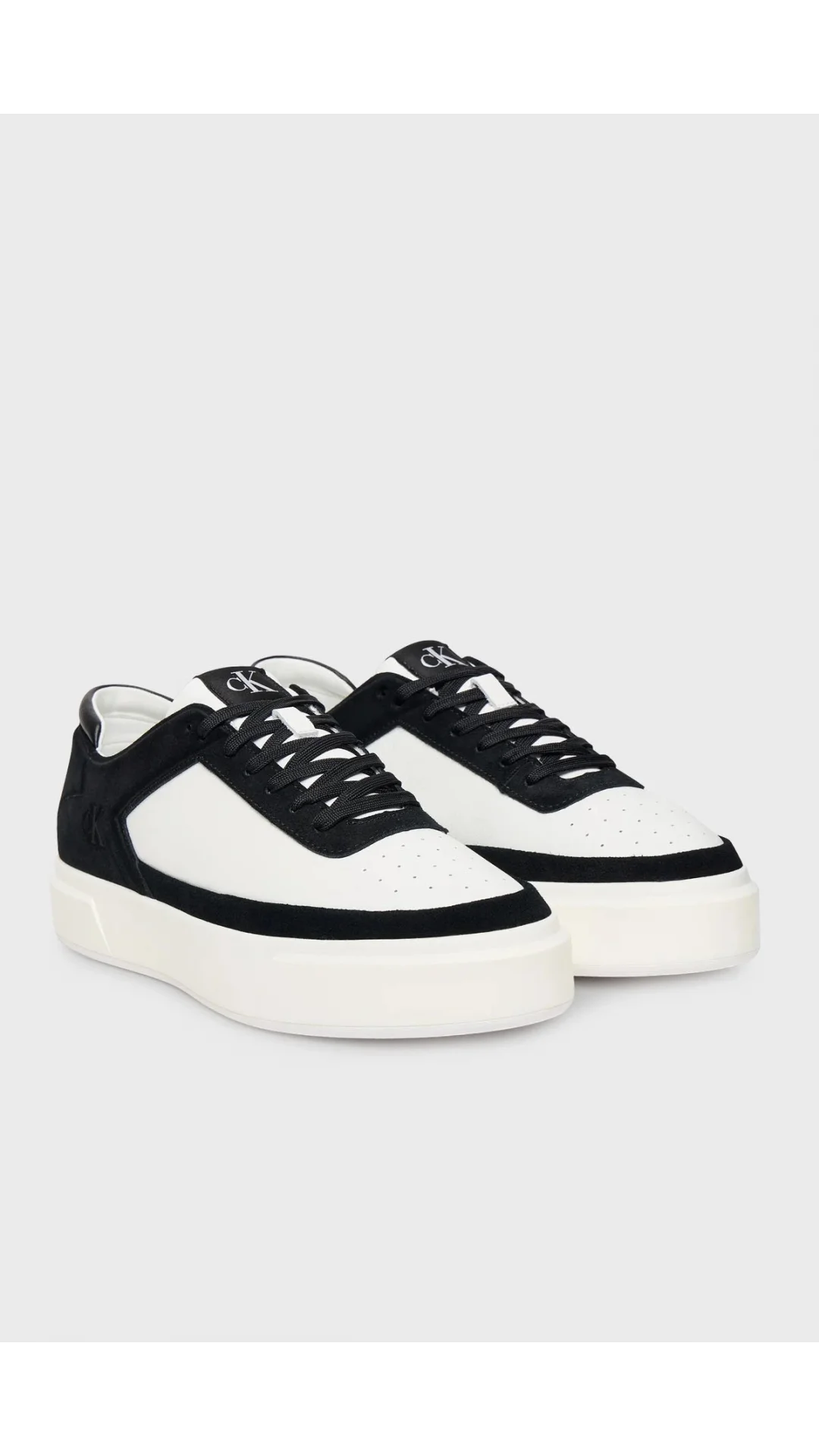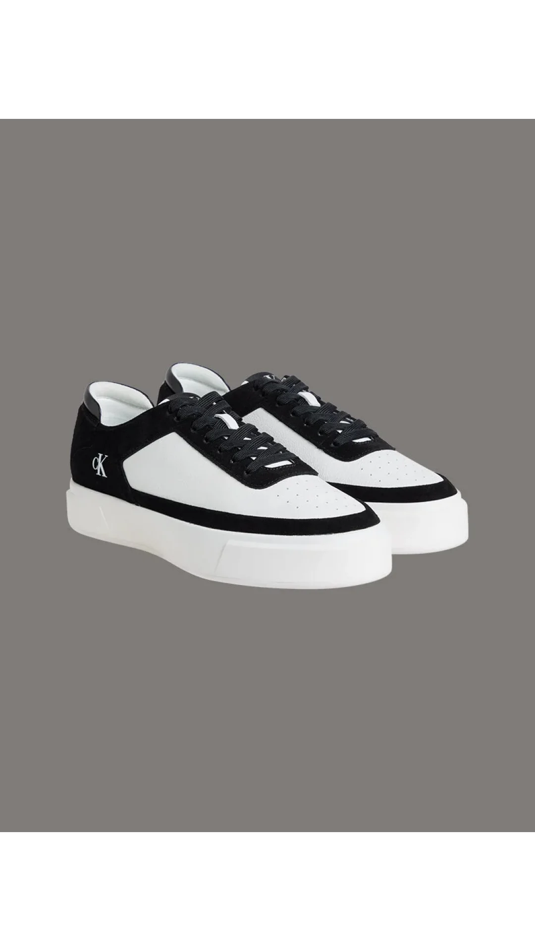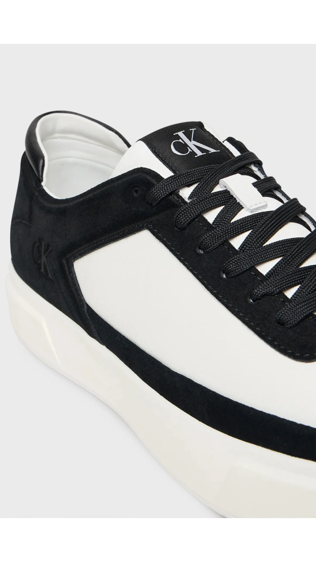 Calvin Klein imzalı bu siyah sneaker, deri ve süet kombinasyonu ile modern bir görünüm sunar. Basketbol stilinden esinlenen tasarımı ve düz tabanı sayesinde gün boyu konfor sağlar. Bağcıklı yapısı spor-şık tarzınızı tamamlar.