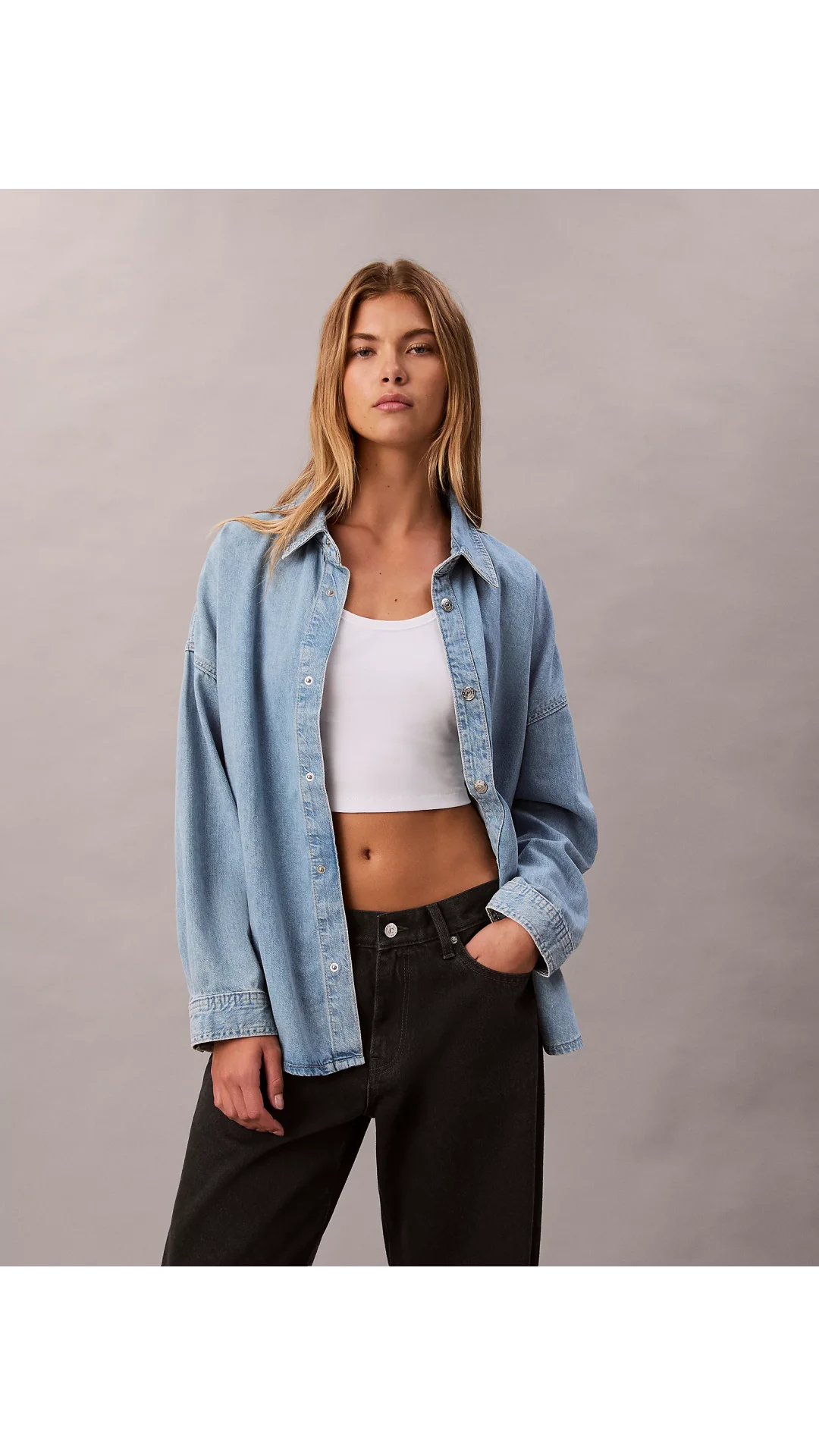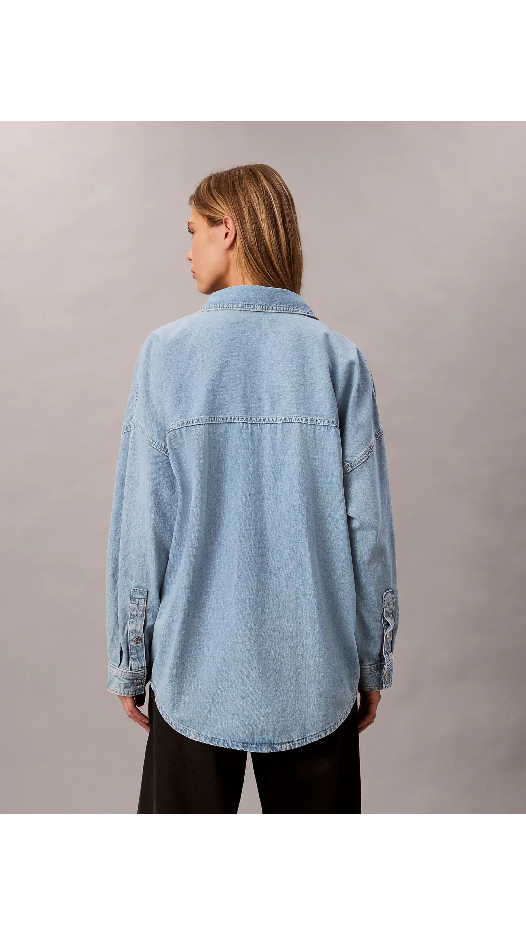 Calvin Klein Rahat Kesim Keten Denim Kadın Mavi Gömlek LV047C709G-X1O