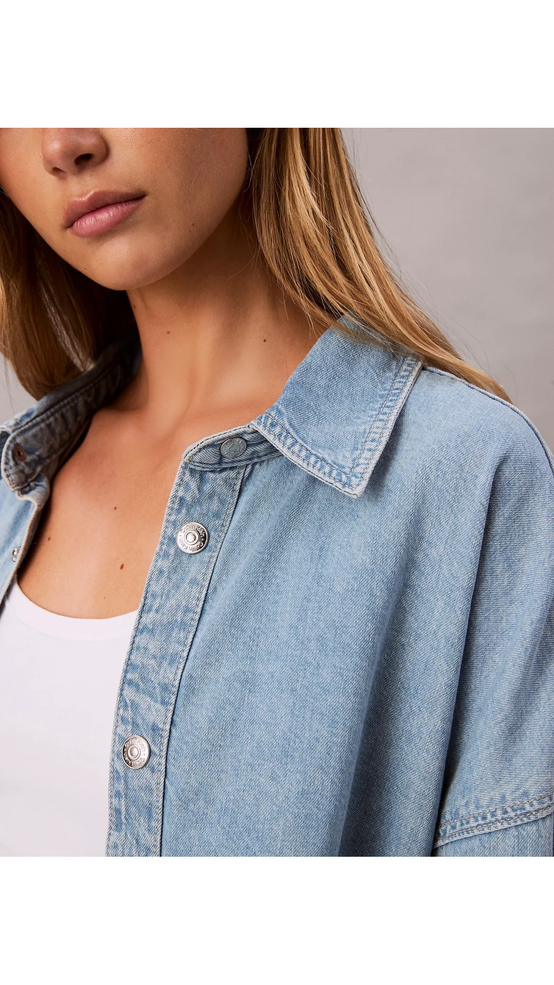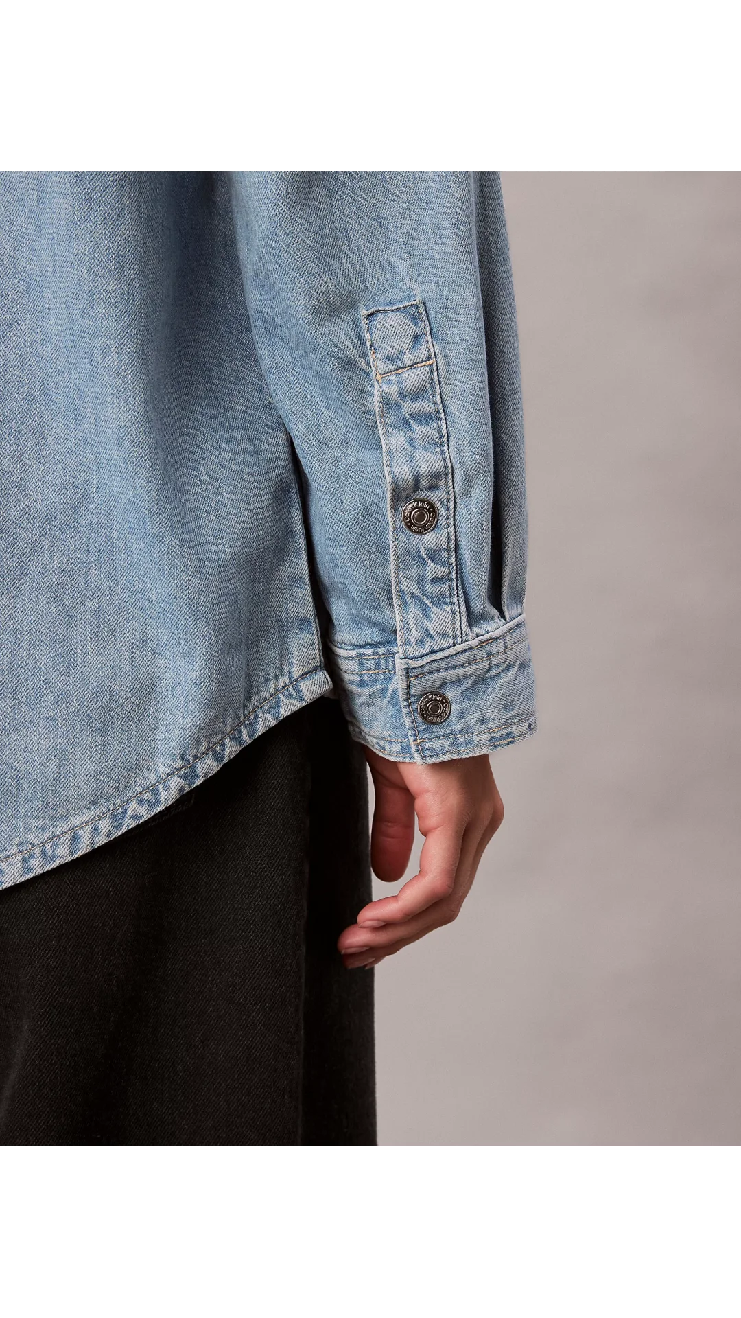 Bu mavi kadın gömlek, keten denim kumaşı ve rahat kesimi ile gün boyu konfor sağlar. Modern tasarımı, şık ve casual kombinler için idealdir.