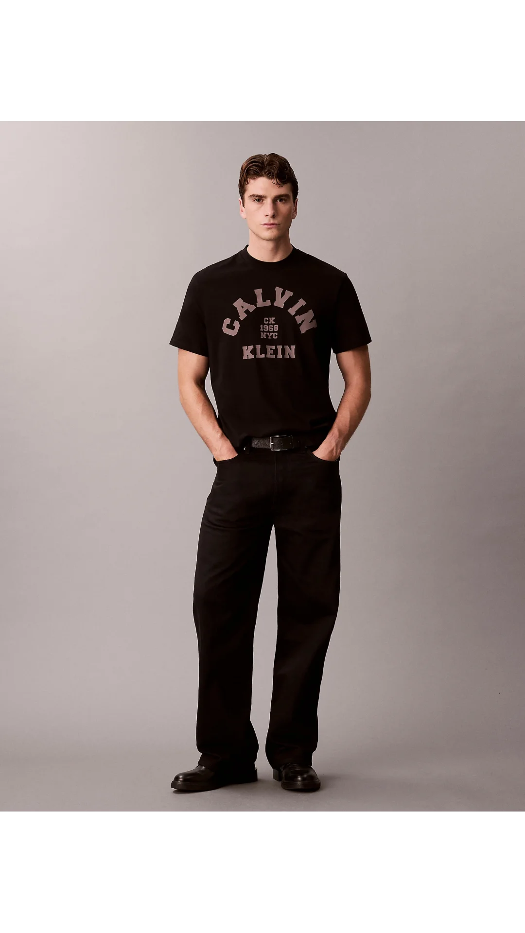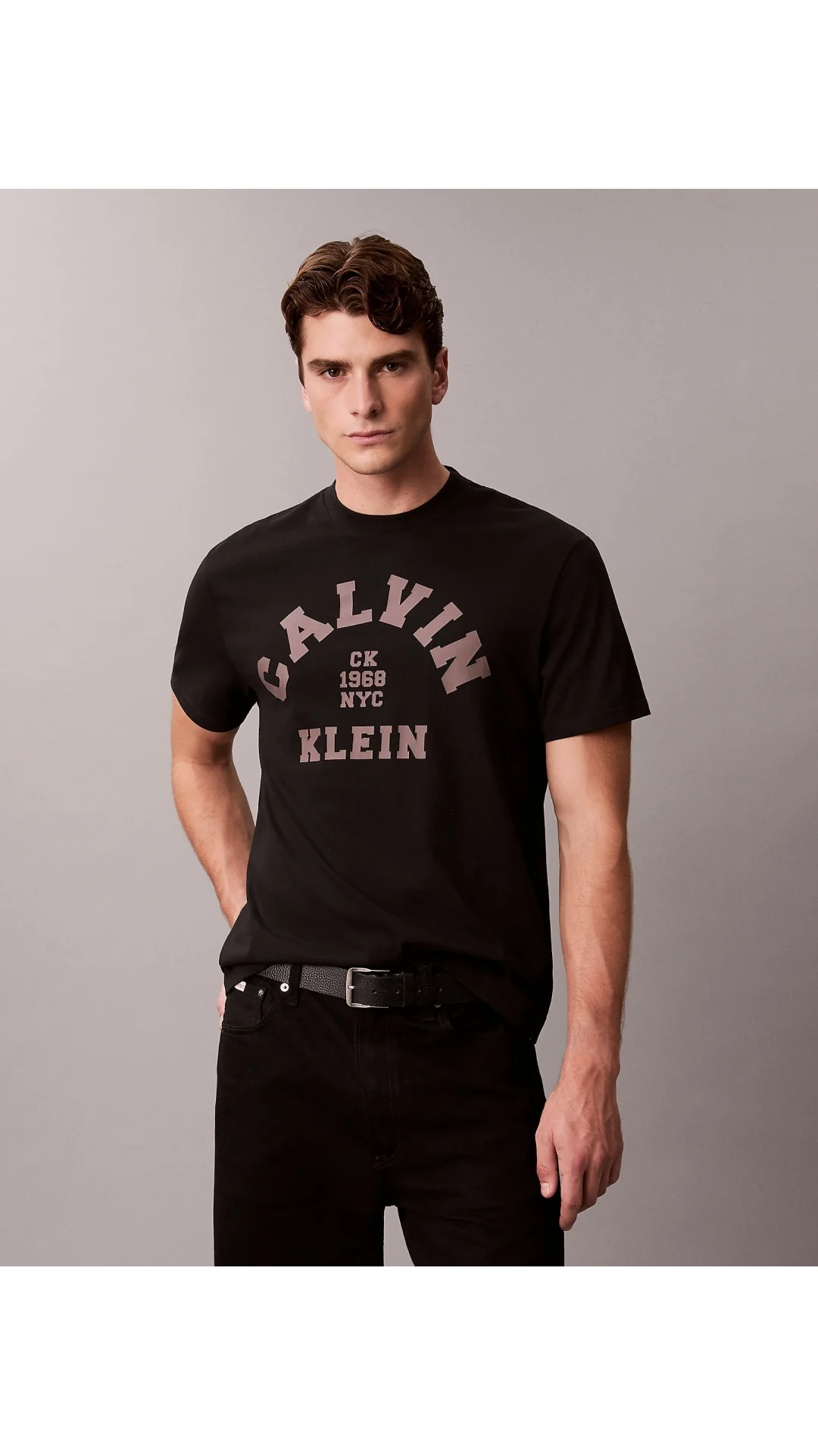 Calvin Klein Kısa Kollu 20s LN Calvin College Grafik Baskılı Erkek Siyah T-shirt LV04RE810G-UB1