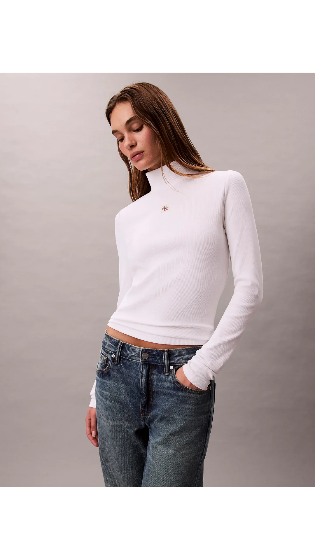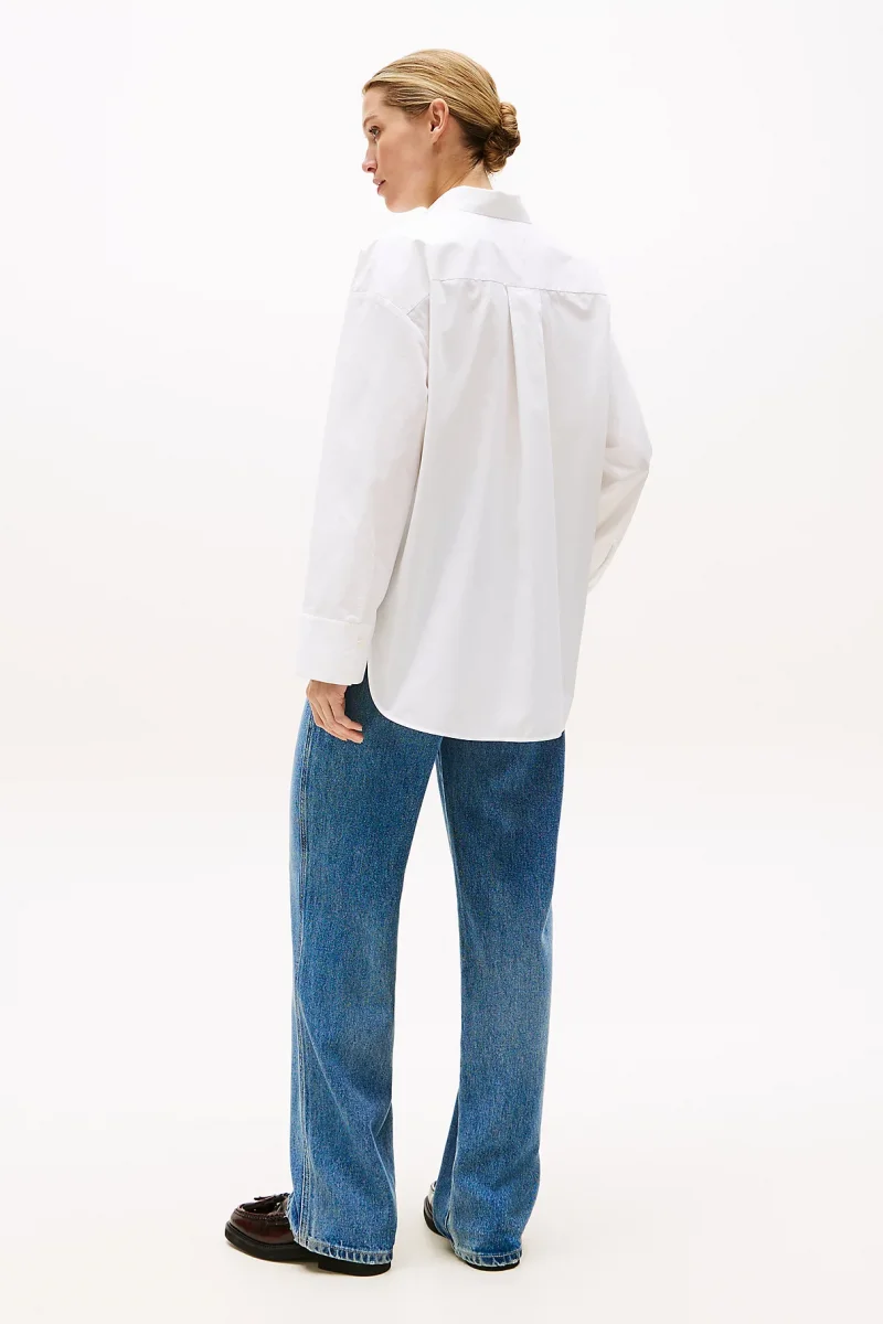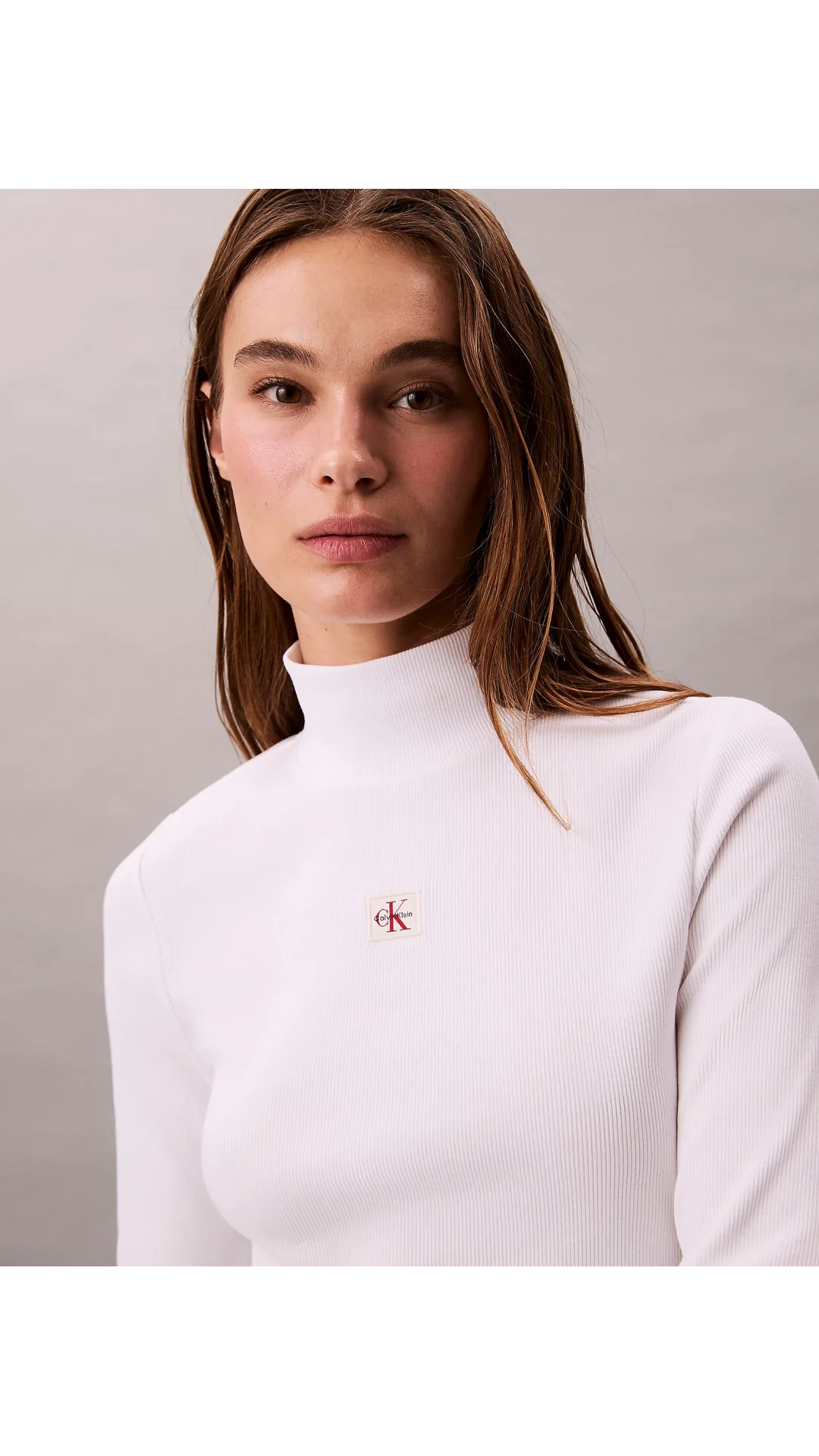 Calvin Klein Uzun Kollu Dokuma Etiketli Kadın Beyaz Gömlek LV047D203G-YAA