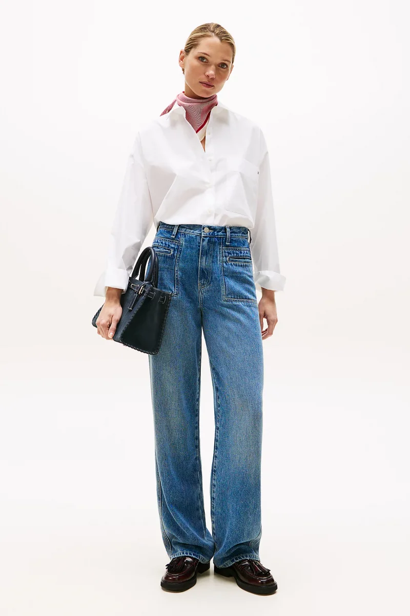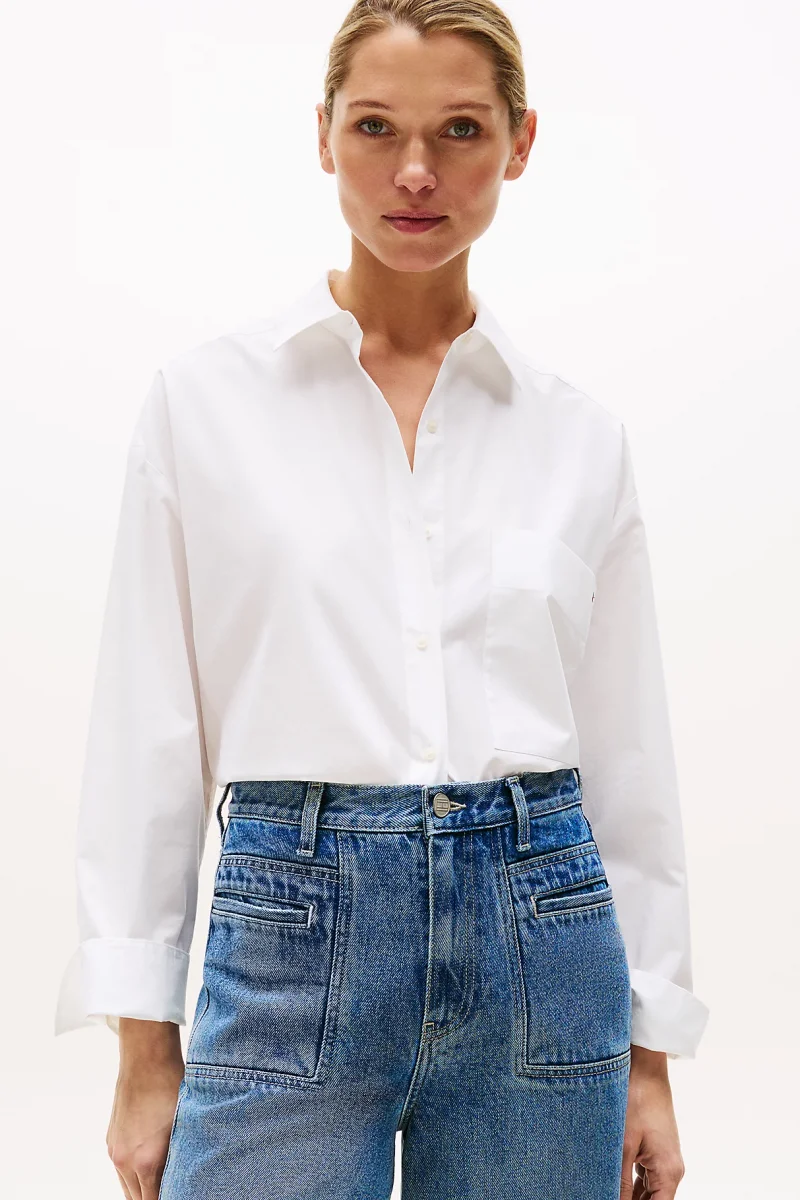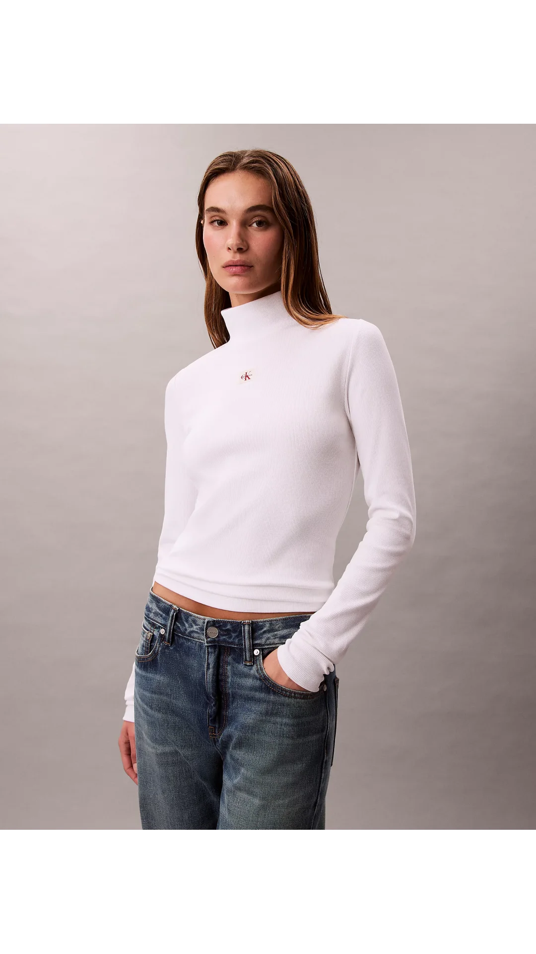 Calvin Klein Uzun Kollu Dokuma Etiketli Kadın Beyaz Gömlek LV047D203G-YAA