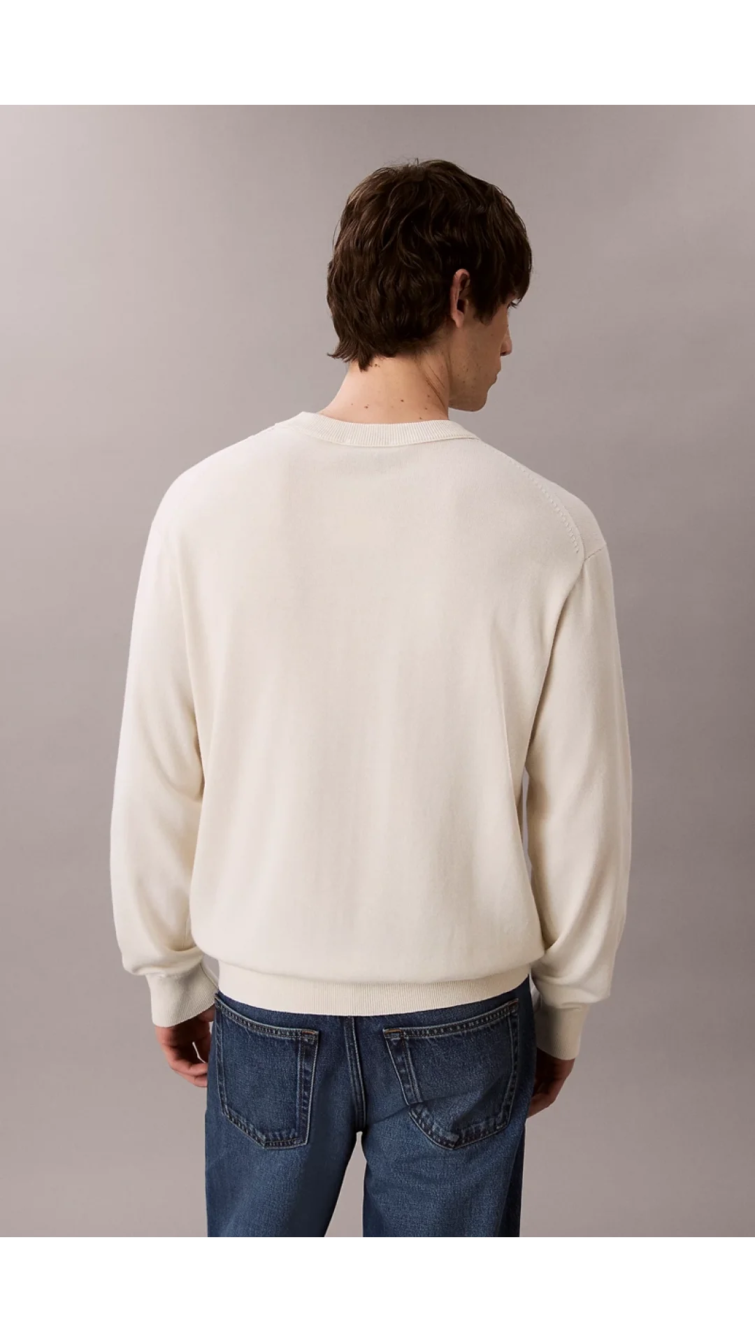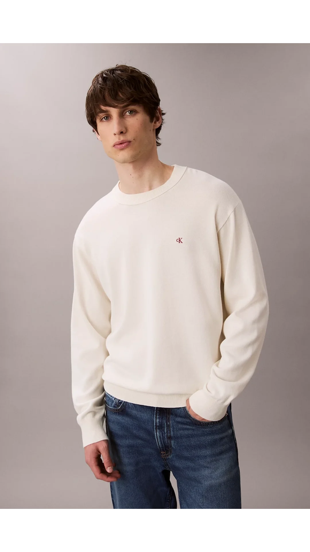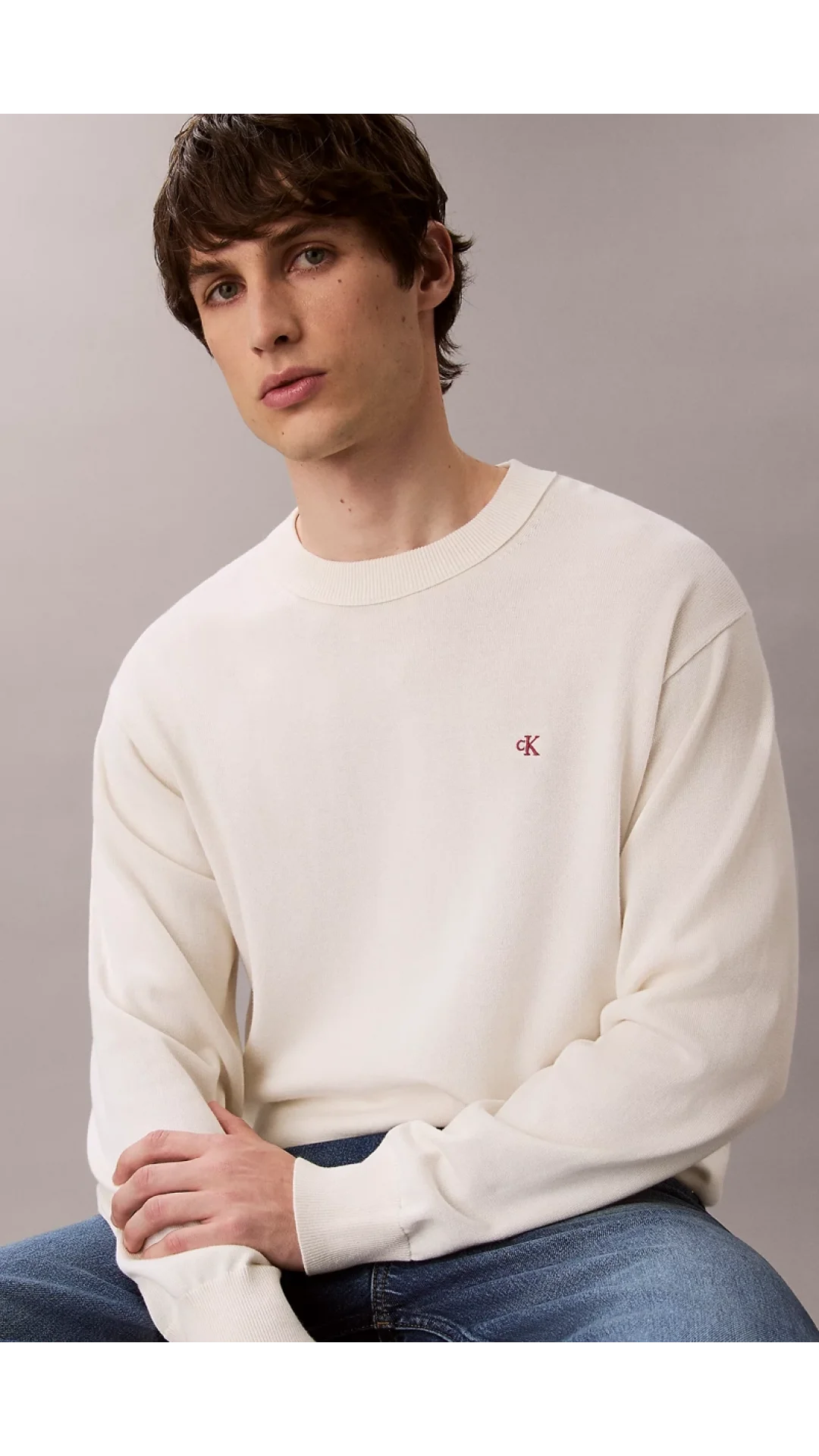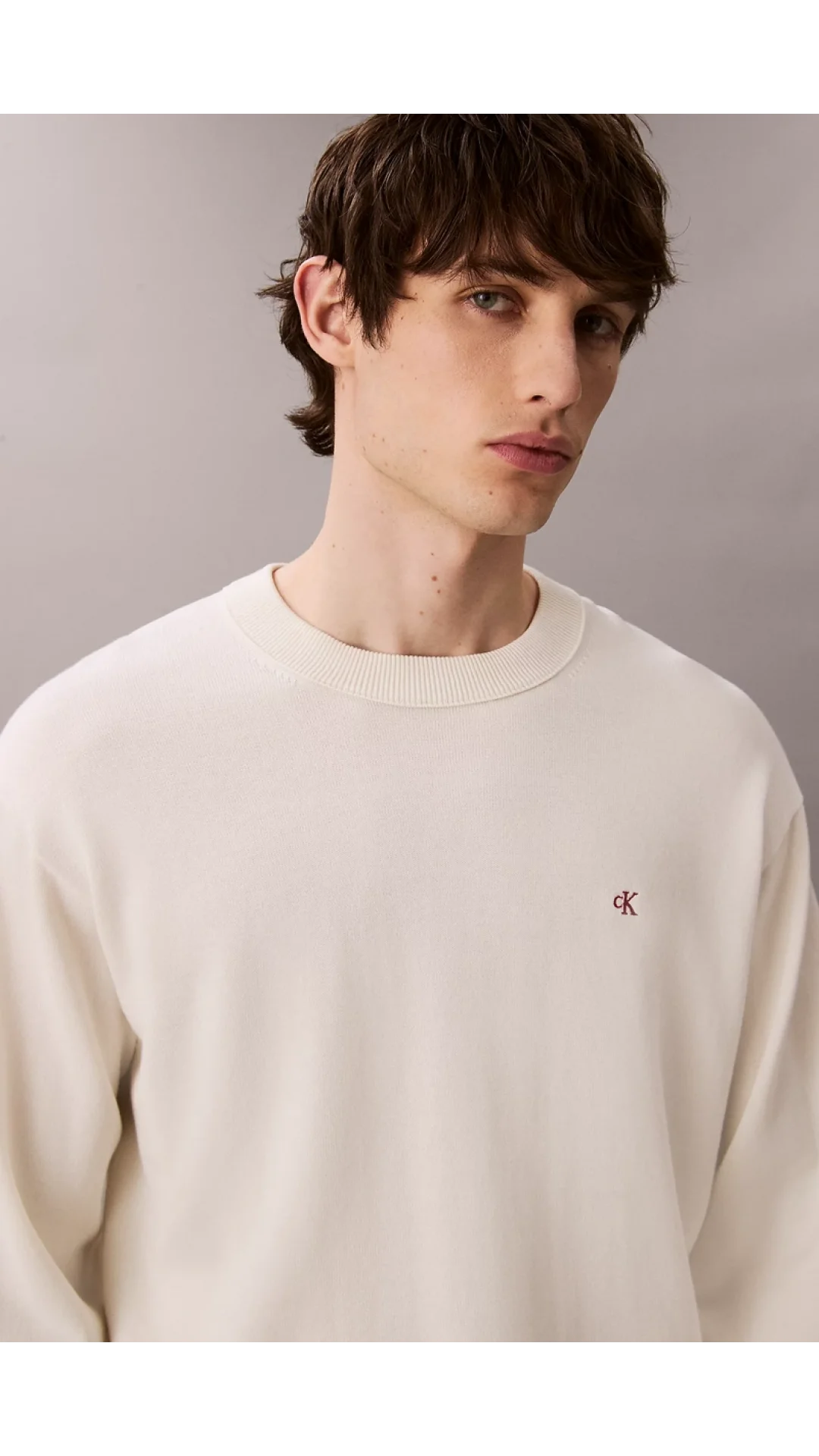 Calvin Klein Uzun Kollu Rahat Pamuklu Bisiklet Yaka Erkek Beyaz Kazak LV04RC309G-YAS