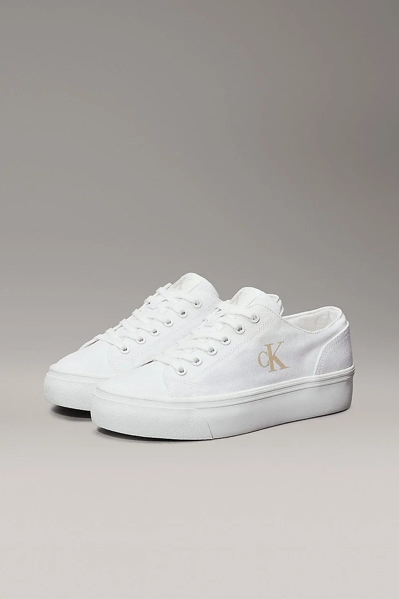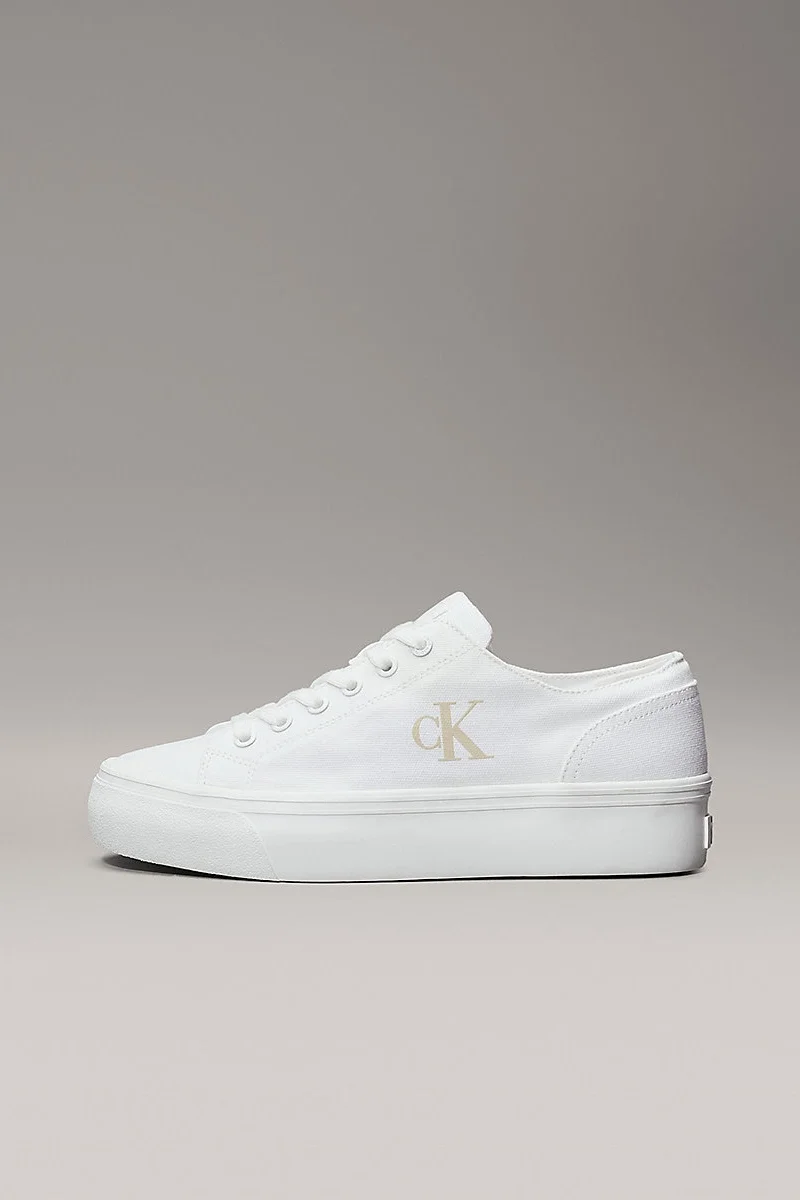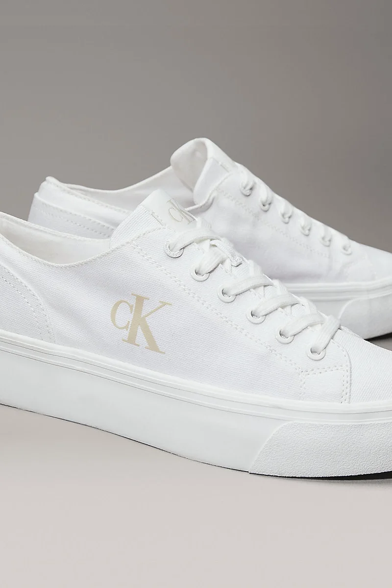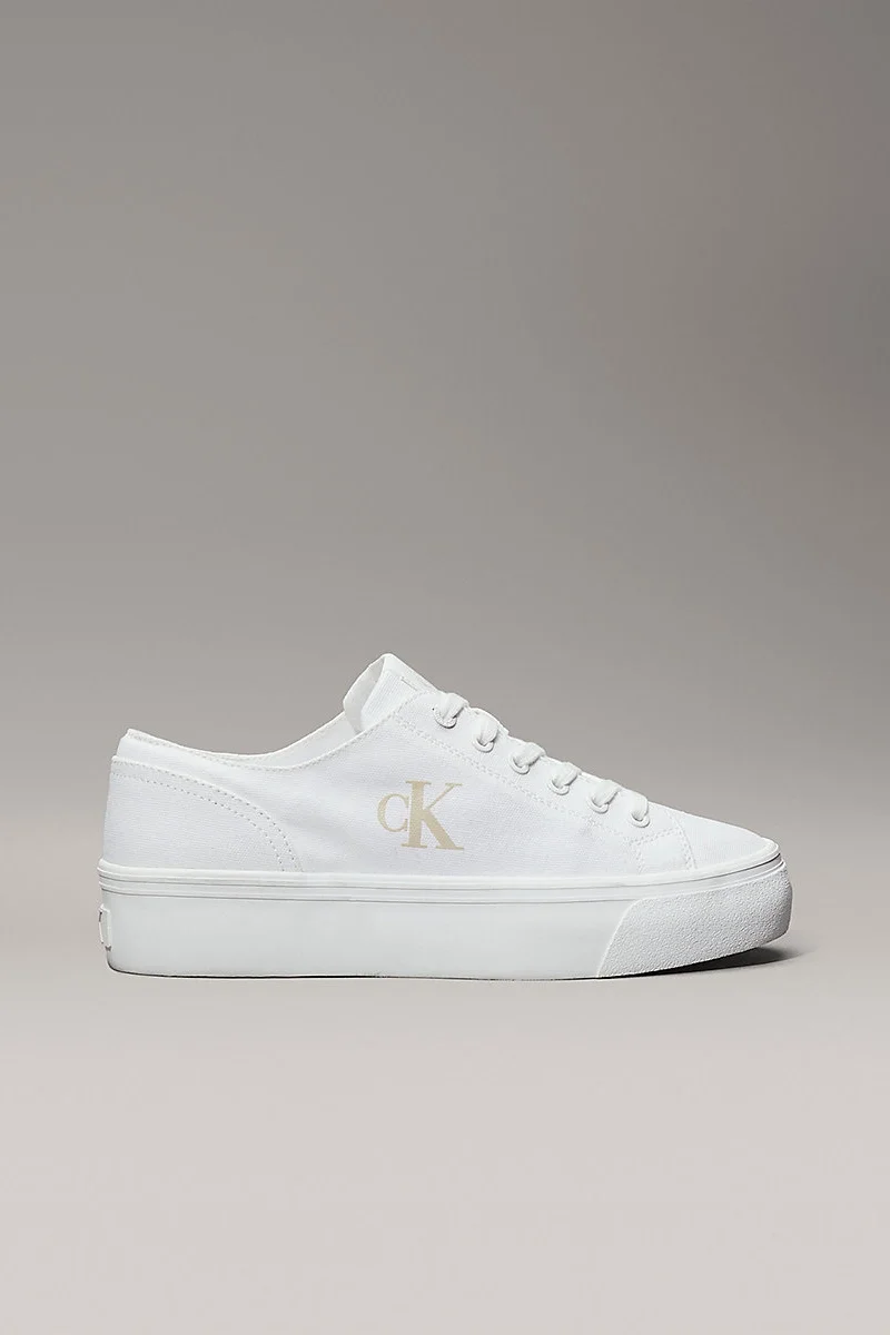 Calvin Klein Vulkanize Flatform Düşük Bilekli Kanvas Monogram Kadın Beyaz Sneaker YW0YW01763-01W