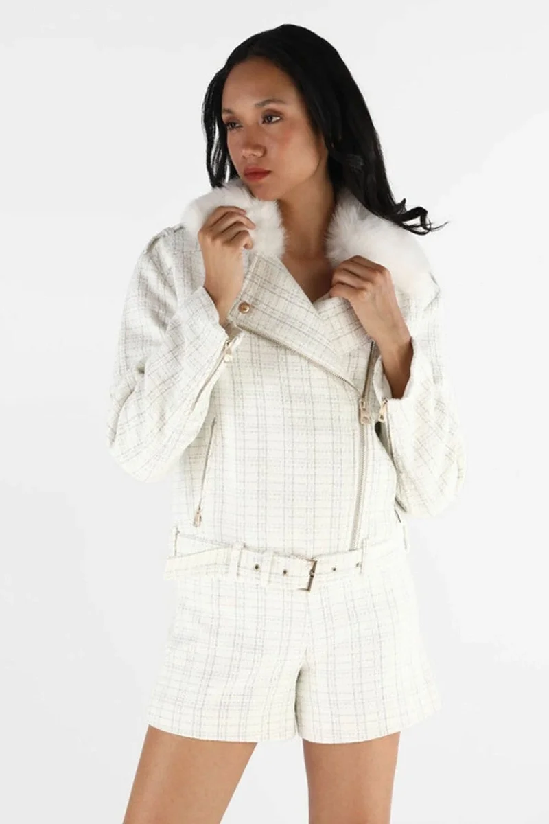 Guess Sandra Kadın Beyaz Biker Ceket W5BL16W2382-F0YK