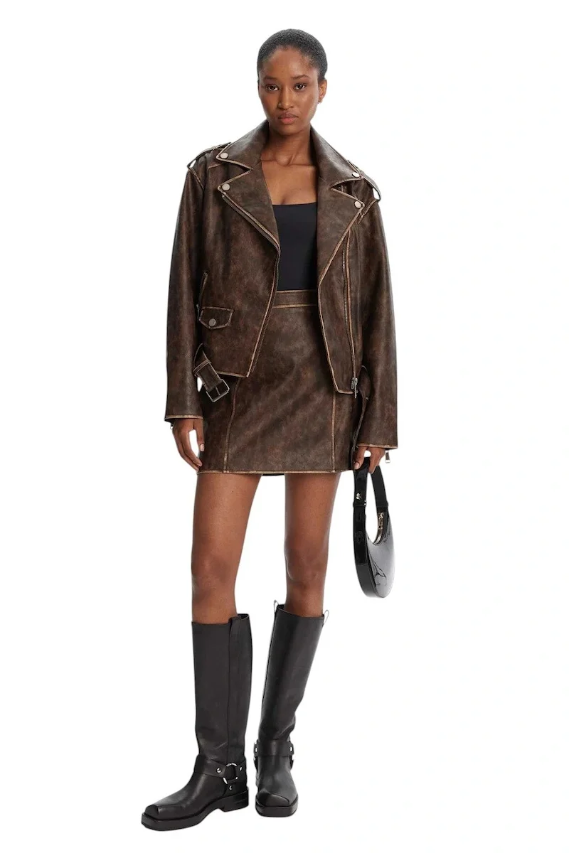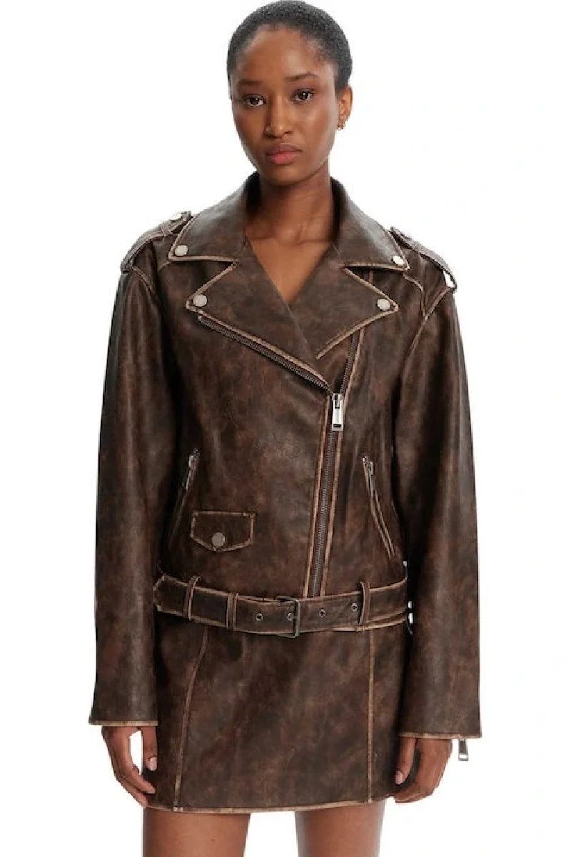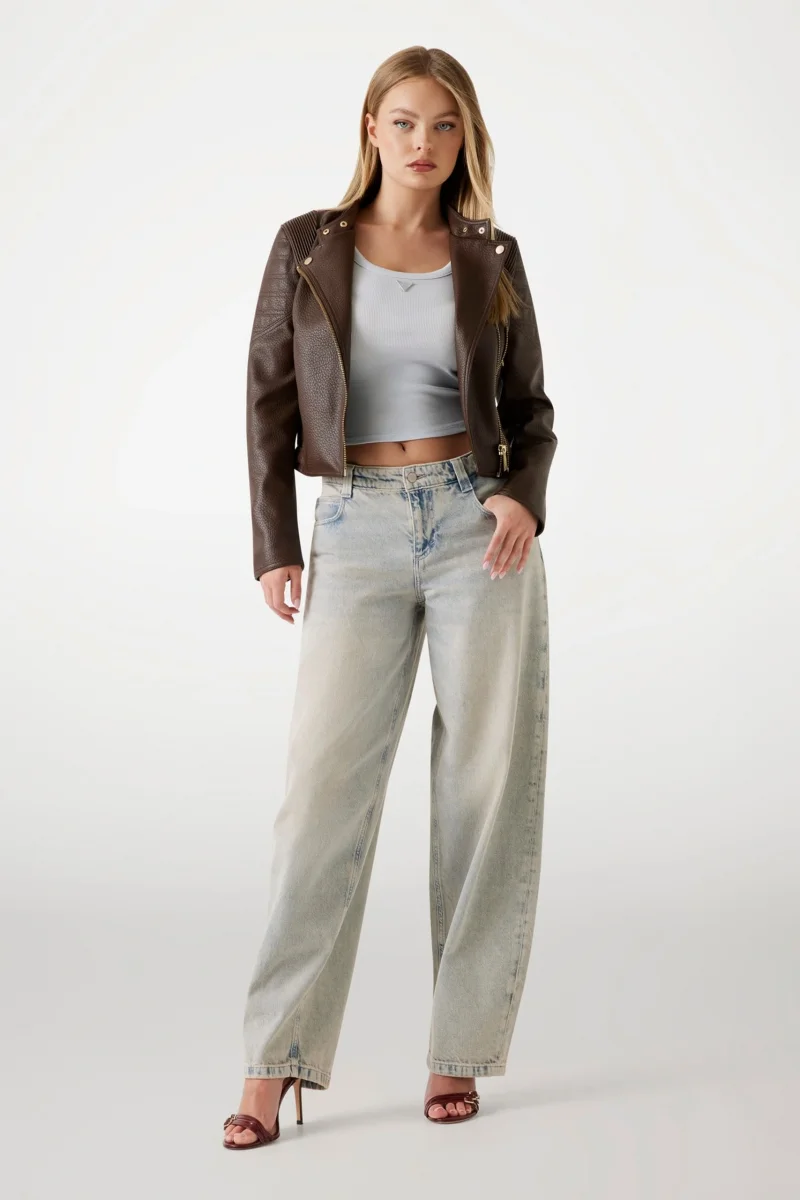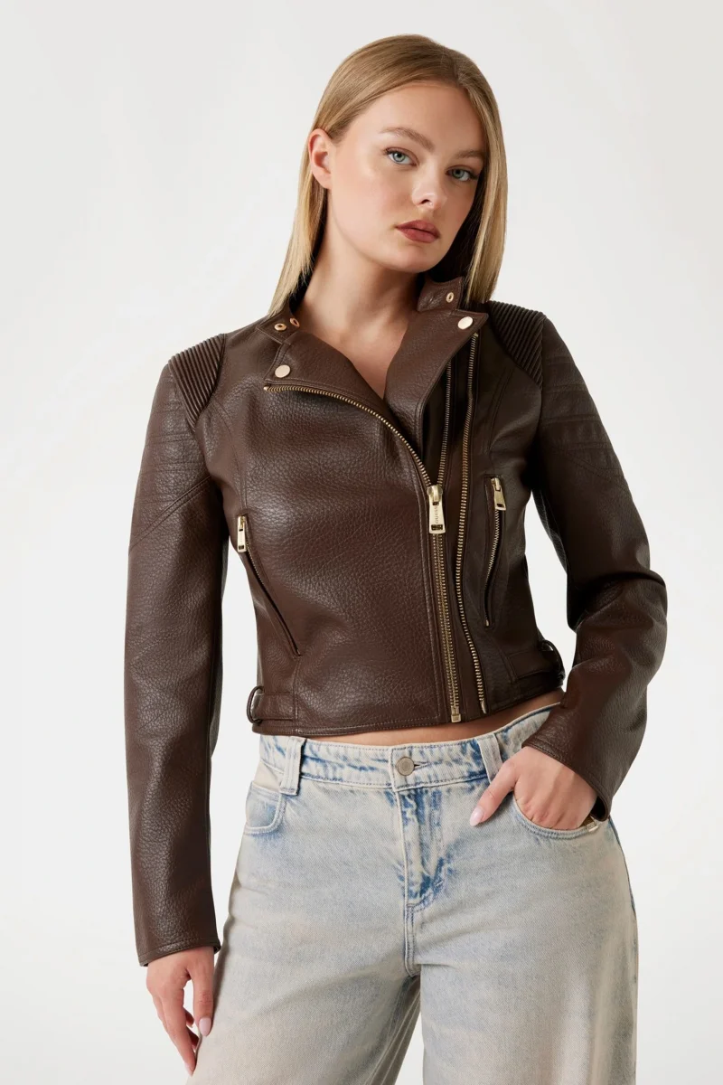 Guess Charlene Kadın Kahverengi Biker Ceket W5YL04WHDI0-F1GQ