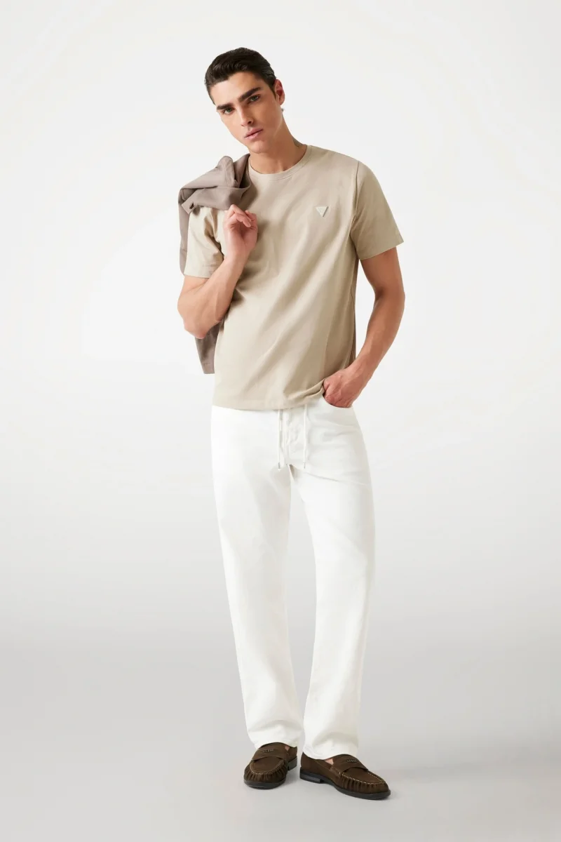 Guess Ss Cn Patch Erkek Bej Regular Fit T-Shirt M4YI0AKCCM1-G1CA