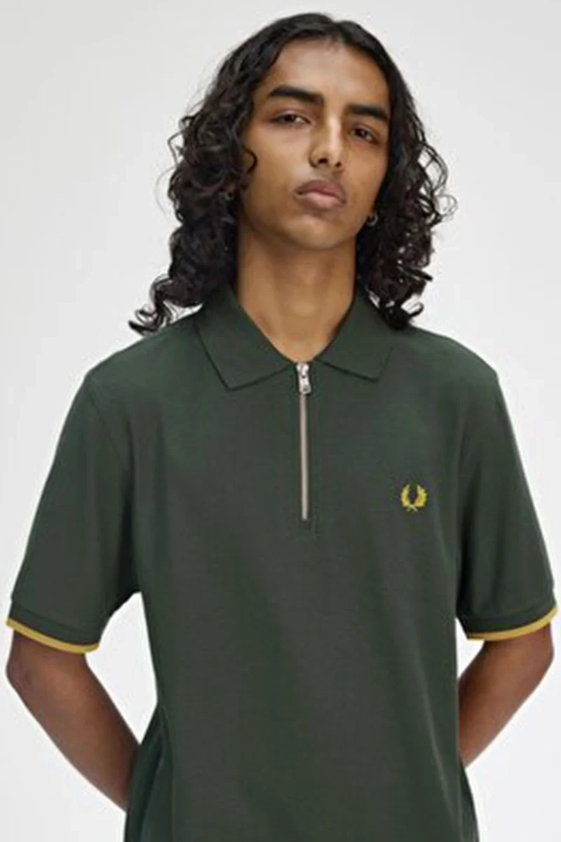 Fred Perry CREPE PIQUE ZIP NECK SHIRT Erkek T-shirt M9886-X89