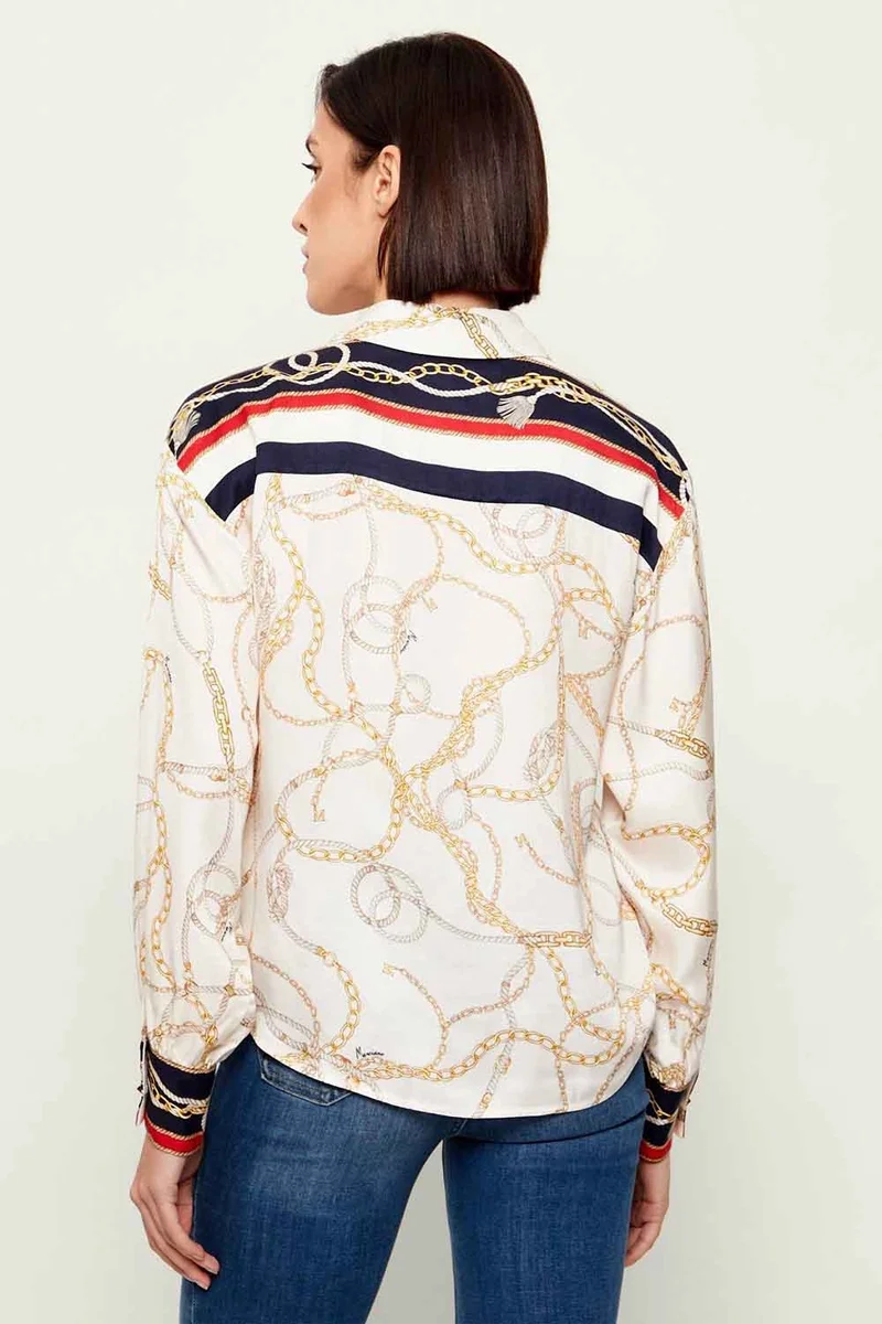 Stil İpucu: Bu çok renkli gömleği, desendeki baskın renklerden biriyle uyumlu bir Guess kumaş pantolonla kombinleyerek monokrom bir bütünlük yakalayabilir; ya da beyaz bir denim pantolonla desenleri ön plana çıkarabilirsiniz.