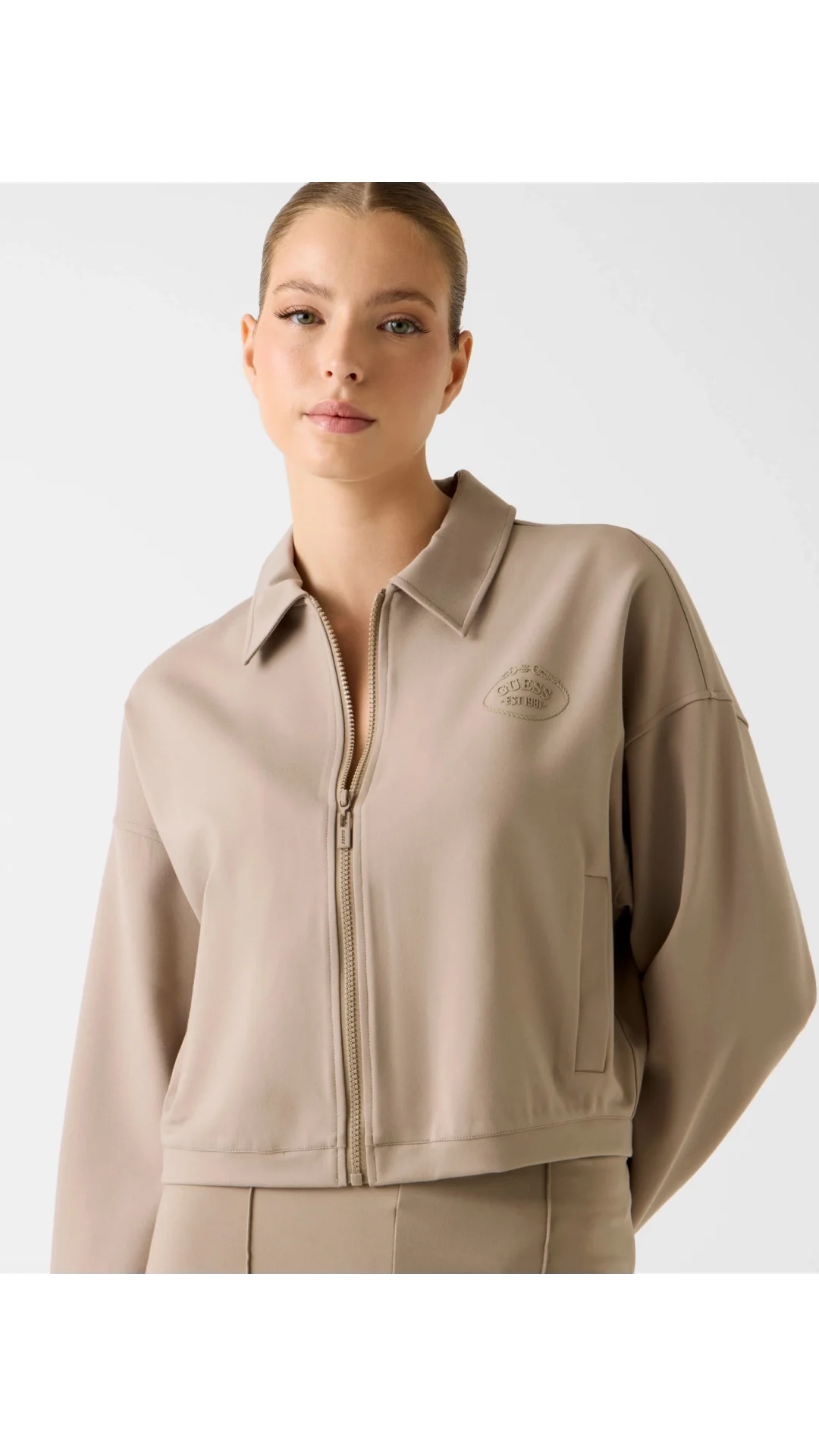 Guess Annie Kısa Tam Fermuarlı Kadın Bej Ceket V6RQ17KD822-G1O3