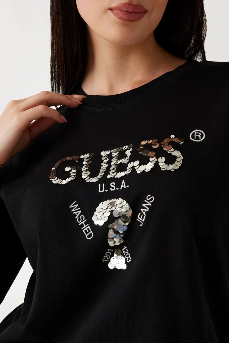 Minimal Guess logosu detayı – Zarif marka imzası