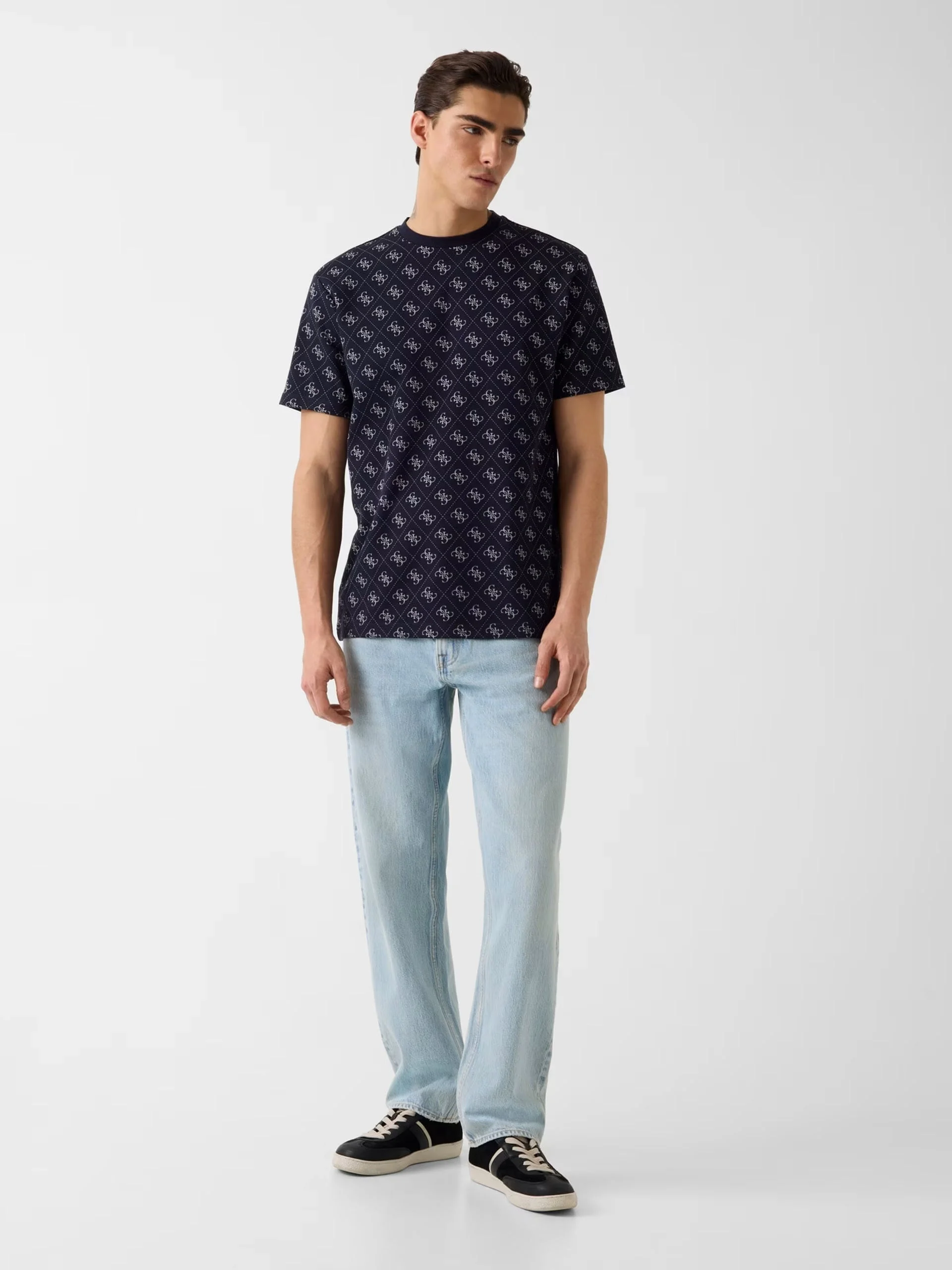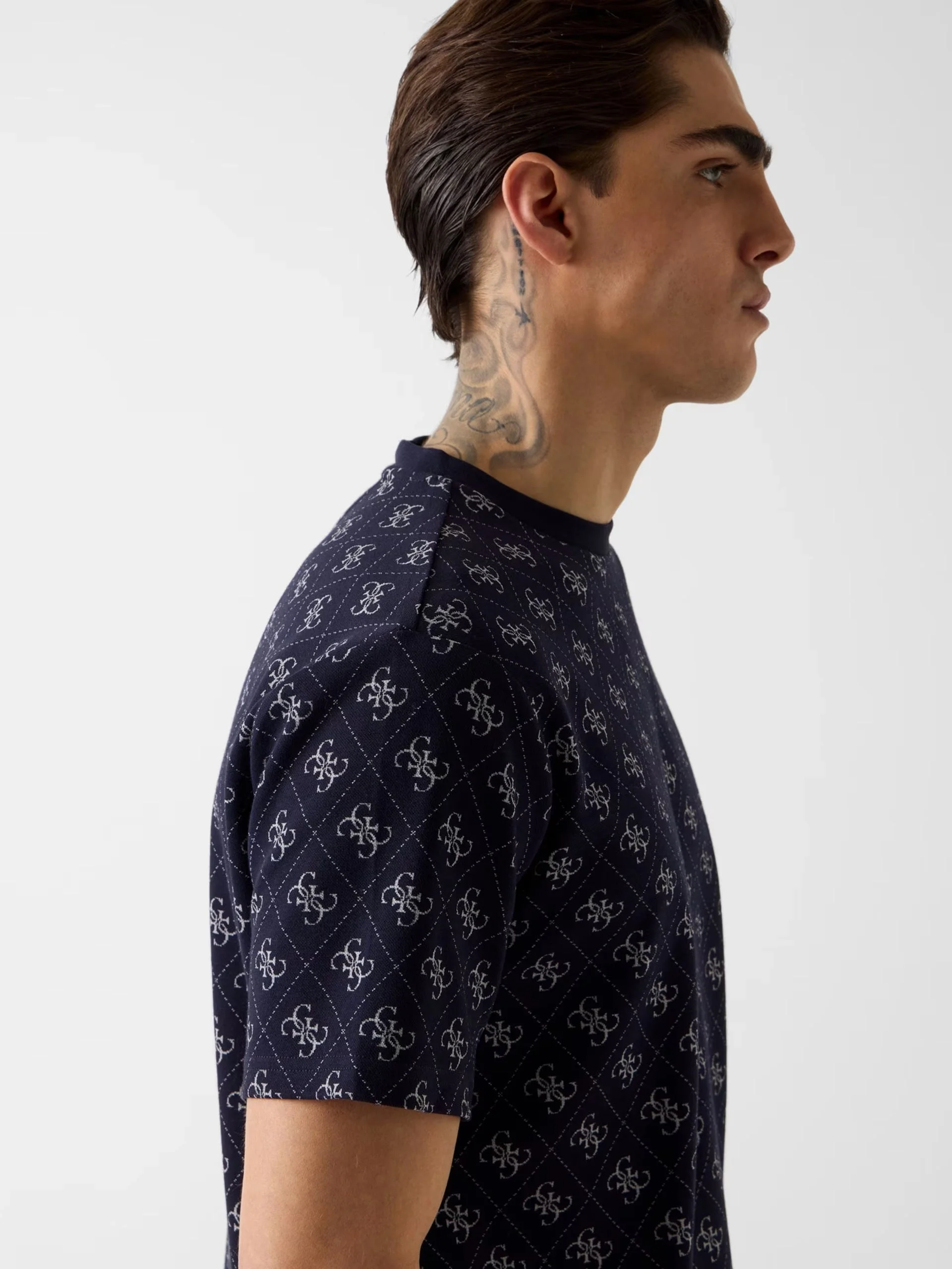 Guess Bisiklet Yaka Kısa Kollu Jakarlı 4G Örme Erkek Lacivert Top M6GP34K3200-FBDB
