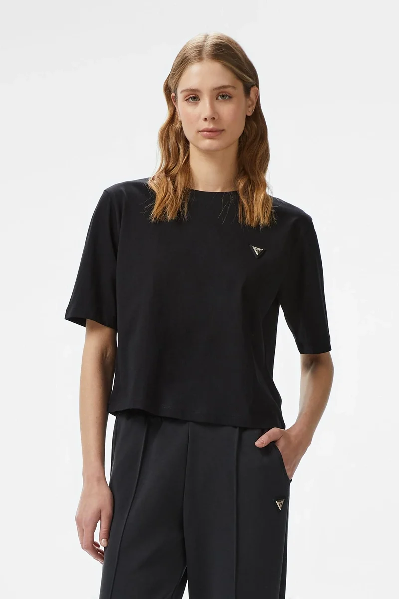Klasik siyah tişört stilini modern detaylarla seven kadınlar Guess markasının Colette gibi zarif casual modellerini tercih edenler Günlük kullanım için kaliteli ve konforlu bir seçenek isteyenler