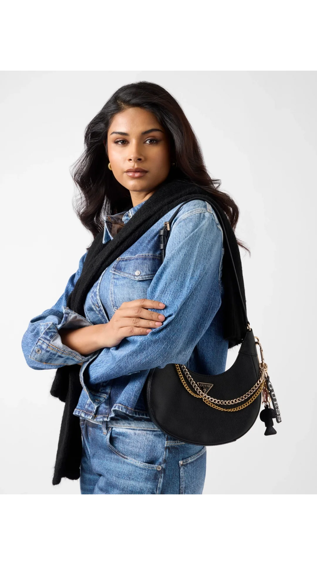 - İkonik Marka İmzası: Ön yüzeyde çantanın zarafetini tamamlayan karakteristik metalik Guess logosu.