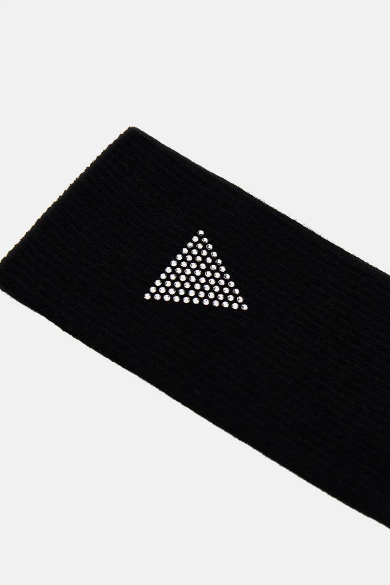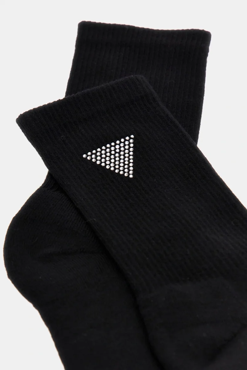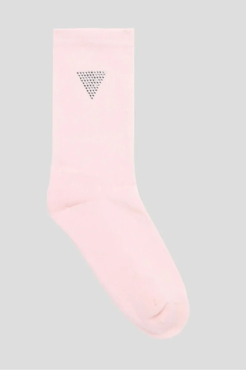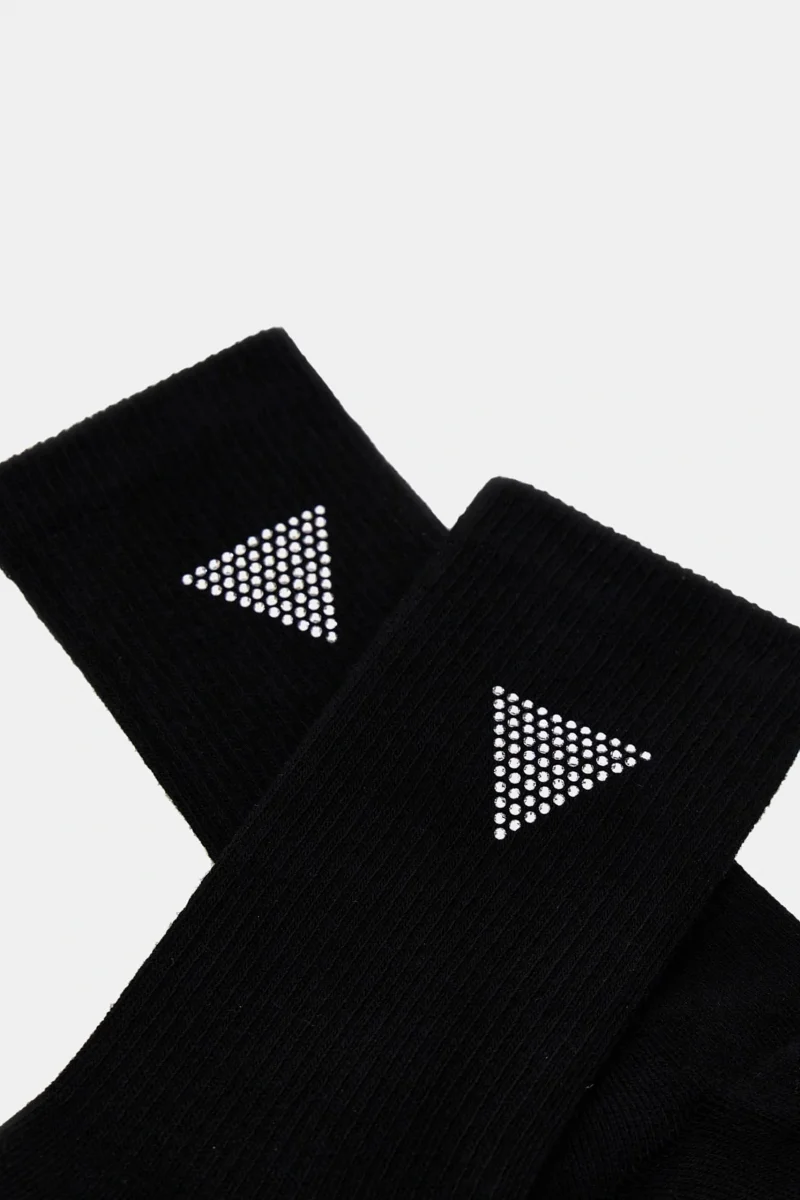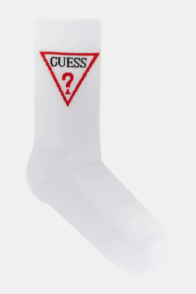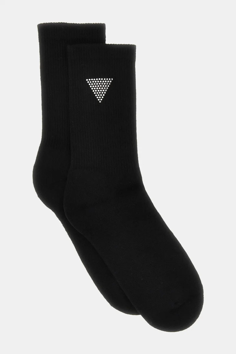 Günlük kullanım için markalı ve rahat çorap arayan kadınlar Guess markasının ikonik üçgen logolu ürünlerini sevenler Klasik siyah renkte, stil sahibi bir çorap isteyenler