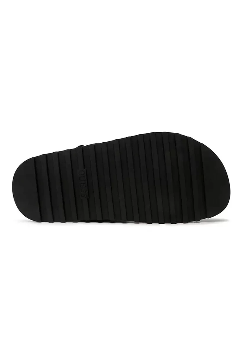 BLKPL (Siyah & İnci) Kontrastı: Siyah bantların üzerinde yer alan rafine inci (Pearl) detayları ve Guess logolu metalik süslemeler, sandalete bir takı şıklığı katar.