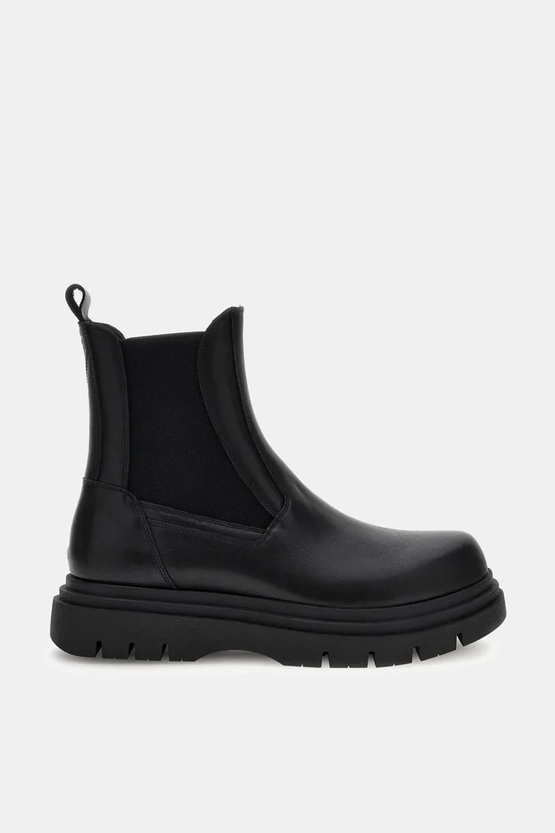Şıklığı ve dayanıklılığı bir araya getiren bu siyah deri bot, Guess’in modern ve ikonik tasarım anlayışını yansıtır. Yüksek kaliteli deri malzemesi ve sağlam tabanı sayesinde hem konforlu hem de uzun ömürlü kullanım sunar. Günlük ve şehir stilinde şık bir tercih olarak öne çıkar.