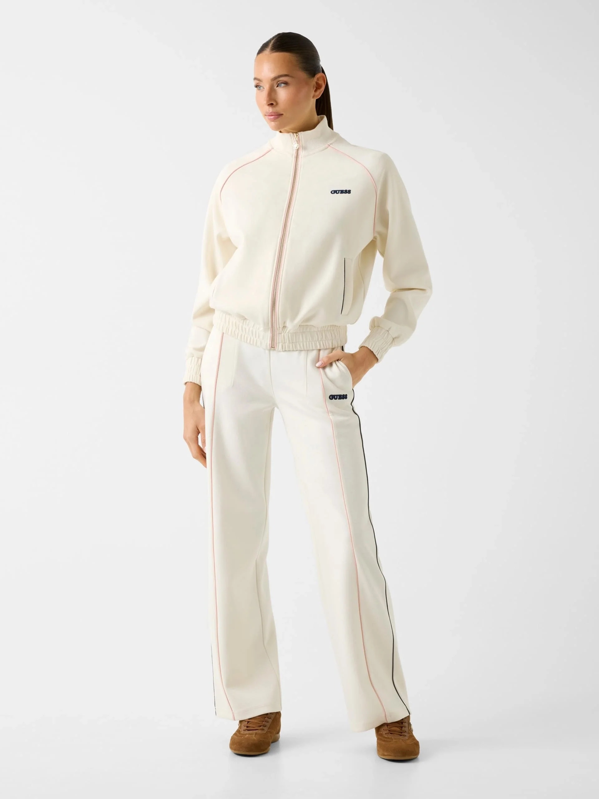 Guess Georgia Hakim Yaka Tam Fermuarlı Kadın Beyaz Sweatshirt V6RQ00KD852-G1O6