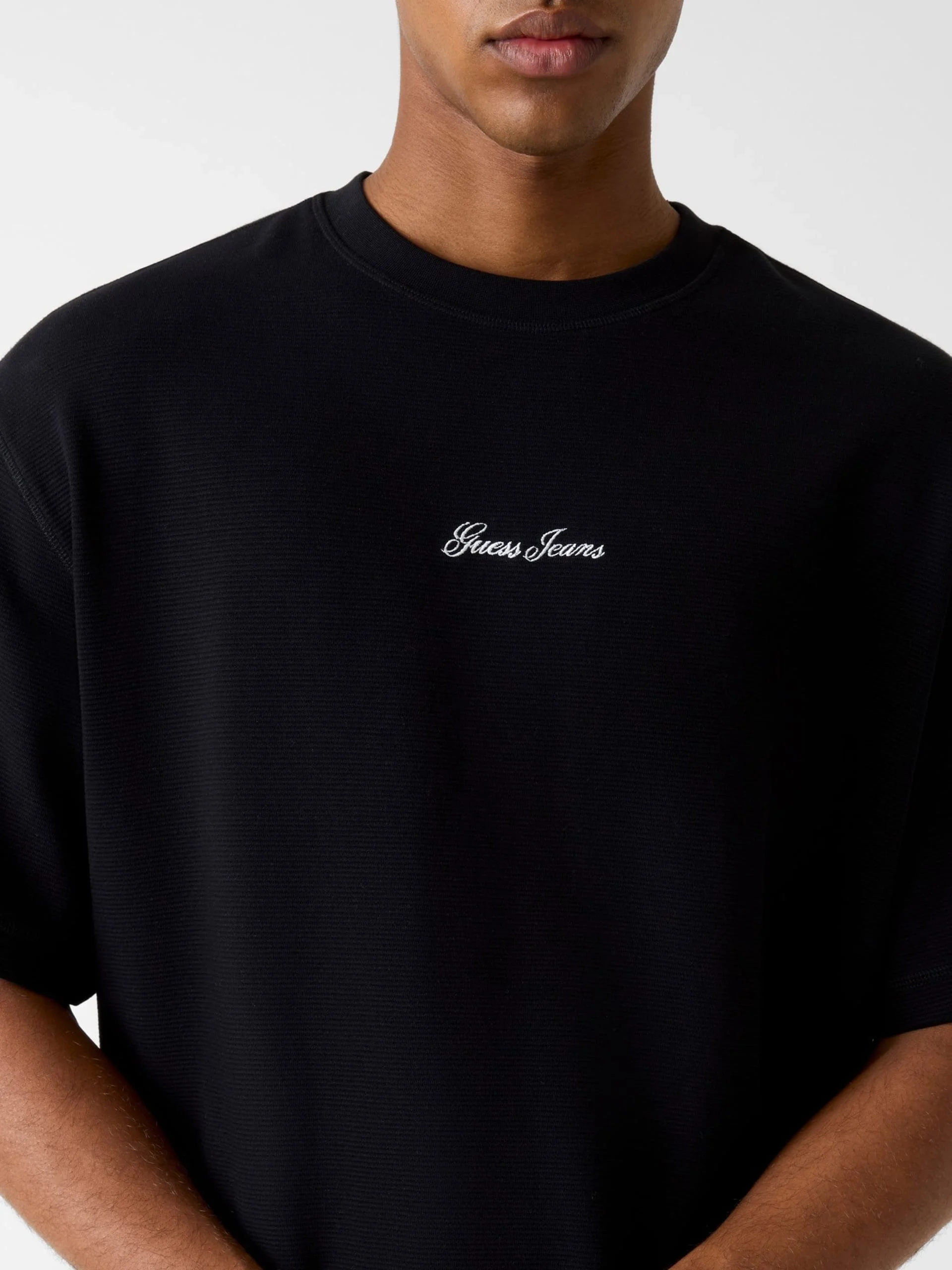Guess GJ Kısa Kollu Kutulu Kesim Kısa Ottoman Erkek Siyah Top M6RP14KD461-JBLK, Guess’in modern sokak modasını "Boxy" (Kutulu) kesim trendiyle yeniden yorumladığı, dokusuyla fark yaratan özel bir üst giyim parçasıdır. Geleneksel tişörtlerden farklı olarak kullanılan Ottoman örgü tekniği, kumaşa hafif engebeli ve karakteristik bir yatay çizgi dokusu kazandırarak ürüne hem hacim hem de premium bir ağırlık katar. Jet siyah (JBLK) rengiyle sunulan bu tasarım, maskülen ve avangart bir stil arayan erkekler için idealdir. Ürün, faturalı olarak Docca güvencesiyle sunulmaktadır.