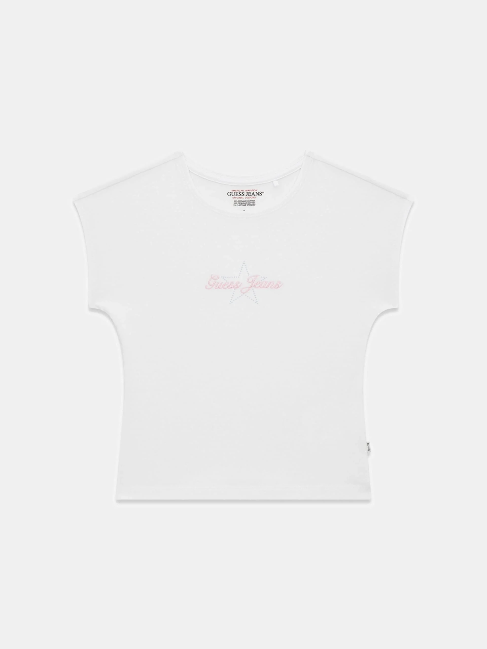 • Yıldızlı Grafik Detaylar: Ön panelde yer alan yıldız desenleri ve Guess logolu grafikler, markanın "GJ" (Guess Juniors/Genç) enerjisini ve pop-art estetiğini yansıtır.