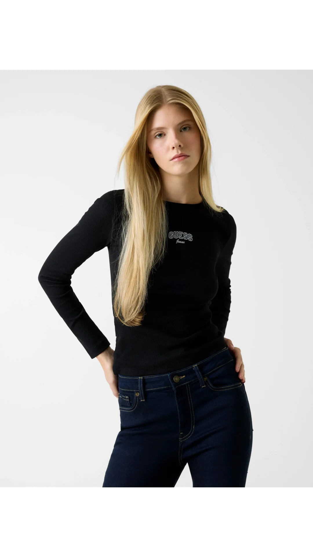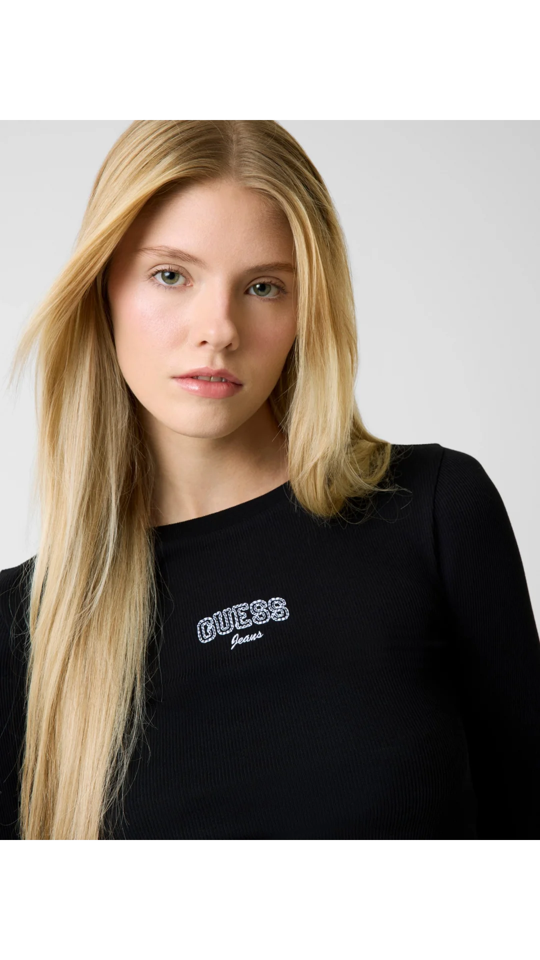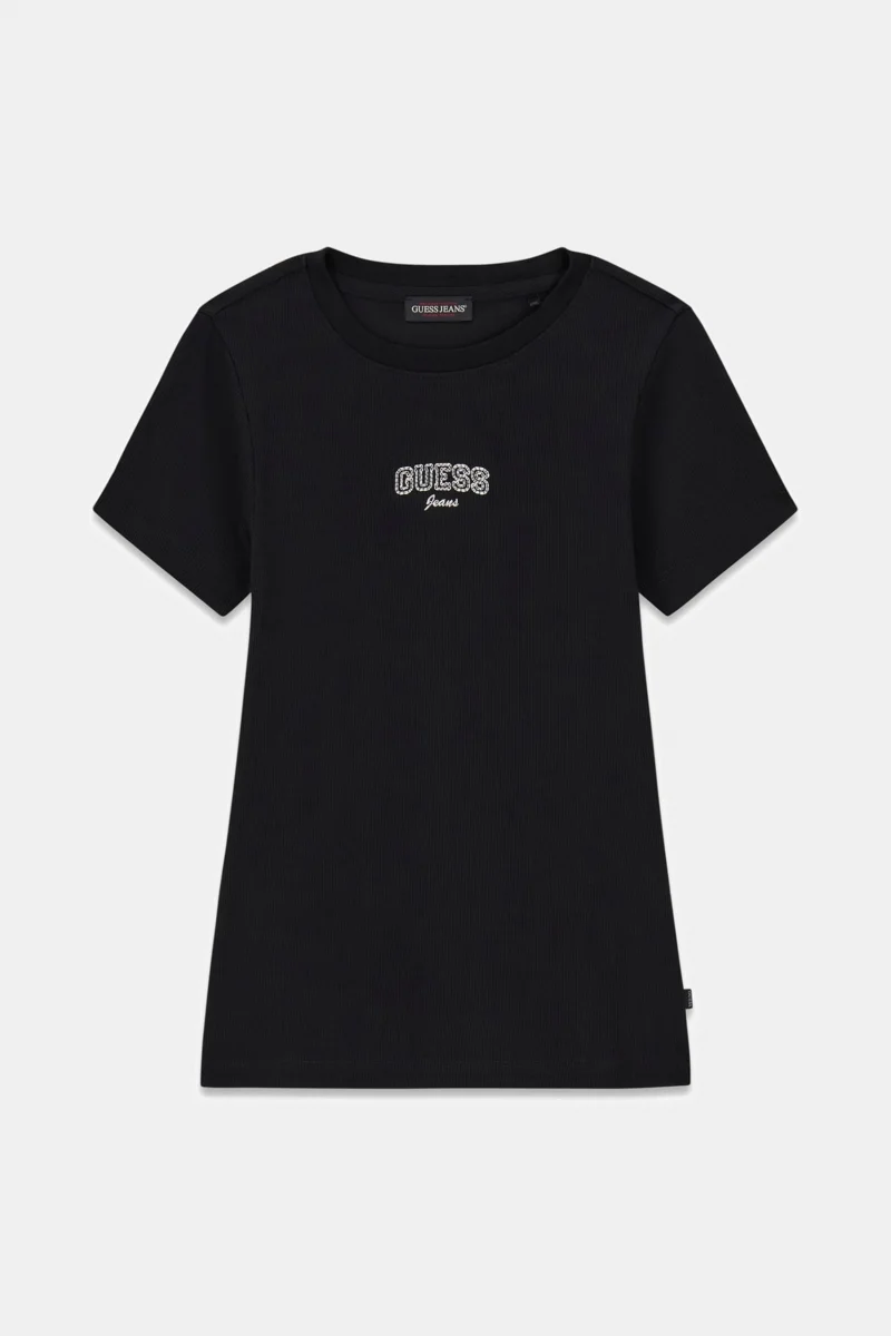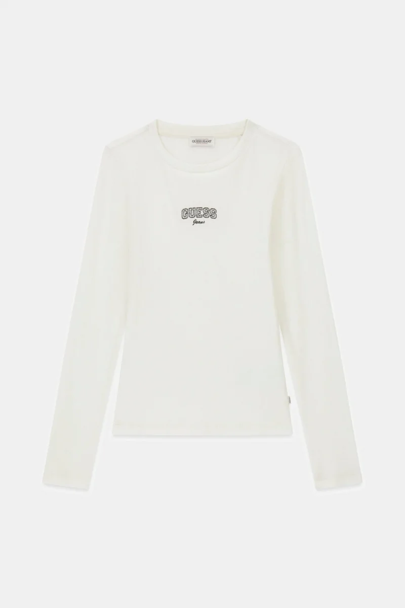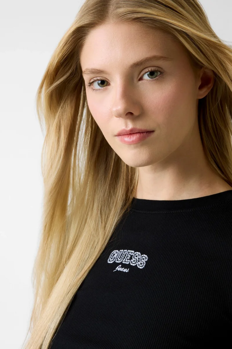 Guess GJ Uzun Kollu Bisiklet Yaka Nakışlı Dar Kesim Kadın Siyah Top W6RP22KA0H1-JBLK