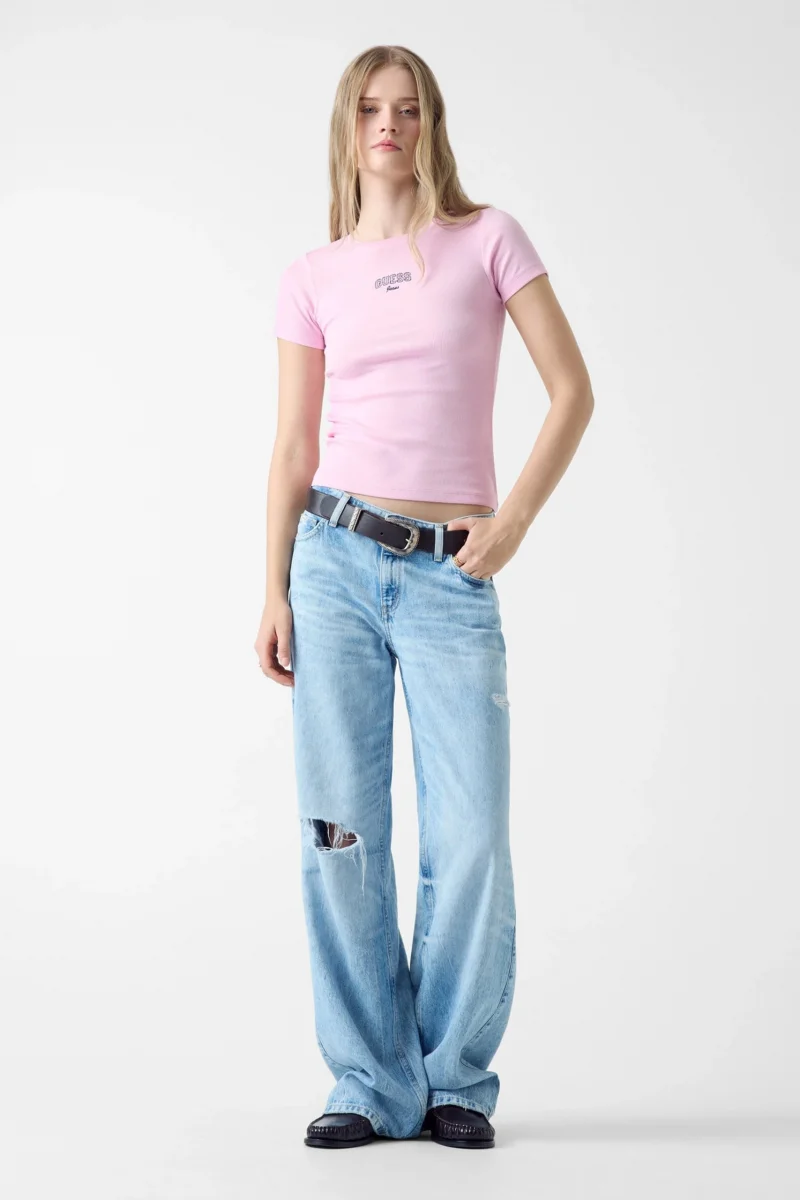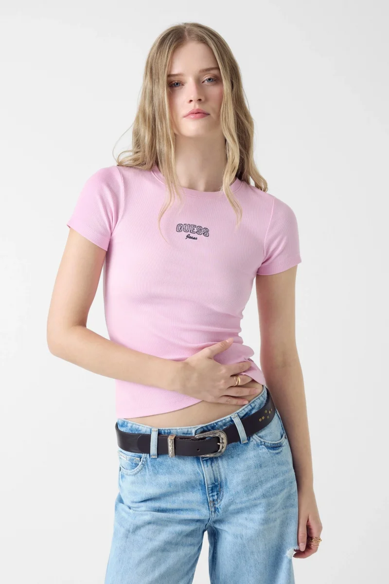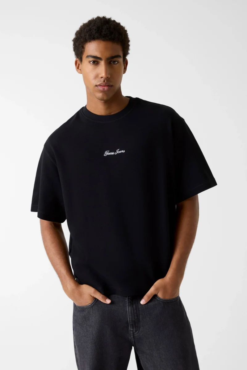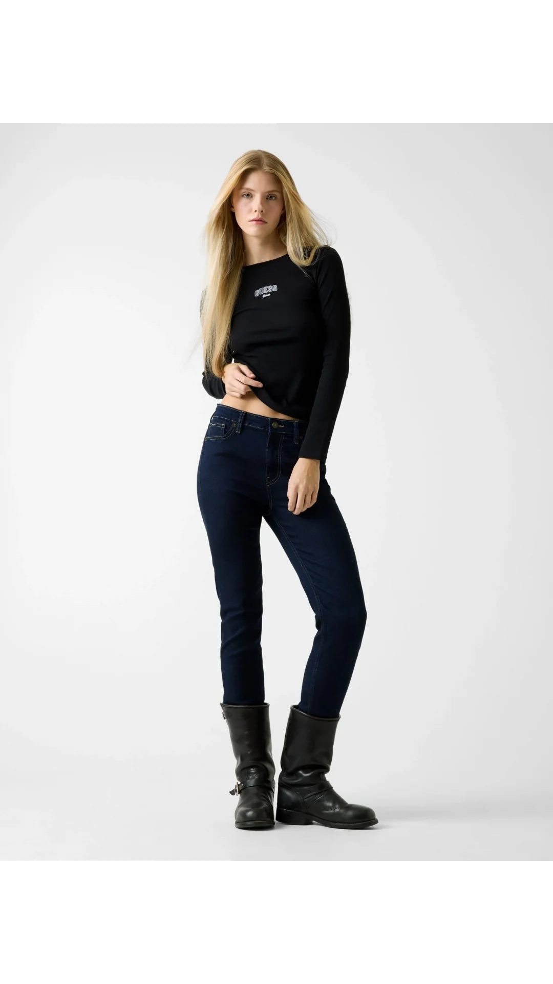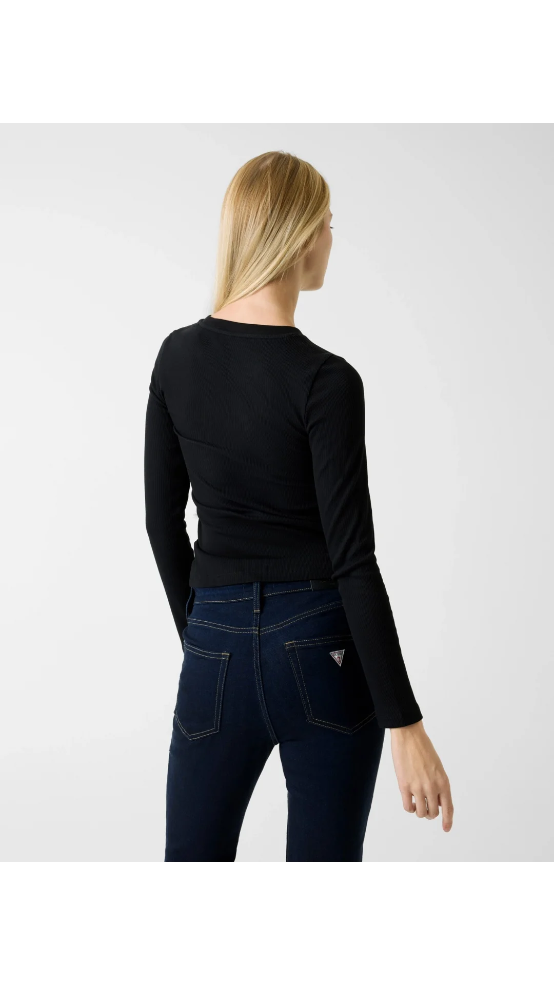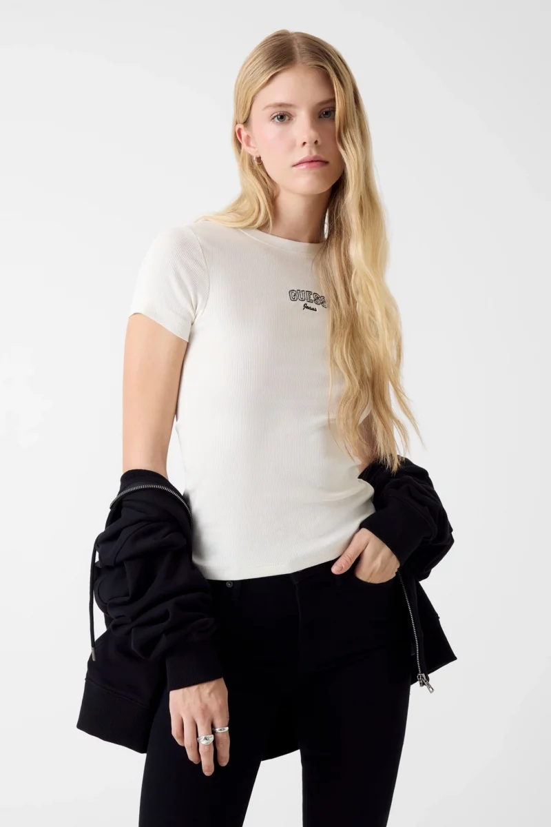 Guess GJ Uzun Kollu Bisiklet Yaka Nakışlı Dar Kesim Kadın Siyah Top W6RP22KA0H1-JBLK
