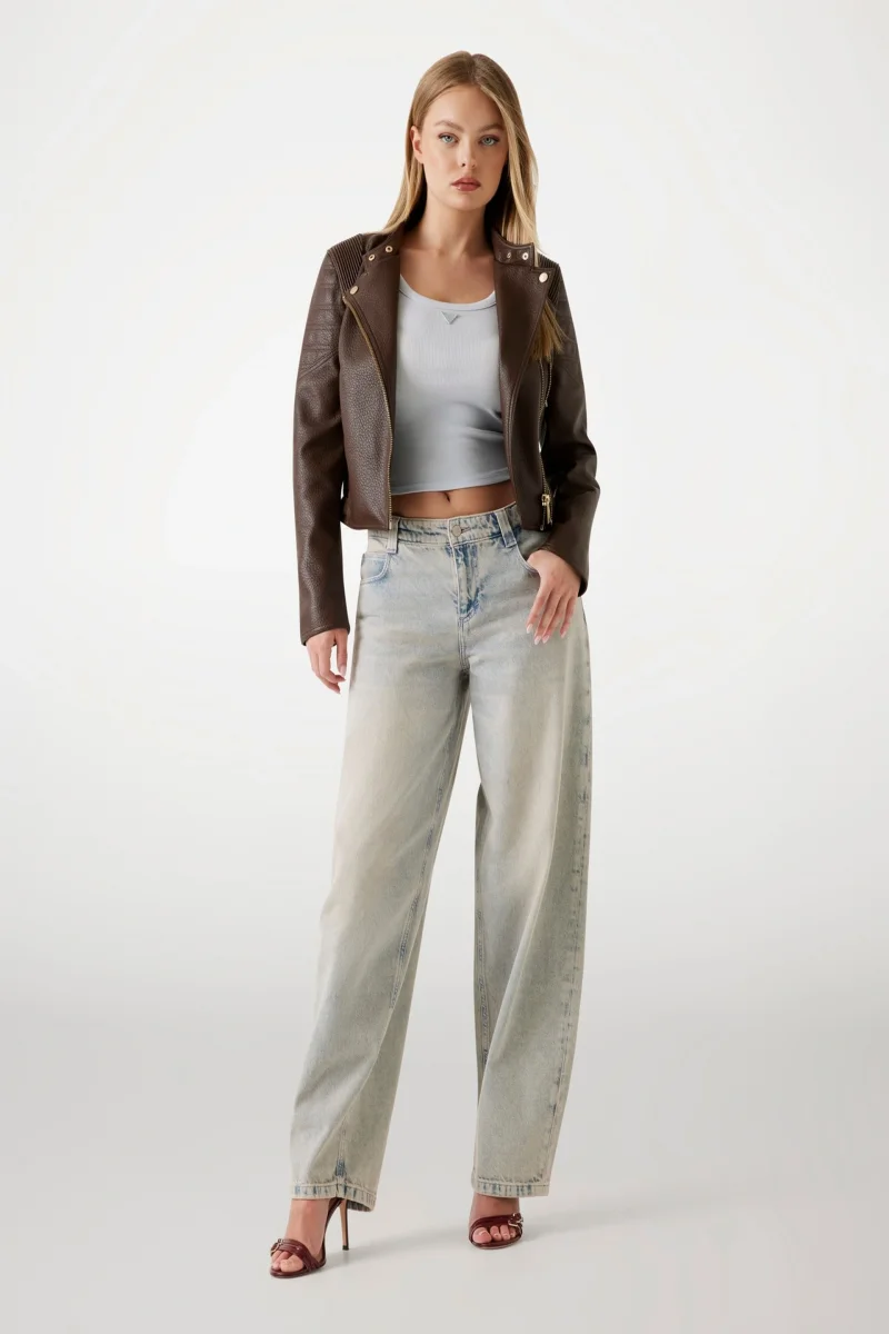 Guess Jeannine Kadın Kahverengi Biker Ceket W5YL19WHDS0-FN09