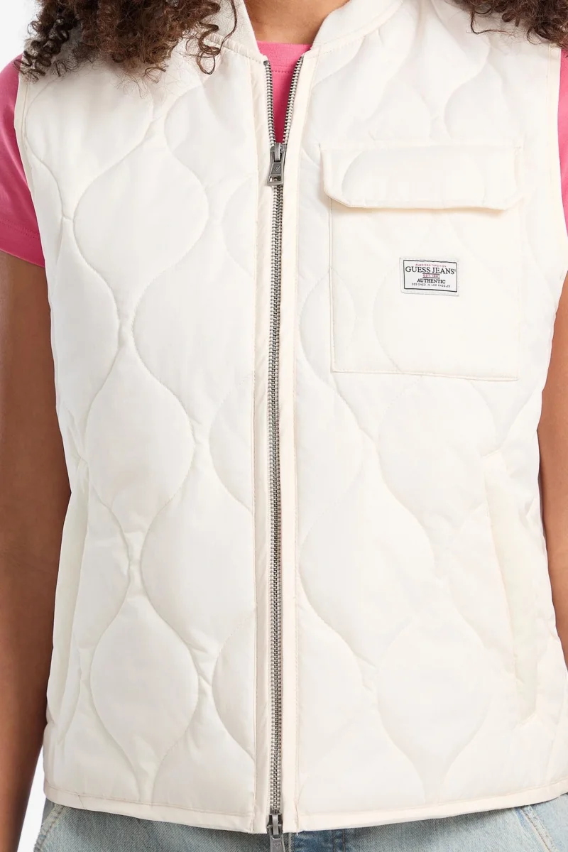 Klasik denim estetiğini modern çizgilerle buluşturan bu beyaz denim yelek, gardırobunuzun vazgeçilmez parçası olacak. Eco-friendly üretim anlayışıyla hazırlanan yelek, hem şık hem de sürdürülebilir. Katmanlı kombitlerinizin tamamlayıcısı olarak her mevsim rahatlıkla kullanabilirsiniz.