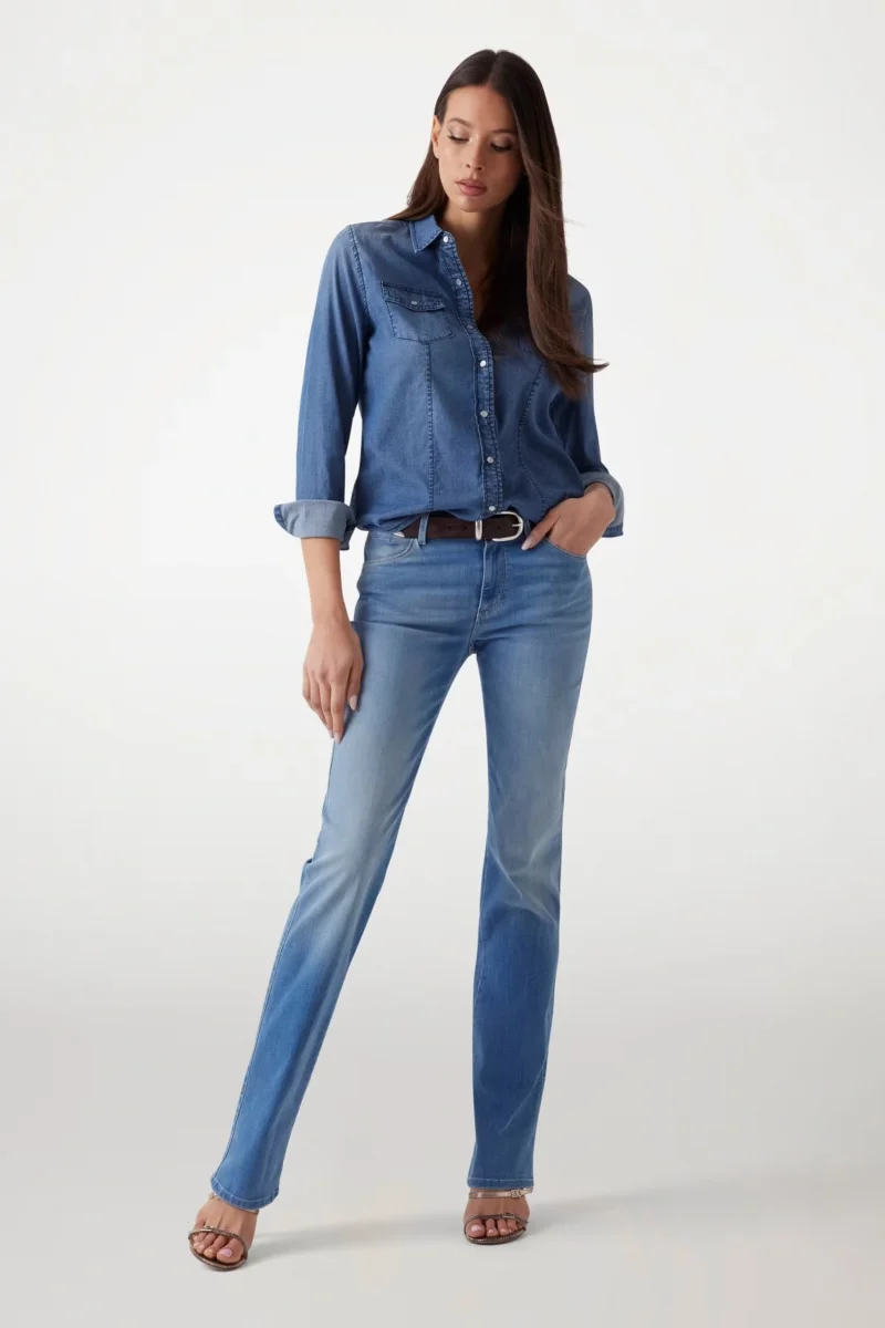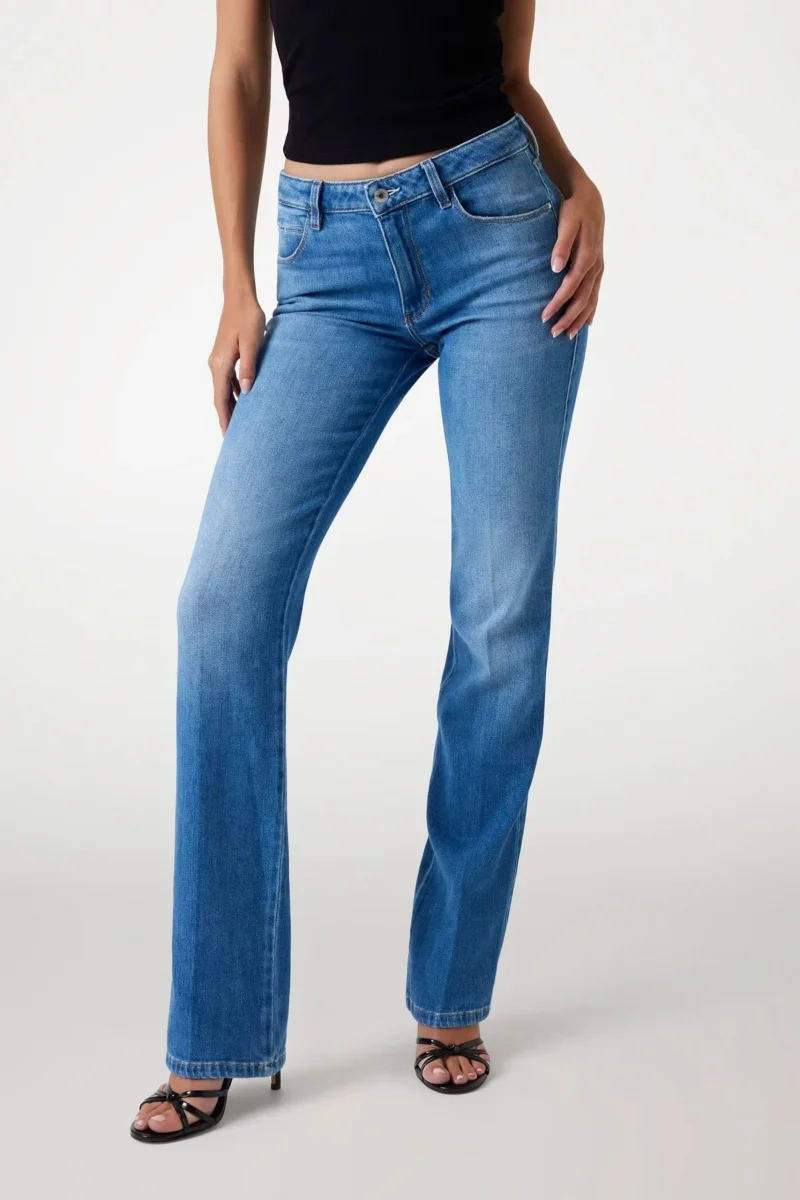 Bu bootcut kesim kadın jeans, klasik mavi tonuyla stilinize zamansız bir dokunuş katıyor. Rahat kesimi ve kaliteli kumaşı sayesinde gün boyu konfor sağlar.