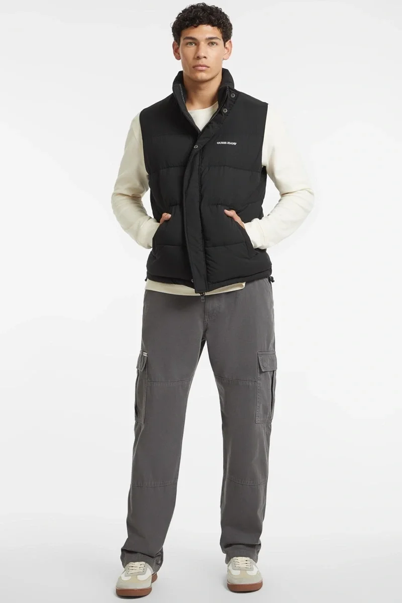 Guess Regular Length Vest, klasik tasarımı ve rahat kesimi ile günlük kombinlerinize şıklık katıyor. Siyah rengi sayesinde farklı üstlerle kolayca kombinlenebilir.