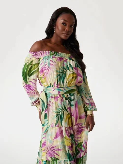 Guess Uzun Kollu Ilenia Pileli Uzun Kadın Çok Renkli Elbise W6RK39WJ712-PM6A