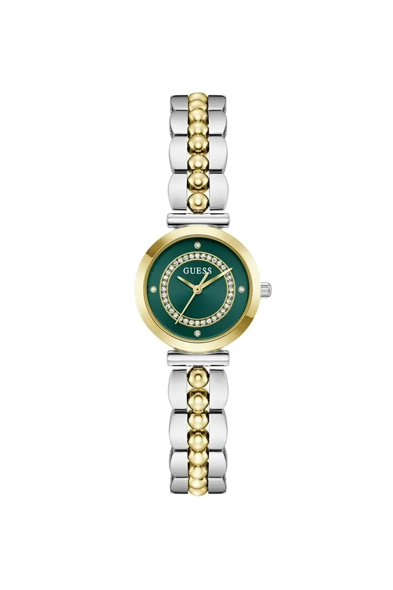 • İkonik Guess Estetiği: Kadranın merkezinde yer alan Guess logosu ve akıcı tasarım çizgileri, markanın moda dünyasındaki prestijli kimliğini bileğinize taşır.