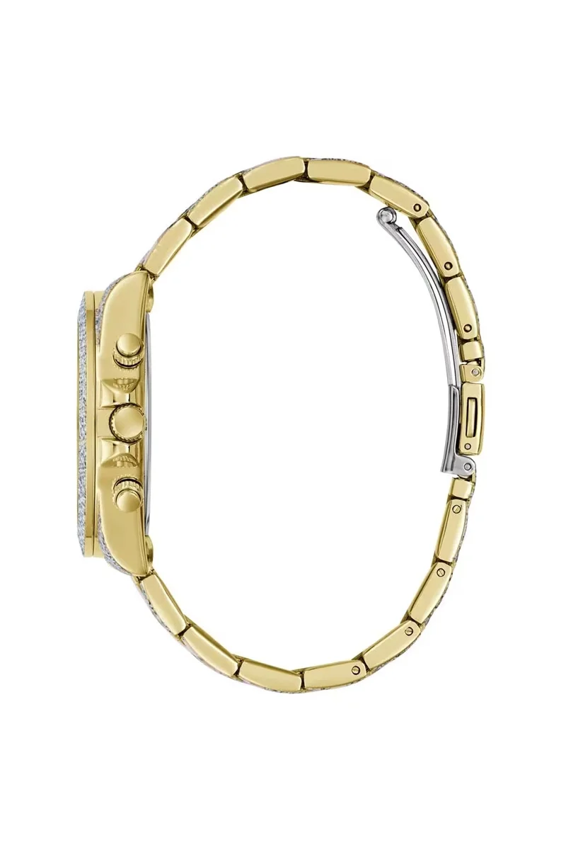 - İkonik Kadran Tasarımı: Minimalist ve okunaklı kadran yapısı, Guess’in modern estetiğini yansıtan logo detaylarıyla zenginleştirilmiştir.
