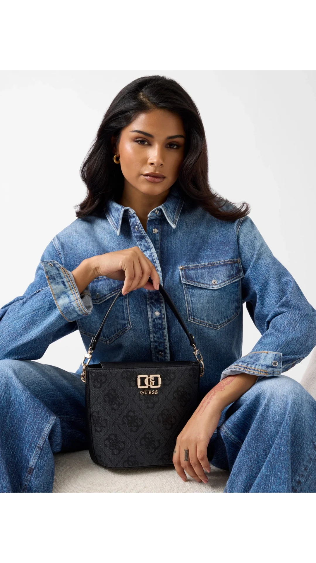 Guess Karnilla Logolu Büzgülü Kadın Antrasit El Çantası HWOS9901010-CLO
