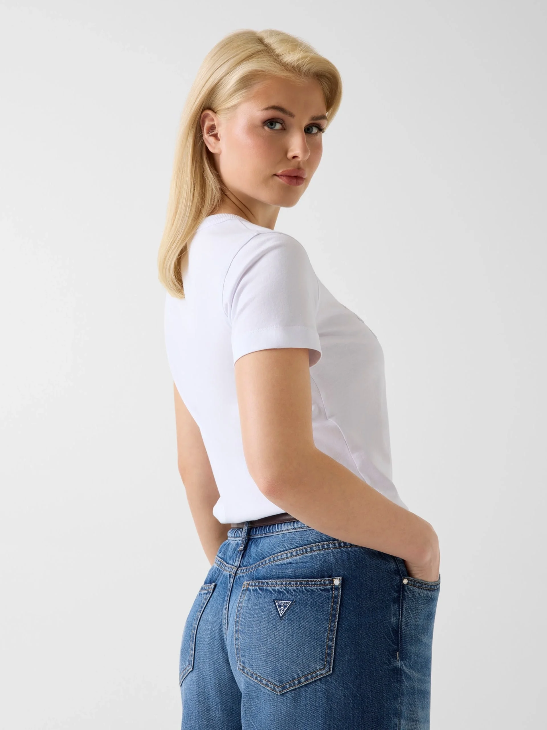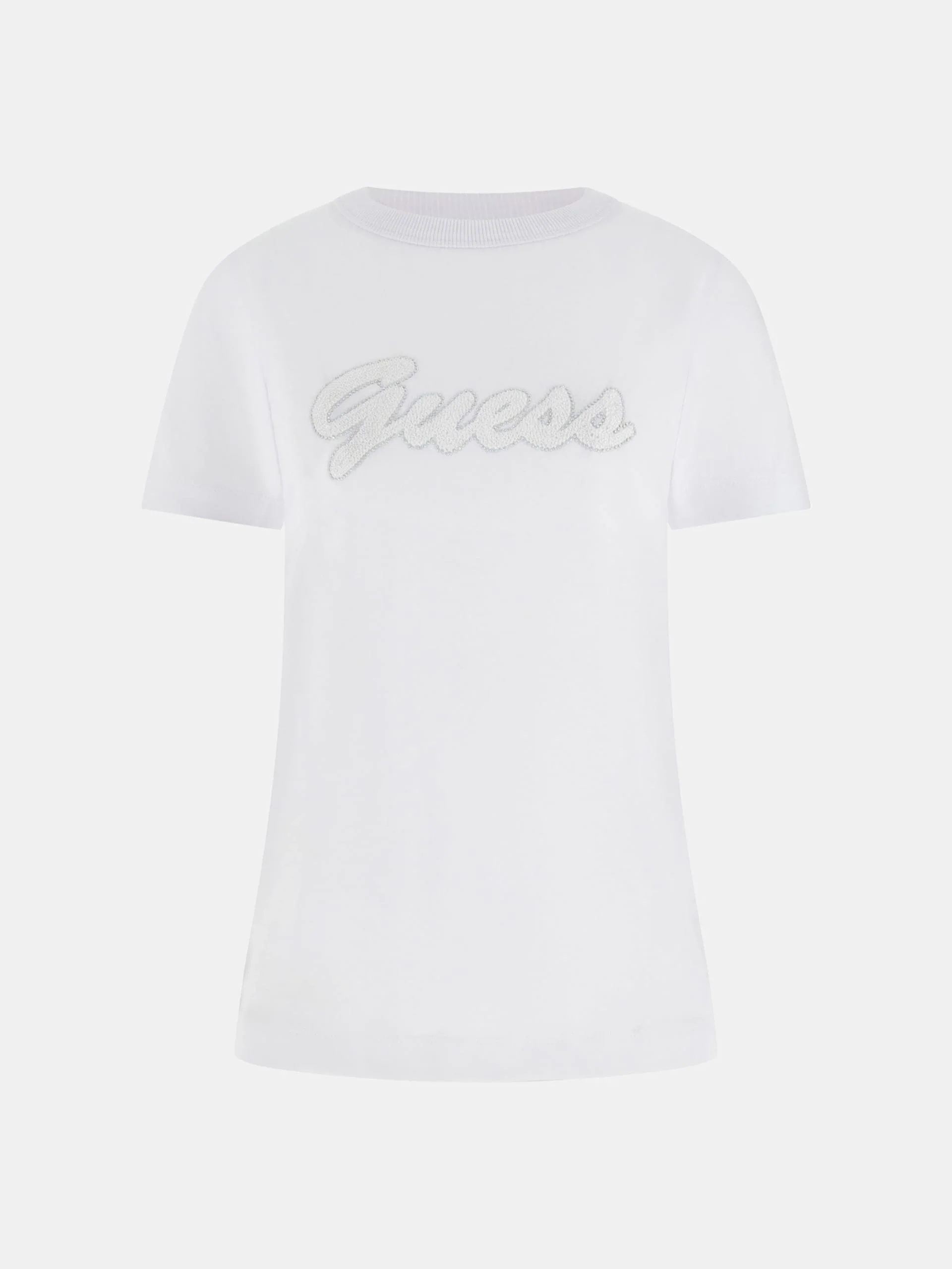 Guess Kısa Kollu Bisiklet Yaka 3D Guess Yazılı Kadın Beyaz T-shirt W6GI08K3023-G011