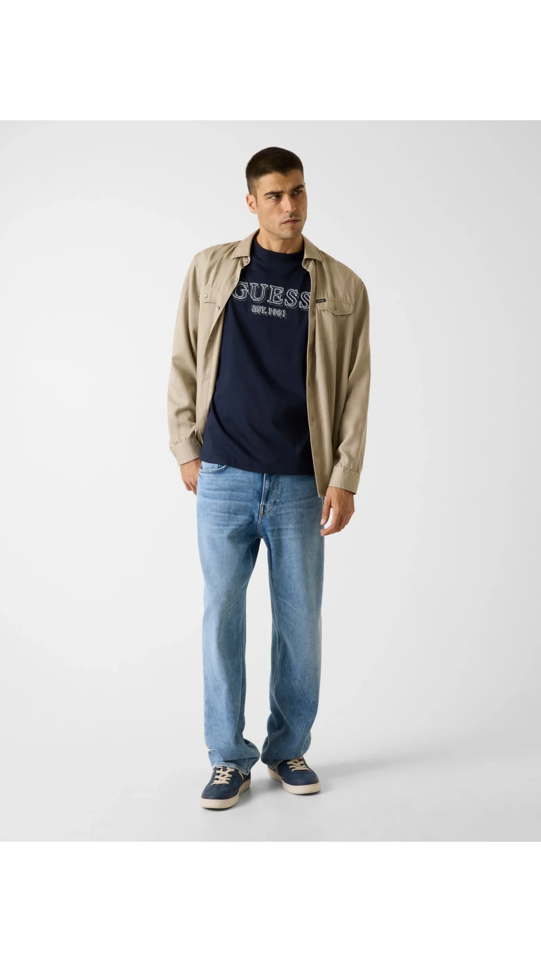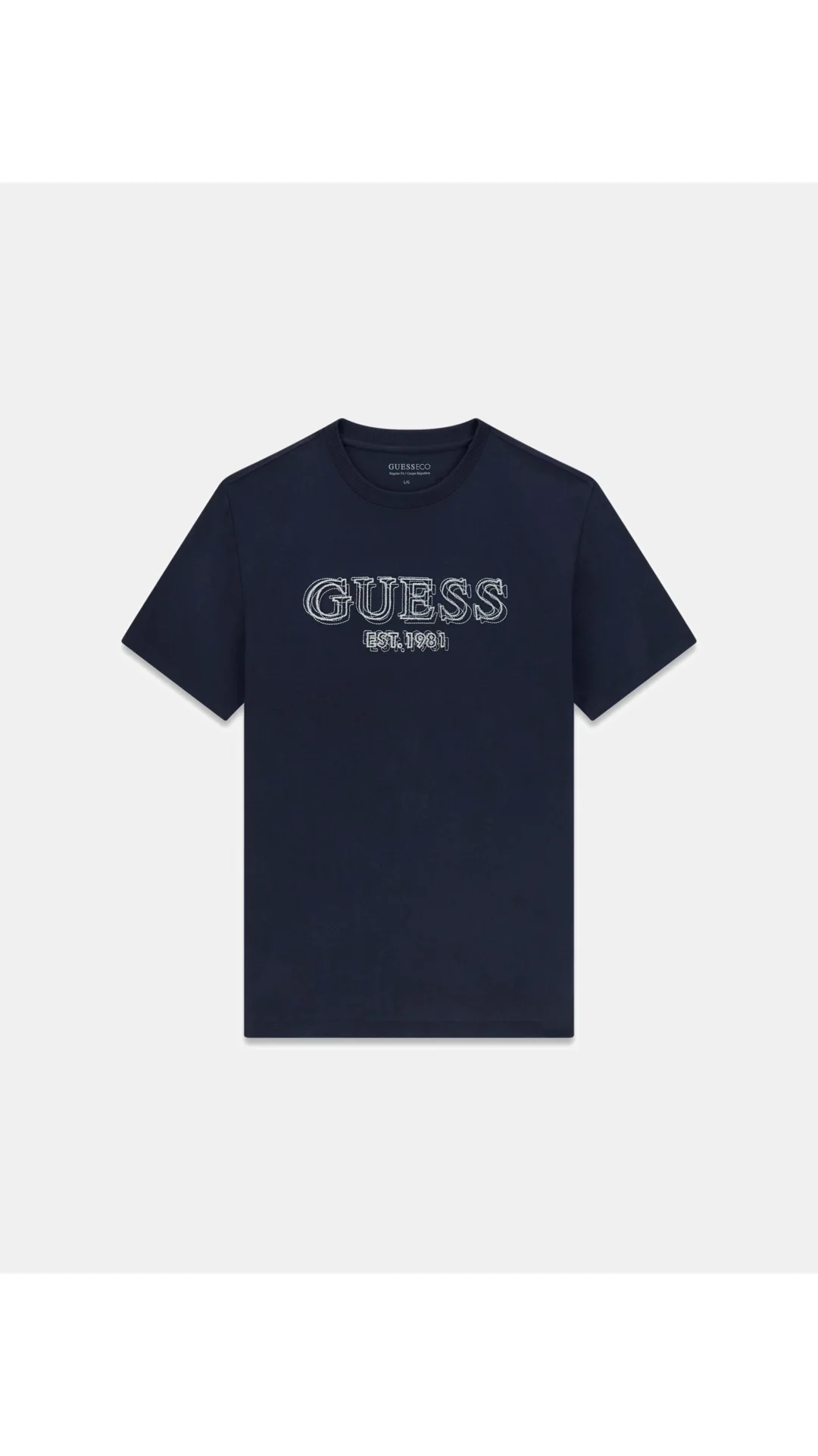 Guess Kısa Kollu Bisiklet Yaka Nakış Logolu Erkek Lacivert T-shirt M6RI22K8FQ4-G7V2