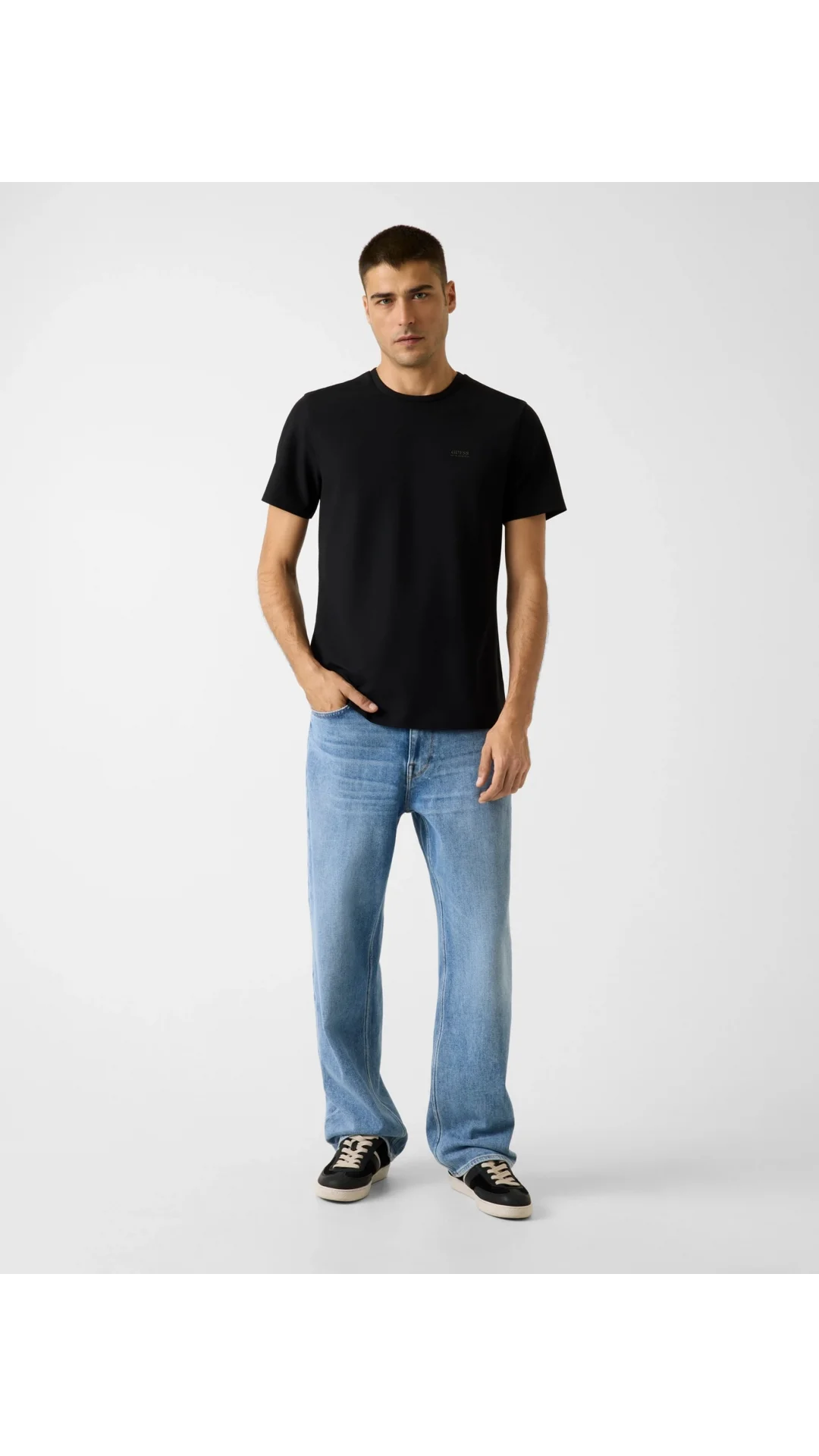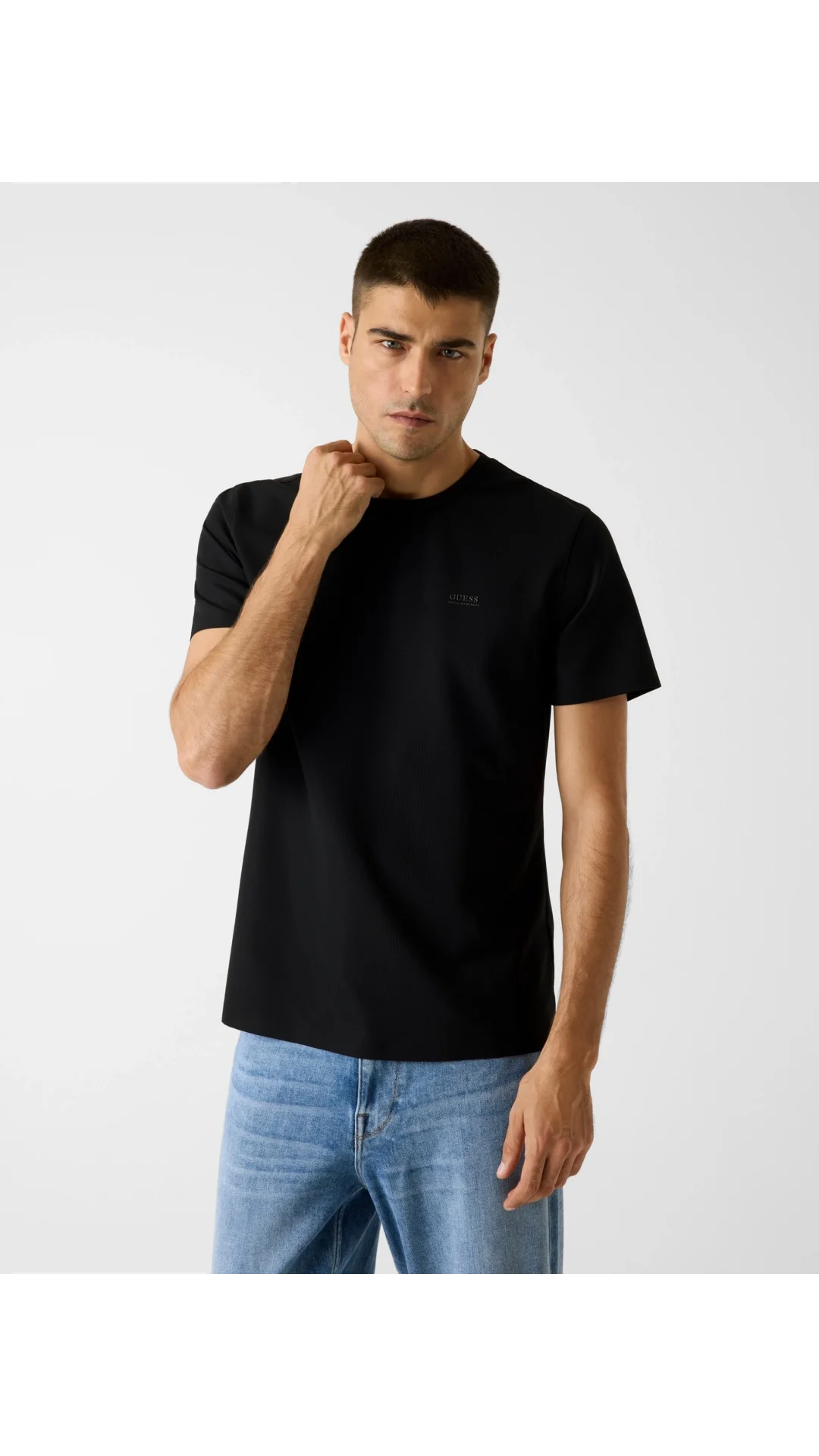 Guess Kısa Kollu Bisiklet Yaka Yeni Teknik Esnek Erkek Siyah T-shirt M6RI19KD202-JBLK