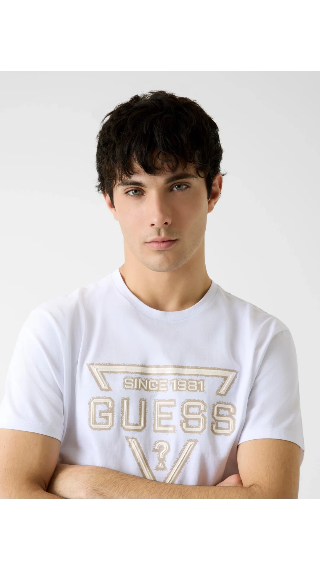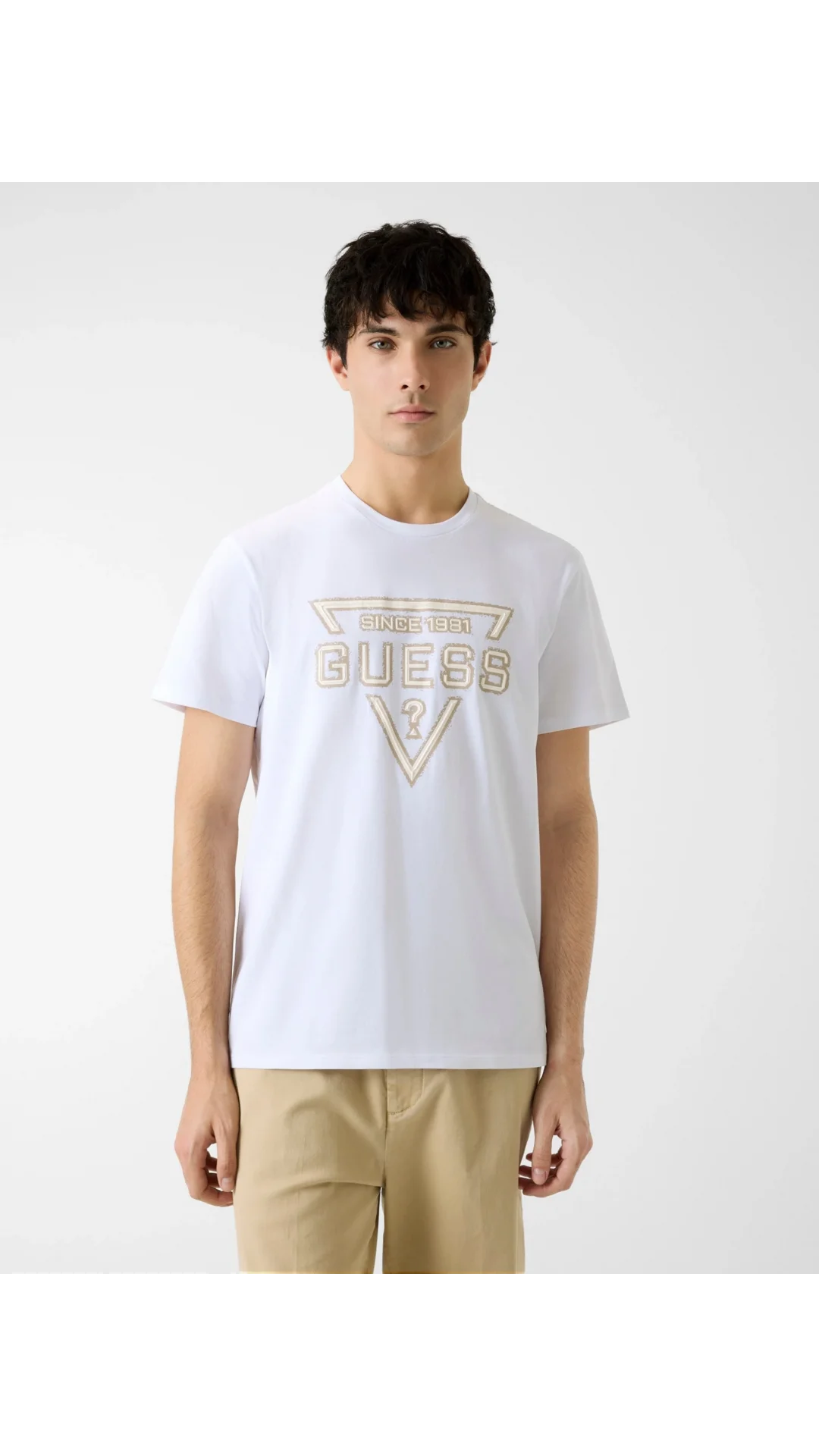 Guess Kısa Kollu Temel Boyalı Üçgen Logolu Erkek Beyaz T-shirt M6RI09I3Z14-G011