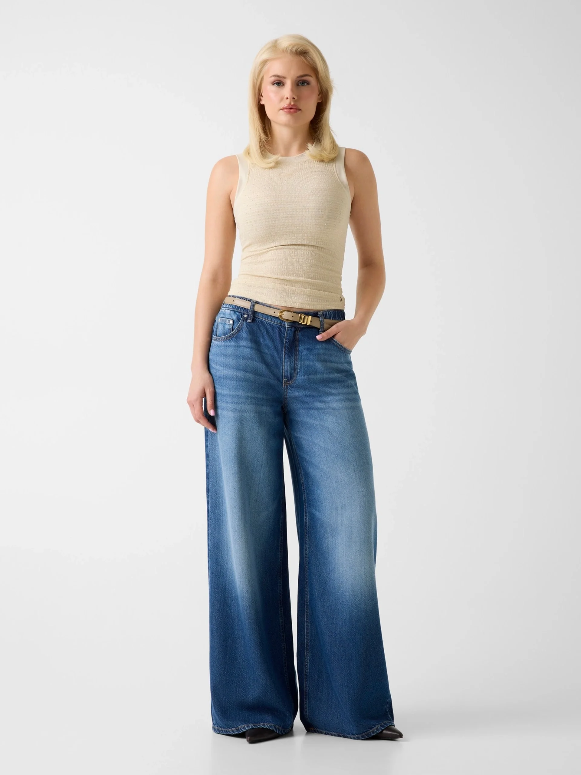 Guess Kolsuz Francine Büzgülü Taş İşlemeli Kadın Beyaz Top W6GP14K2940-F1CY