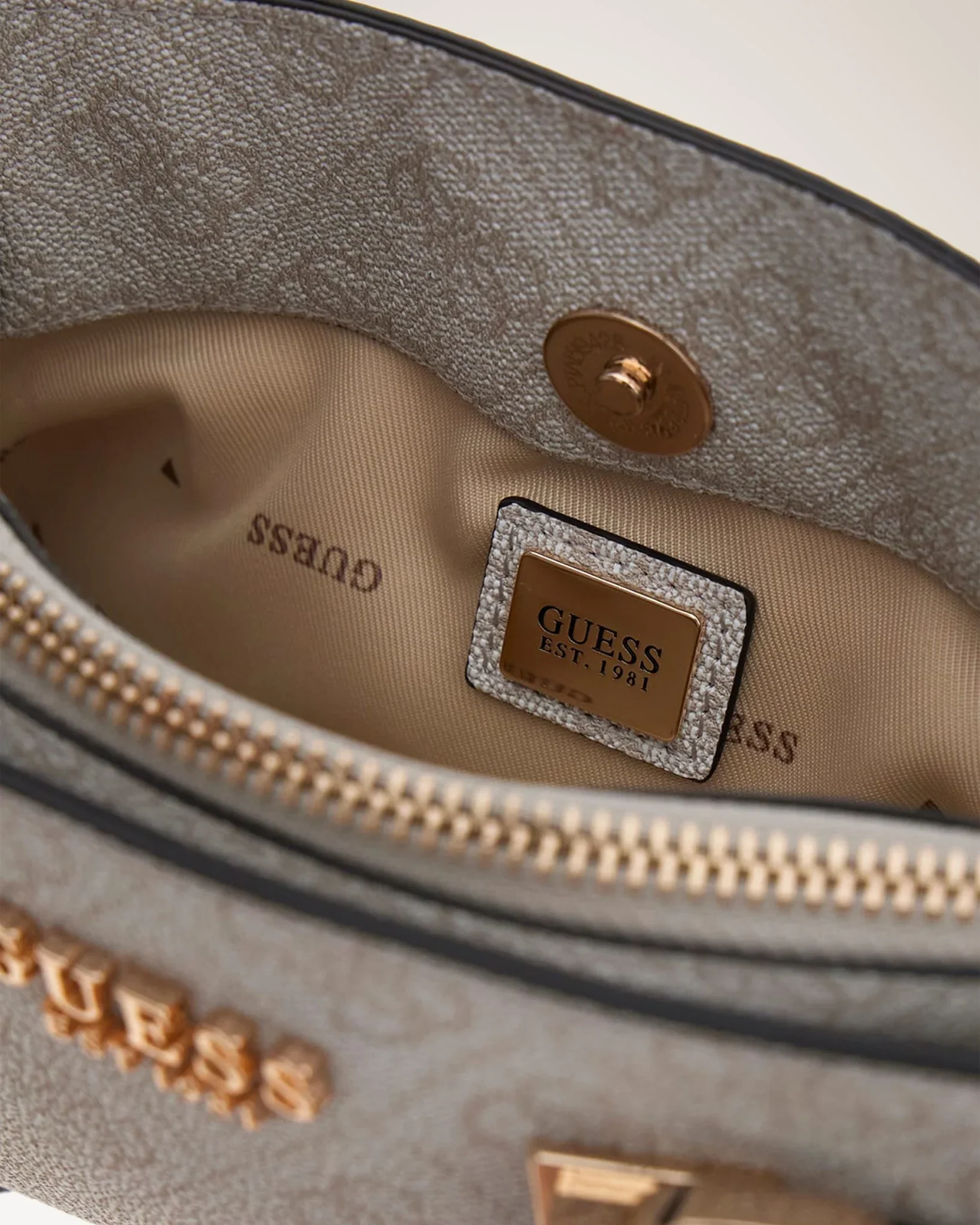 Guess Leona Logolu Girlfriend Çapraz Askılı Kadın Mavi Çapraz Çanta (HWSG9917120‑BNN), monogram desenli dış yüzeyi ve kabartmalı Guess logosuyla modern ve şık bir tasarıma sahip. Kompakt boyutuyla günlük kullanım için ideal olan bu çanta, ayarlanabilir omuz askısı ve altın renkli metal aksesuarlarıyla dikkat çeker.