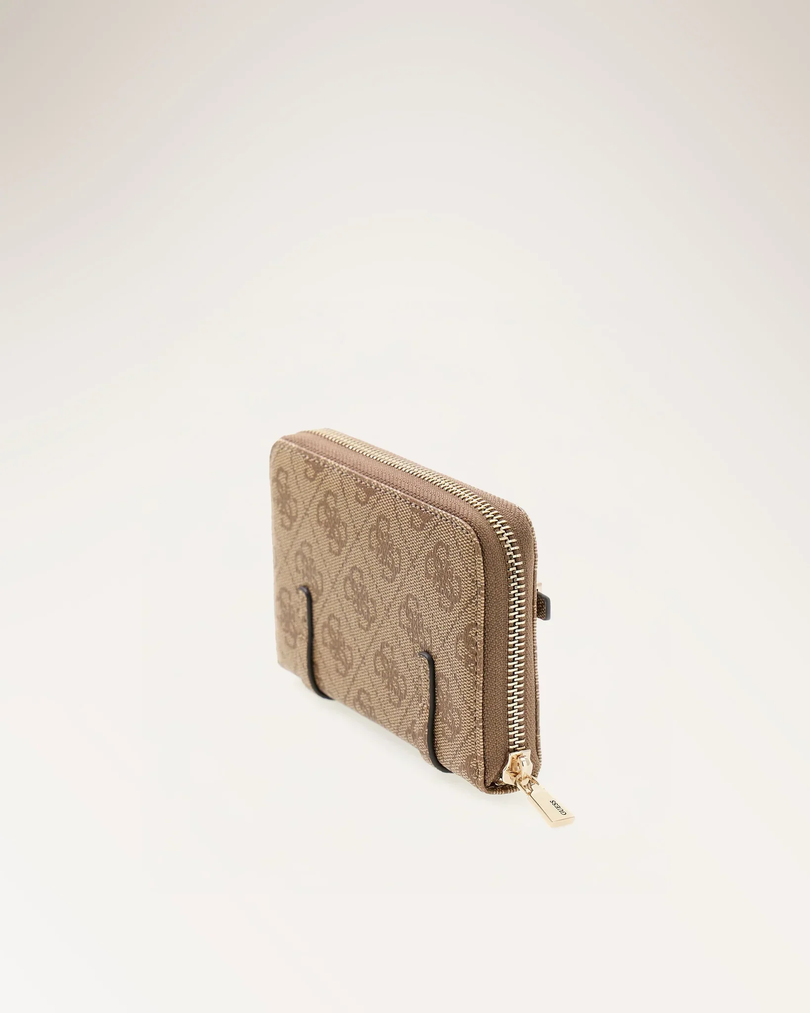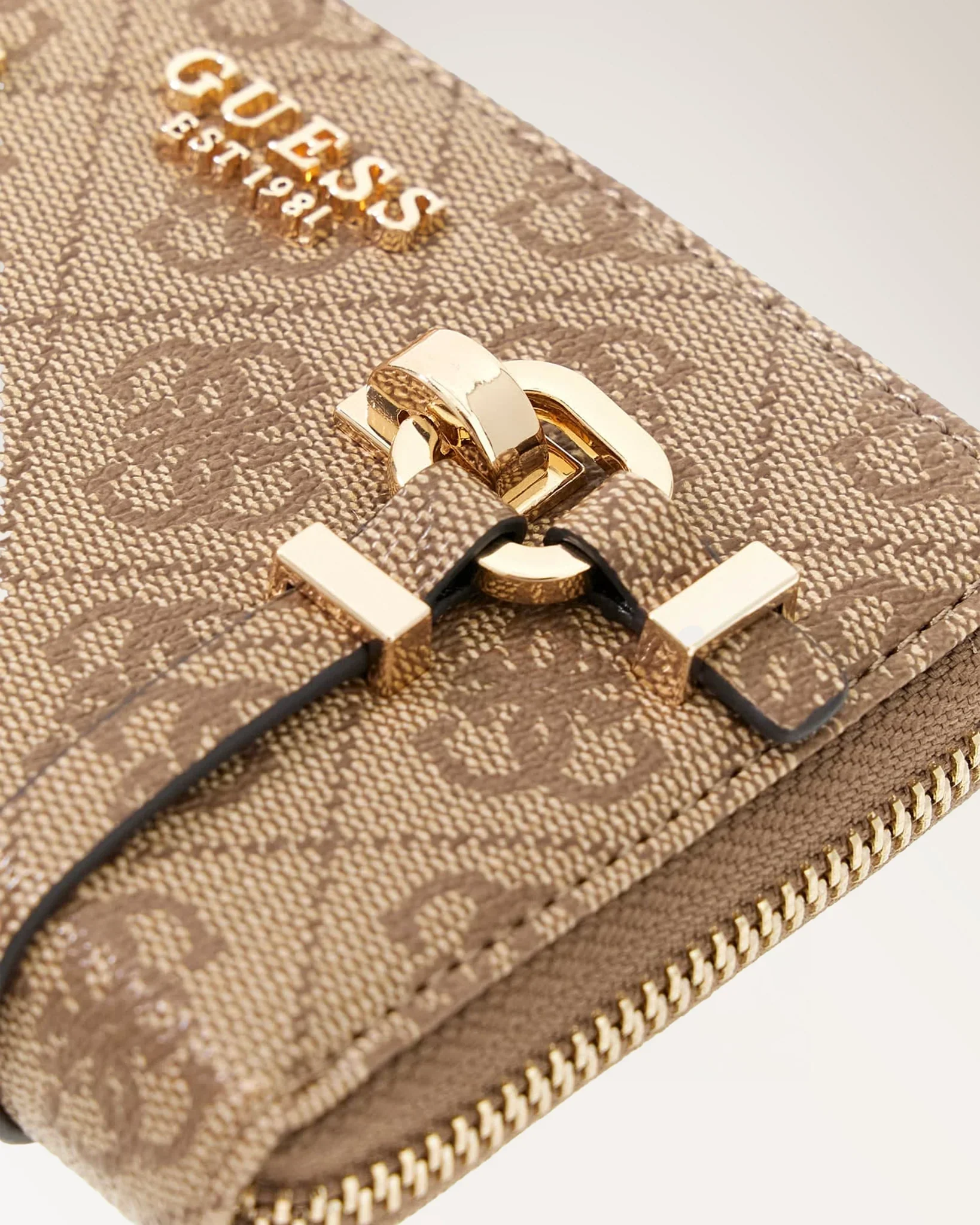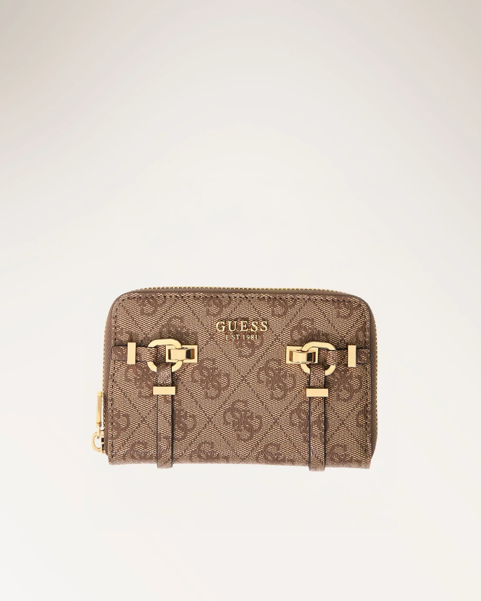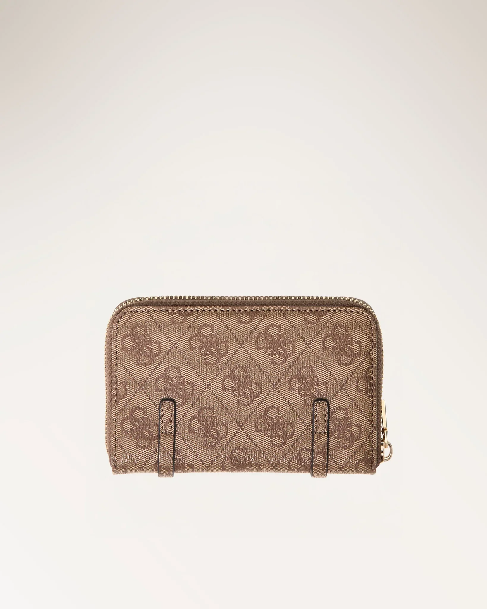 Guess Leona Logolu Orta Boy Fermuarlı Kadın Kahverengi Cüzdan (SWSG9917140‑LTL), altın renkli metal aksesuarlar ve ön kayışlarla süslenmiş, monogram desenli kompakt bir fermuarlı cüzdan. Guess’in zarif ve şık tasarım anlayışını yansıtan bu cüzdan, günlük kullanımda işlevselliği ve şıklığı bir arada sunar.