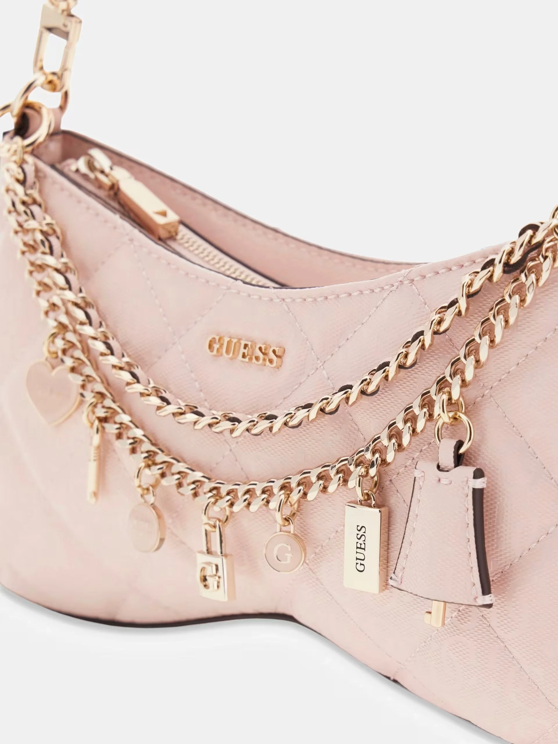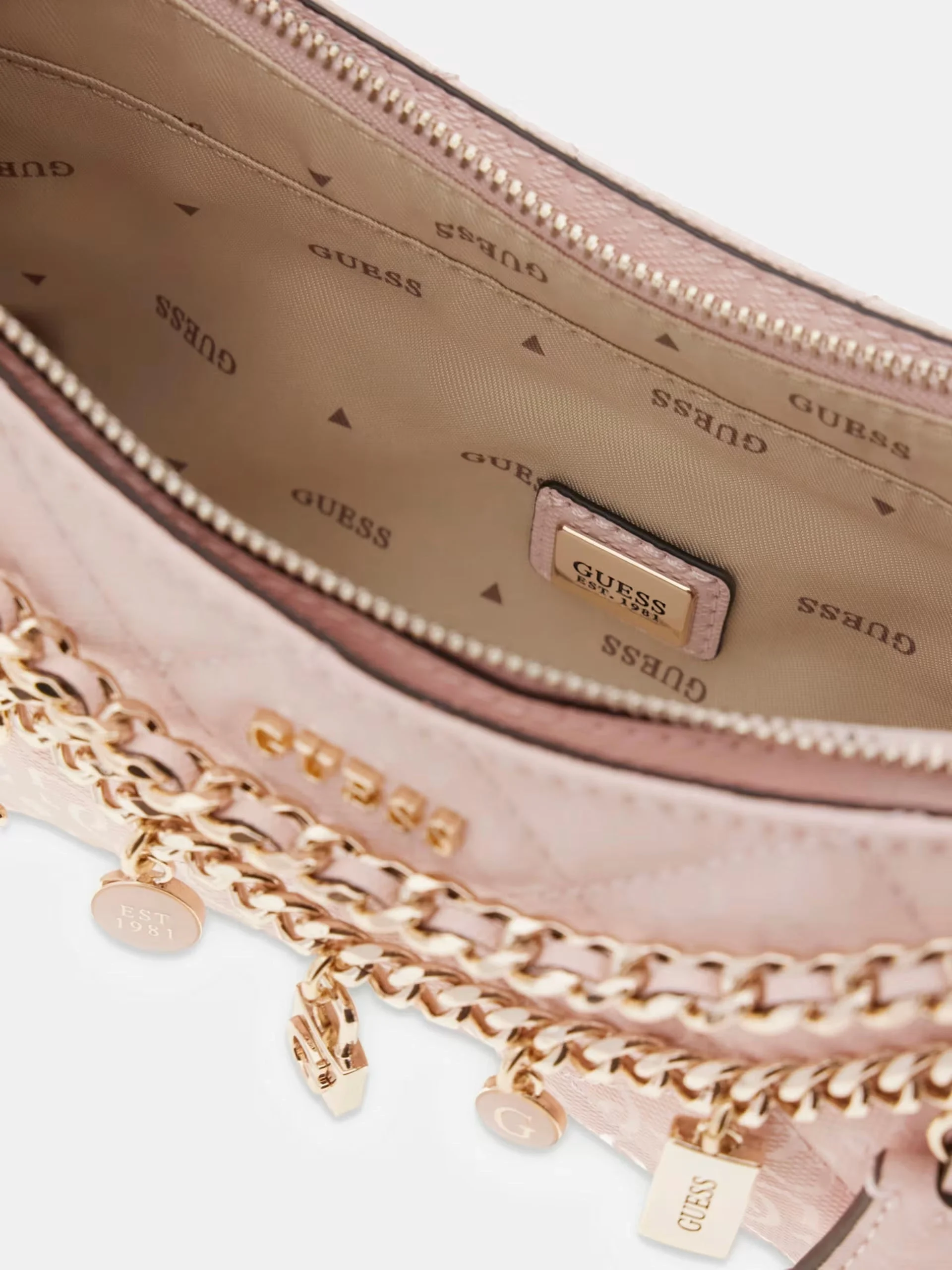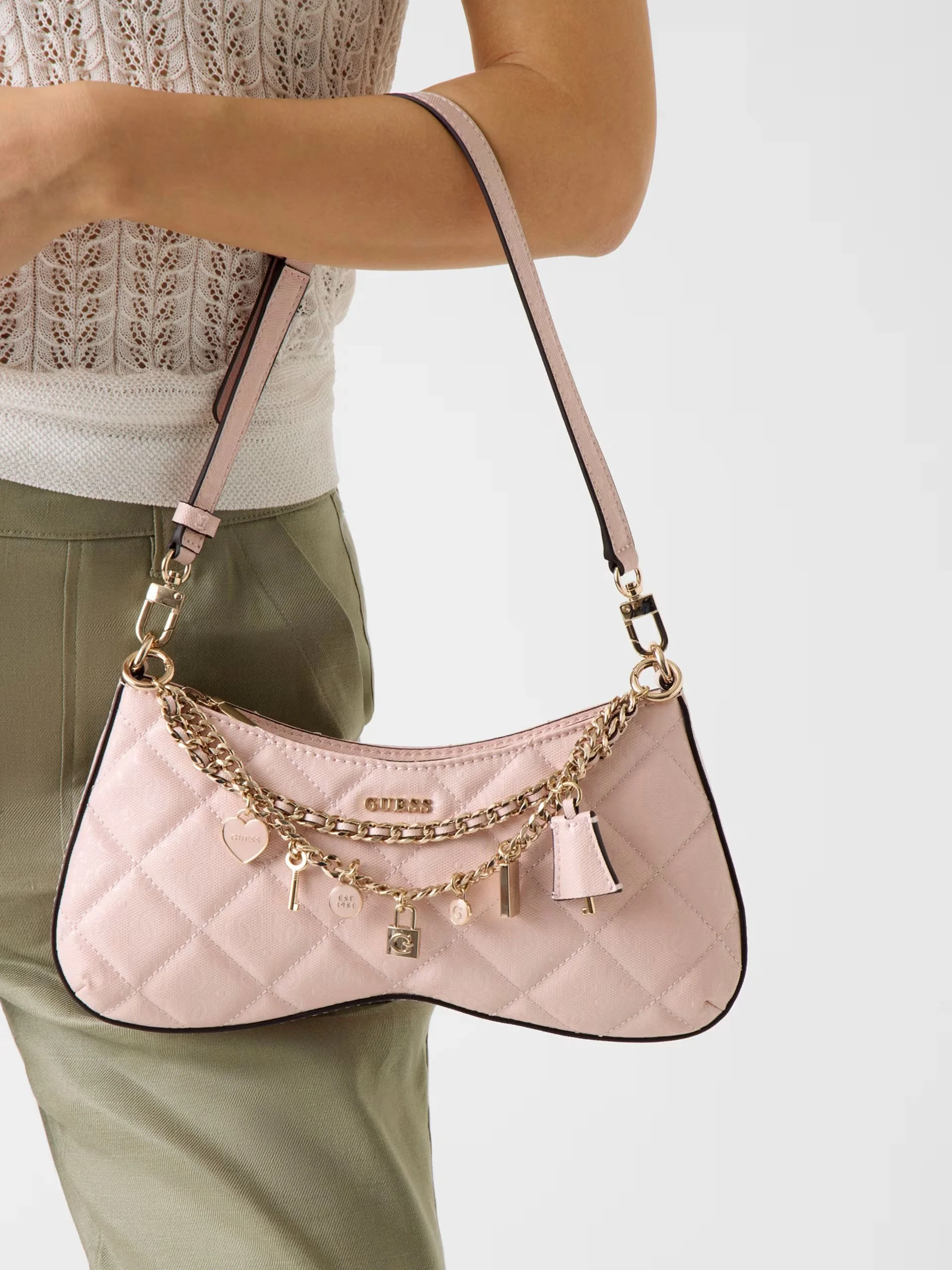 Guess Libby Omuz Kadın Pembe Omuz Çantası (HWGG9912180‑LTR), deri görünümlü dış yüzeyi ve altın rengi metal aksesuar detaylarıyla şıklığı ve işlevselliği bir arada sunan kadın omuz çantasıdır. Fermuar kapaması sayesinde eşyalarınızı güvenle taşımanıza olanak sağlar ve günlük stilinize zarif bir dokunuş katar.