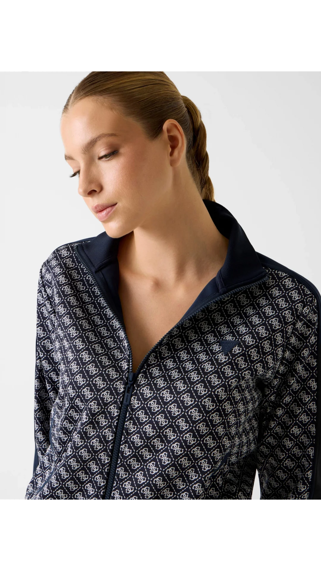 Guess Maya 4G Tam Fermuarlı Kadın Lacivert Sweatshirt V6RQ08K2042-FJBB