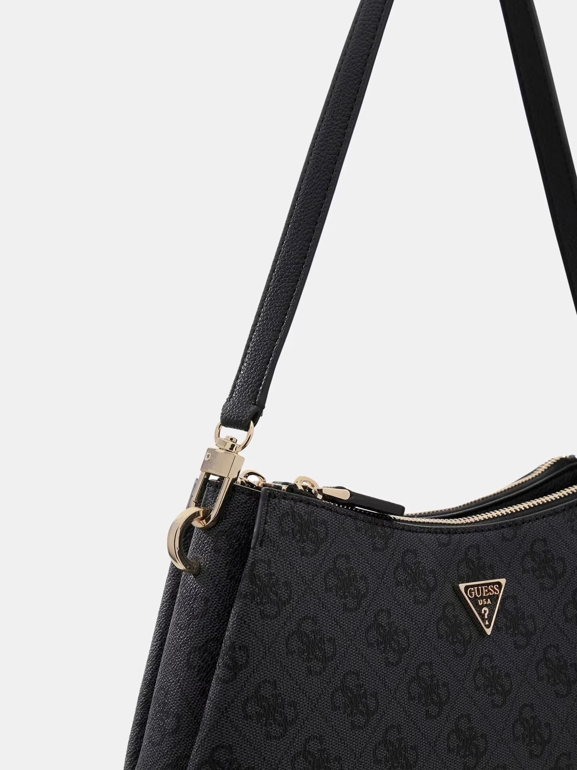 Guess Noelle II 3 Bölmeli Omuz ve Çapraz Askılı Kadın Antrasit Çapraz Çanta (HWBG9672730‑CLO), suni deri dış yüzey ve altın renkli donanım detaylarıyla dikkat çeken fonksiyonel bir çantadır. Çift fermuarlı bölme yapısı ile eşyalarınızı düzenli tutmanızı kolaylaştırırken, her yerindeki 4G logolarıyla Guess’in ikonik stilini yansıtır. Omuz veya çapraz askı ile farklı kullanım seçenekleri sunar.
