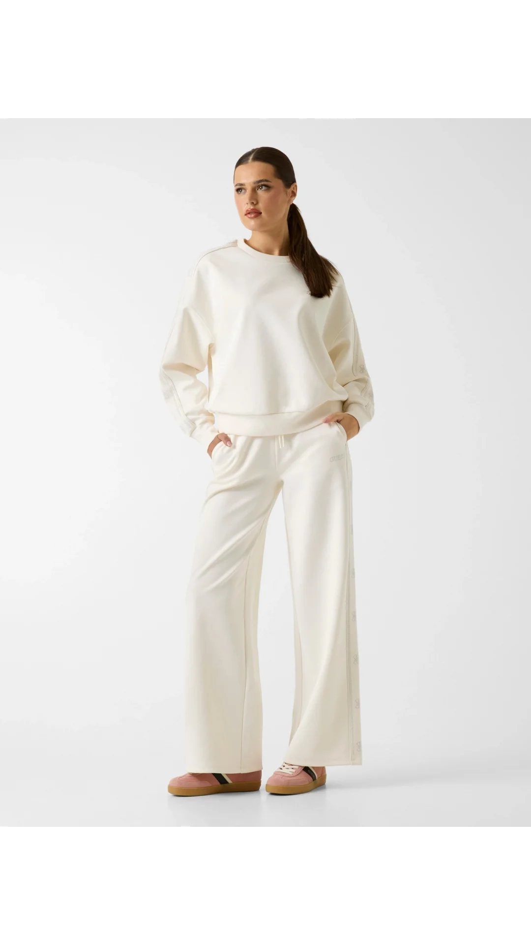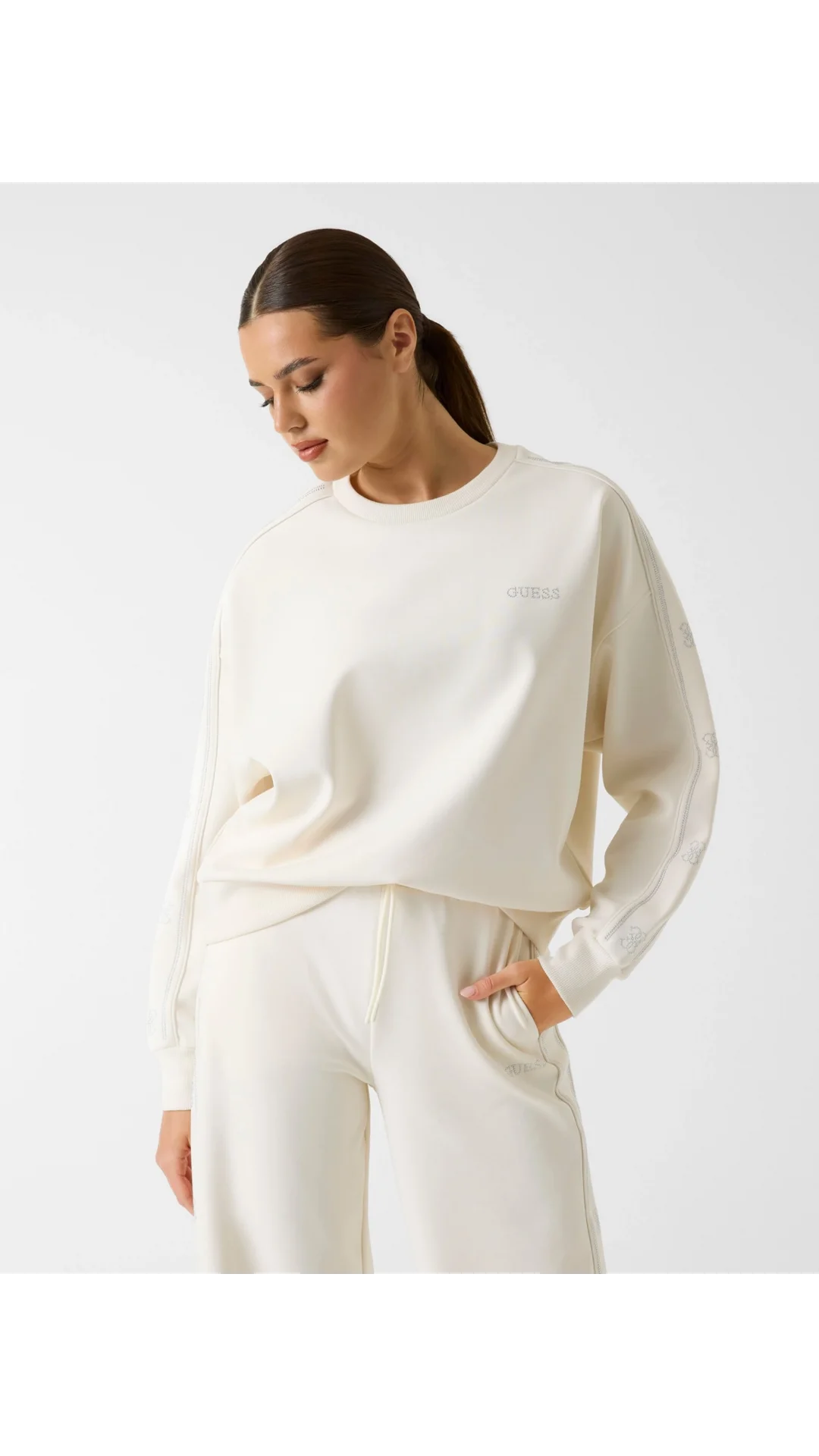 Guess Octavia Bisiklet Yaka Kadın Beyaz Sweatshirt V6RQ96KCX22-G027
