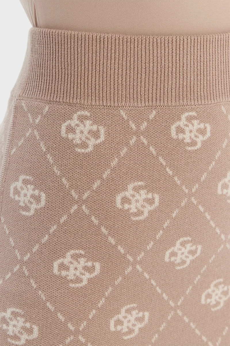 • Bütünsel 4G Monogram Deseni: Eteğin tüm dokusunda yer alan ikonik Guess 4G logoları, örgü tekniğiyle kumaşa işlenmiştir. Bu jakar doku, ürüne hem derinlik katar hem de markanın lüks kimliğini vurgular.